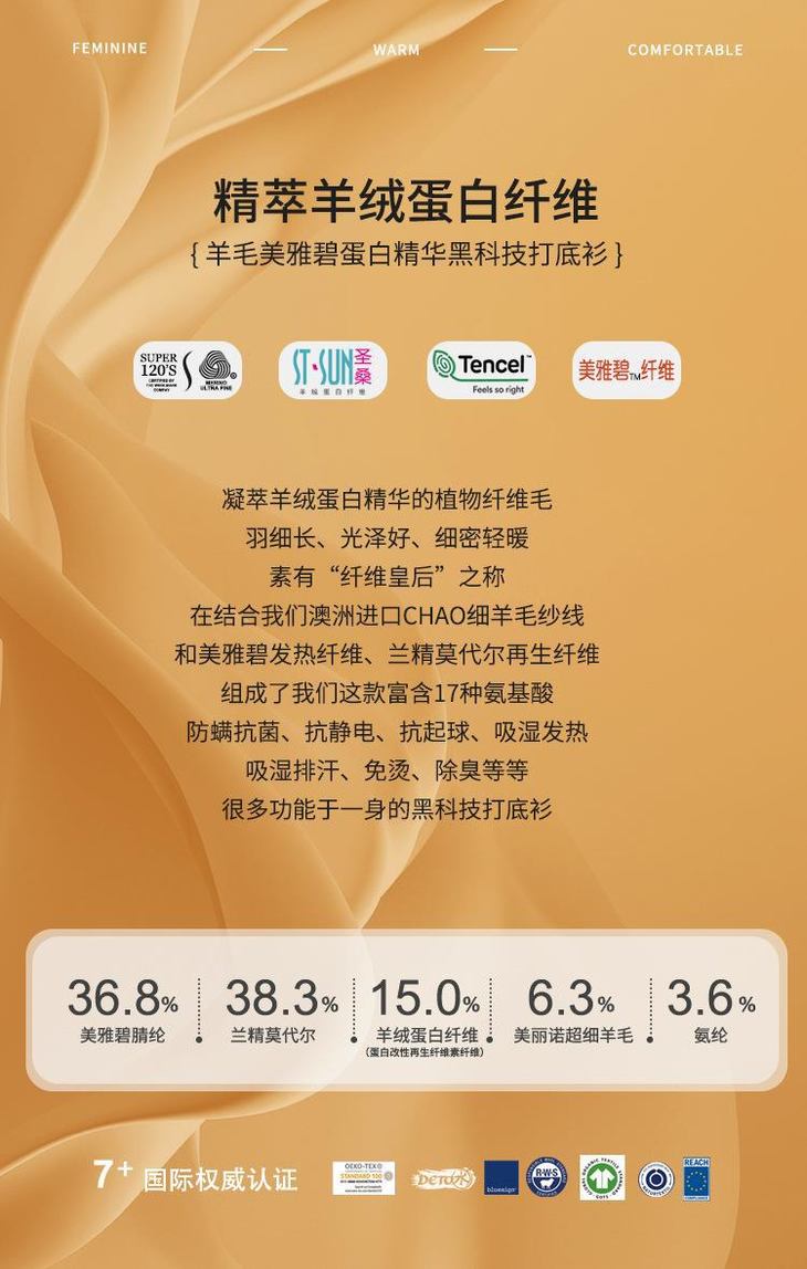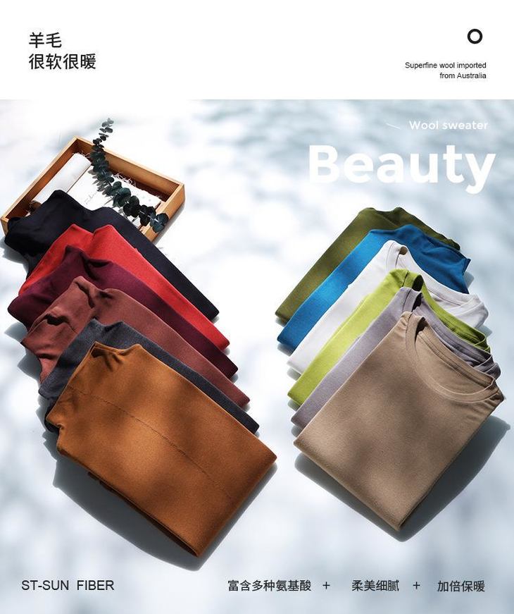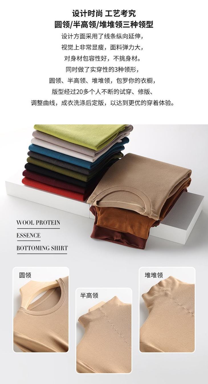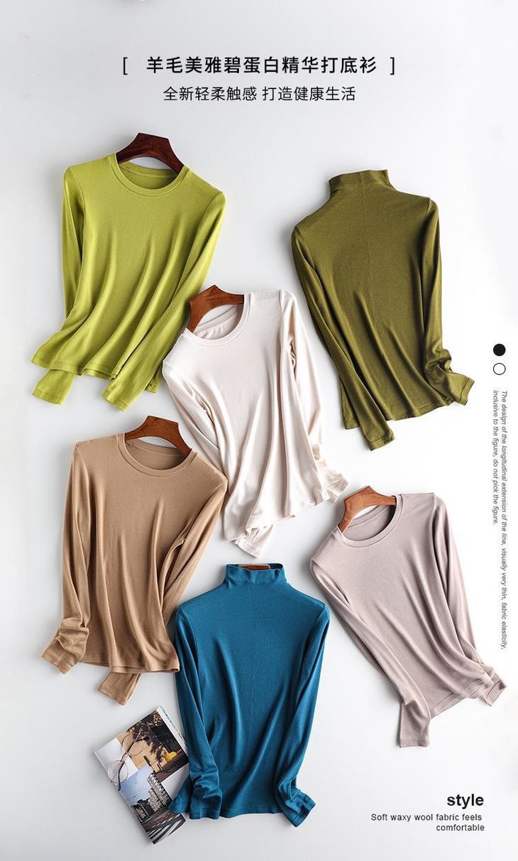 【拍两件自动减 59.9元】马卡龙色系 羊绒蛋白精华羊毛 美雅碧发热免烫显瘦 长袖女款打底衫 选2件加入购物车自动减