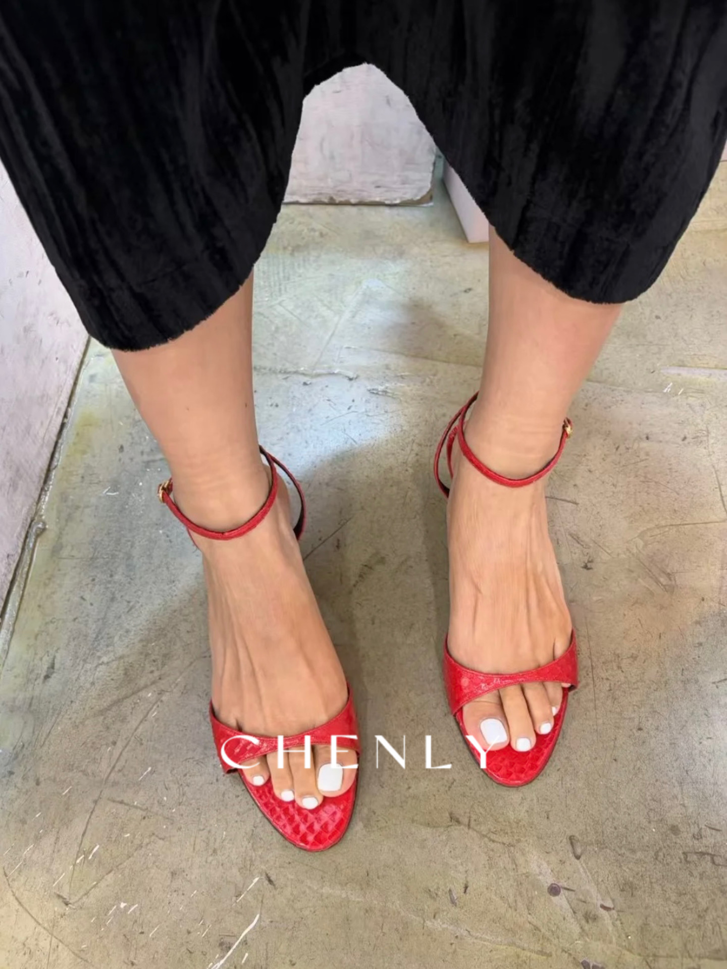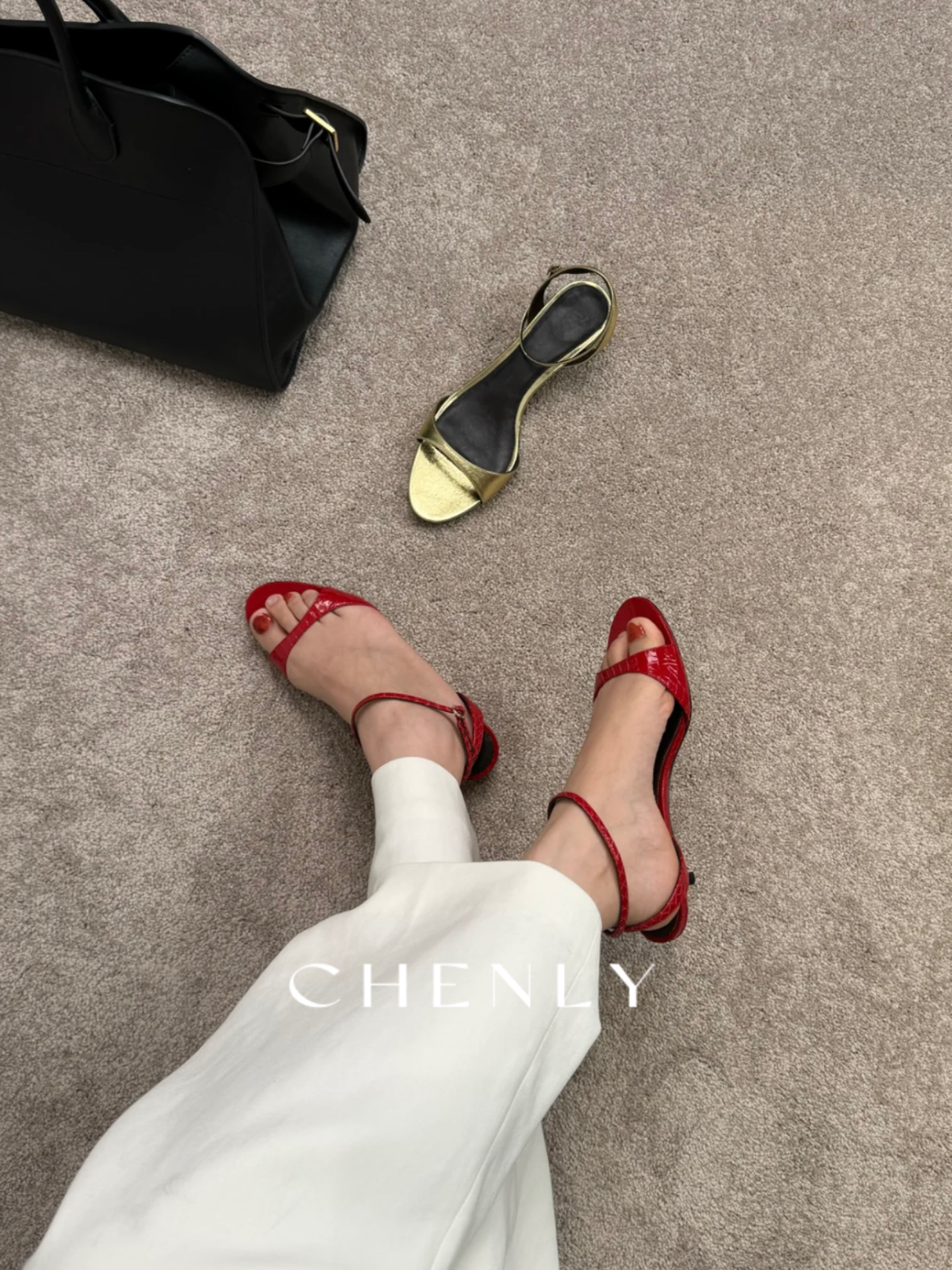不退不换!尘衣|ROW风一字带小猫跟凉鞋