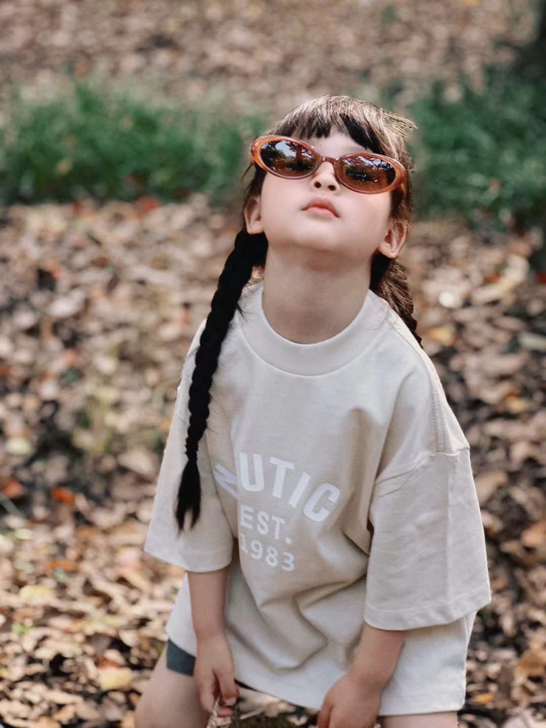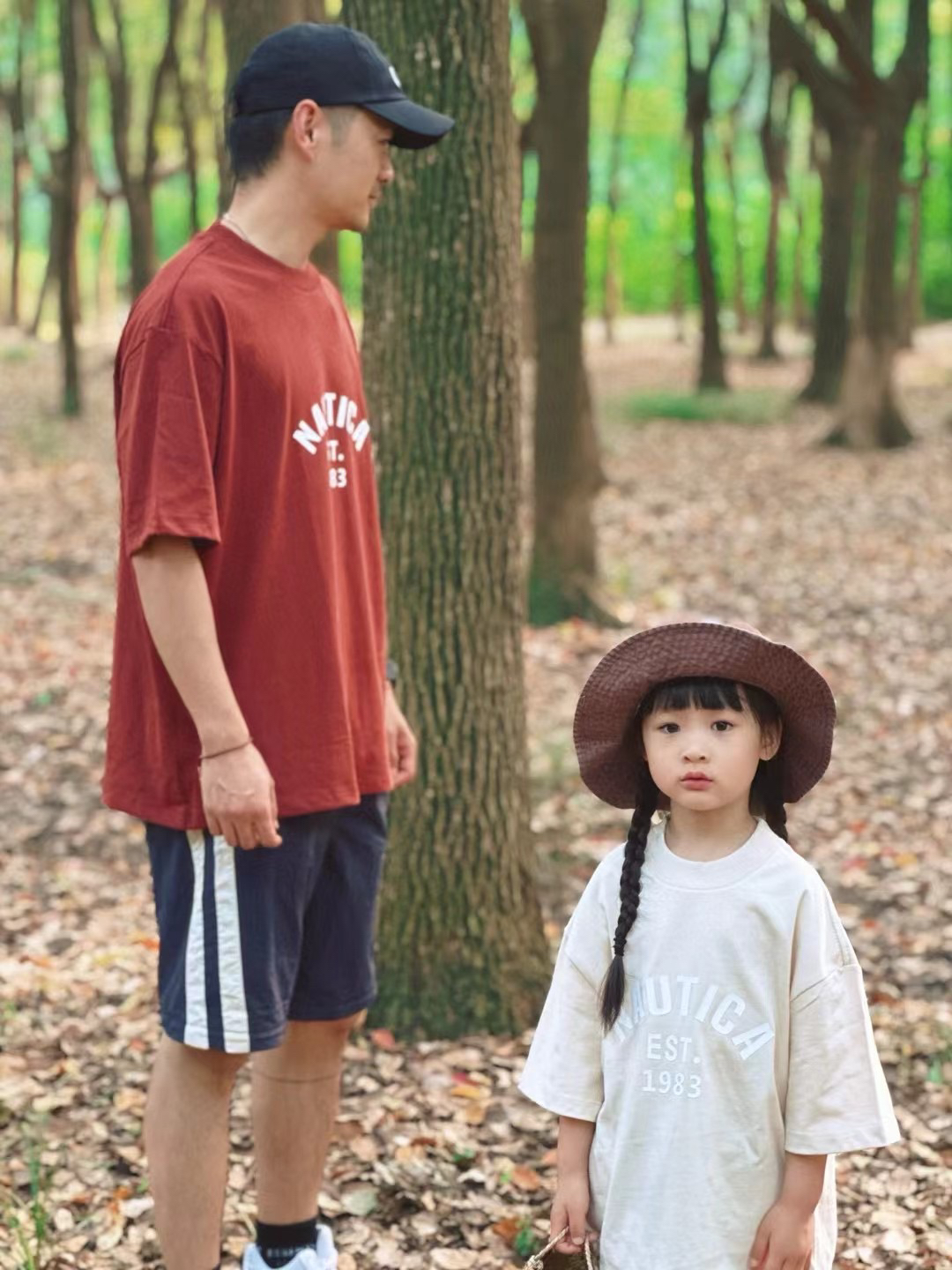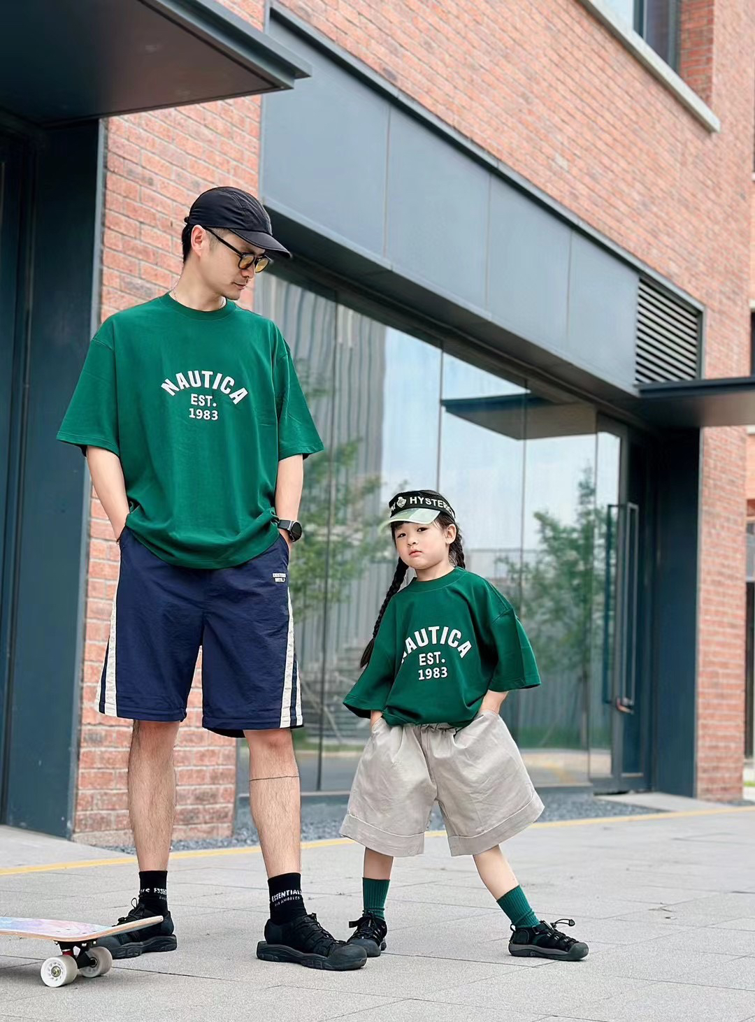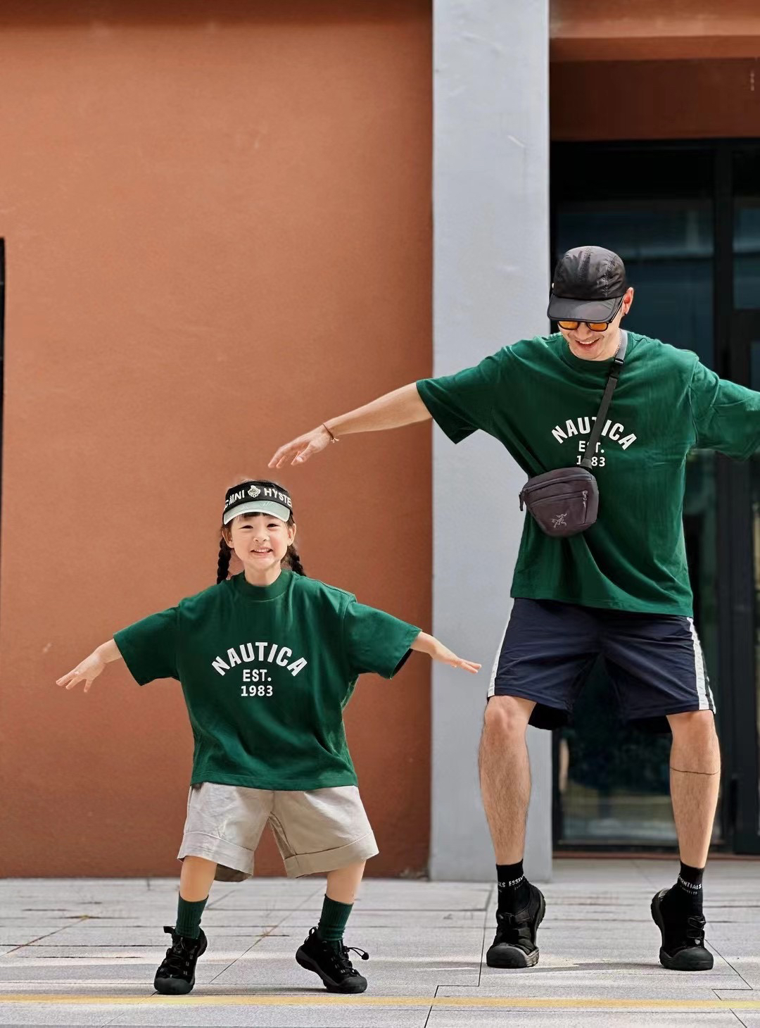 【双纱棉 可亲子】 2024夏季儿童全家亲子中性复古色圆领宽松立体硅胶字母短袖T