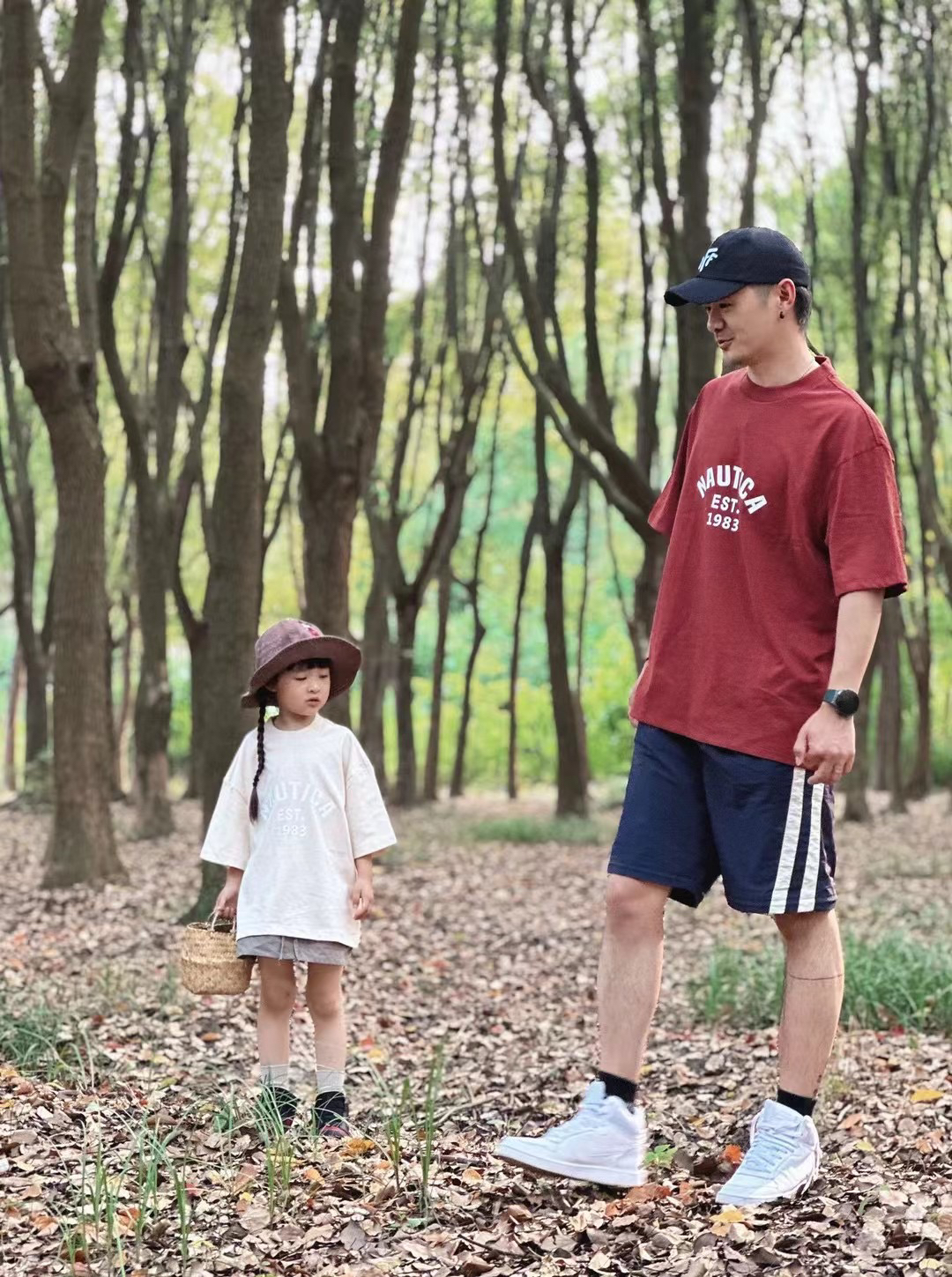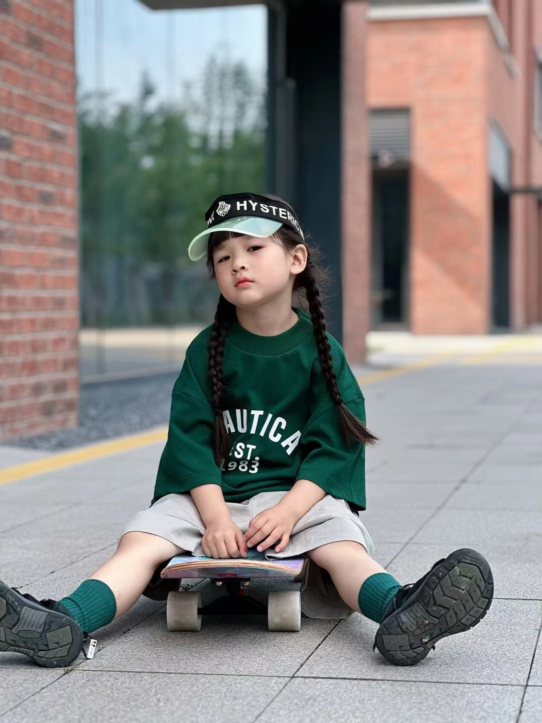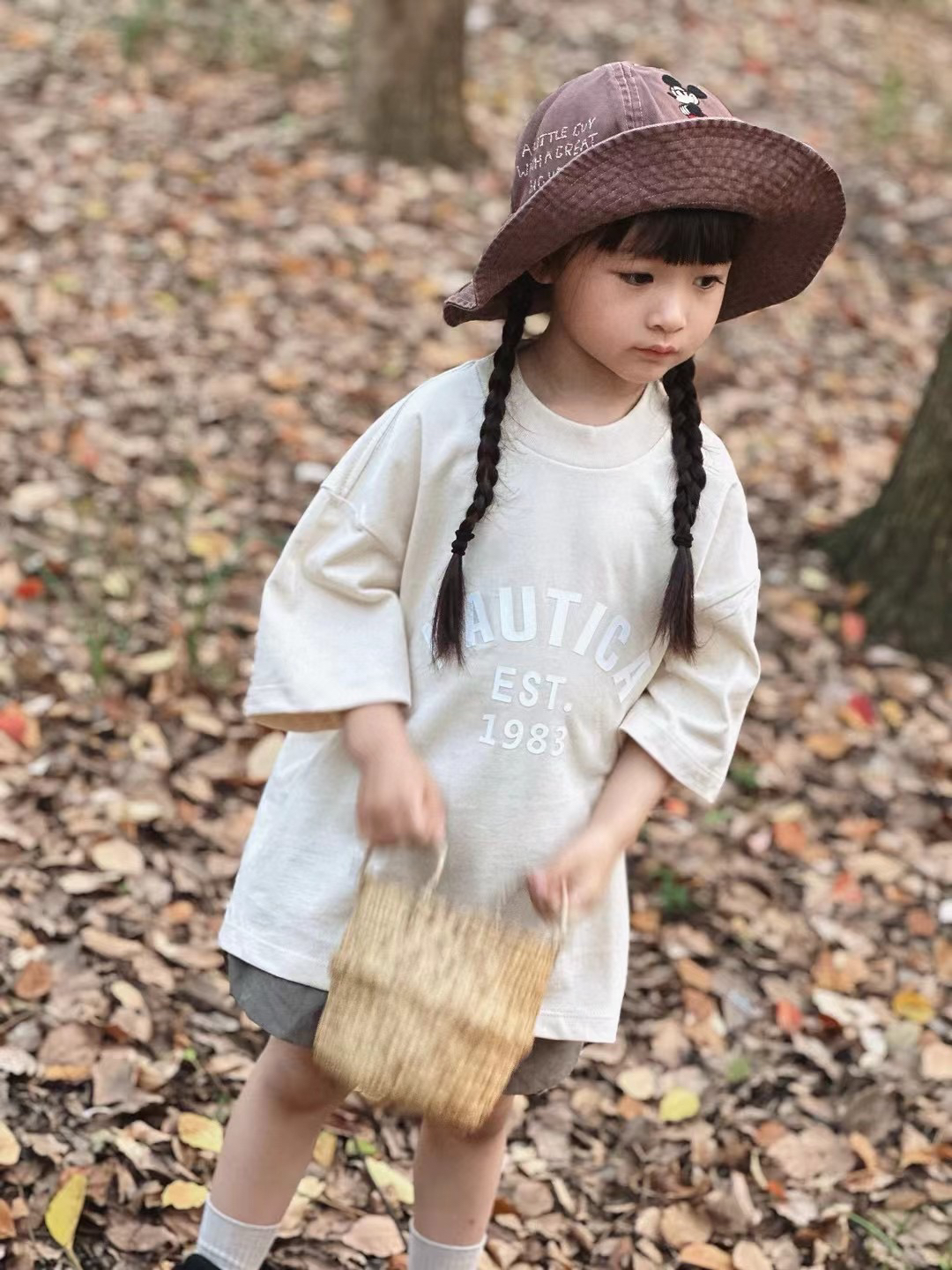 【双纱棉 可亲子】 2024夏季儿童全家亲子中性复古色圆领宽松立体硅胶字母短袖T