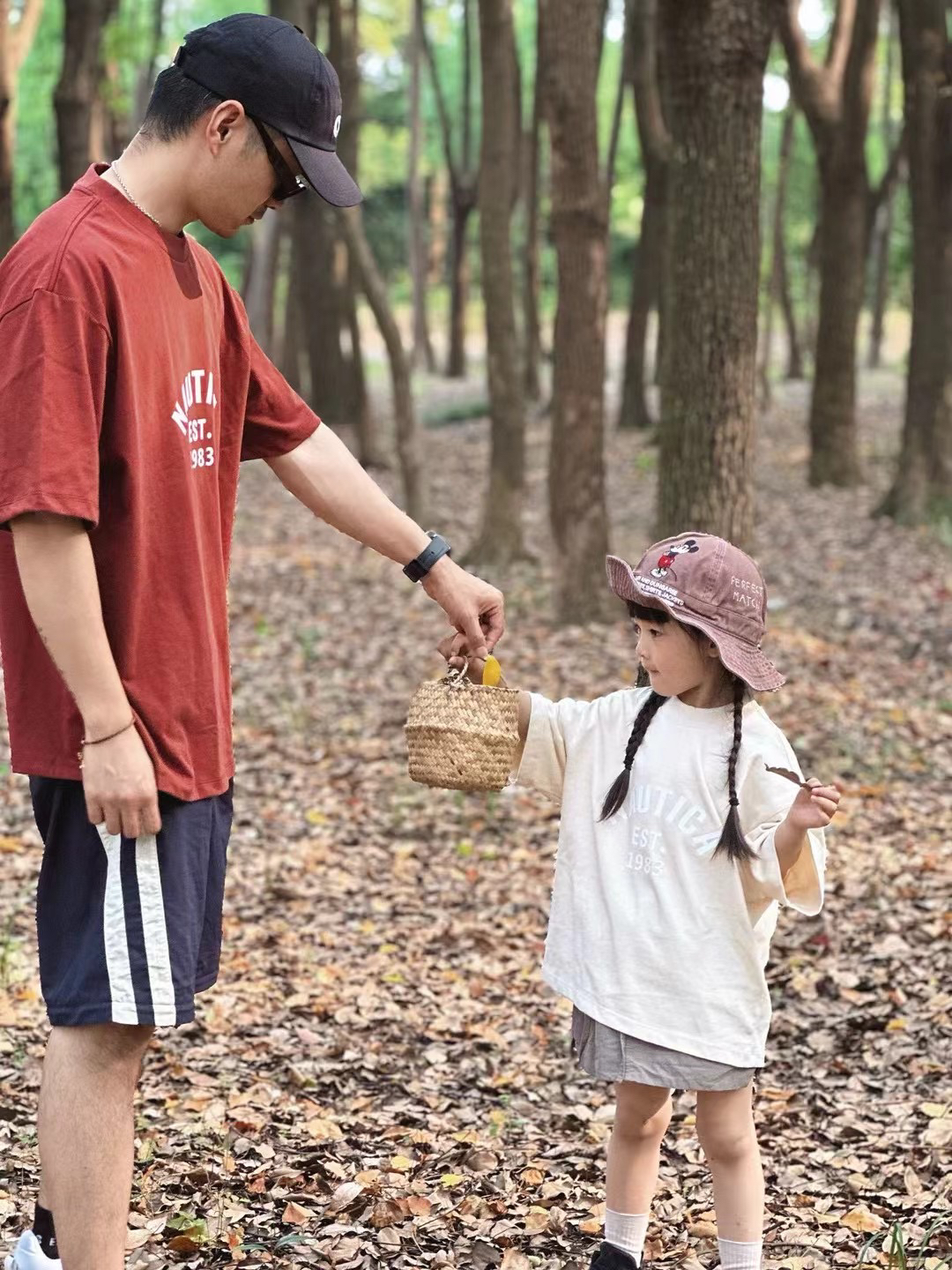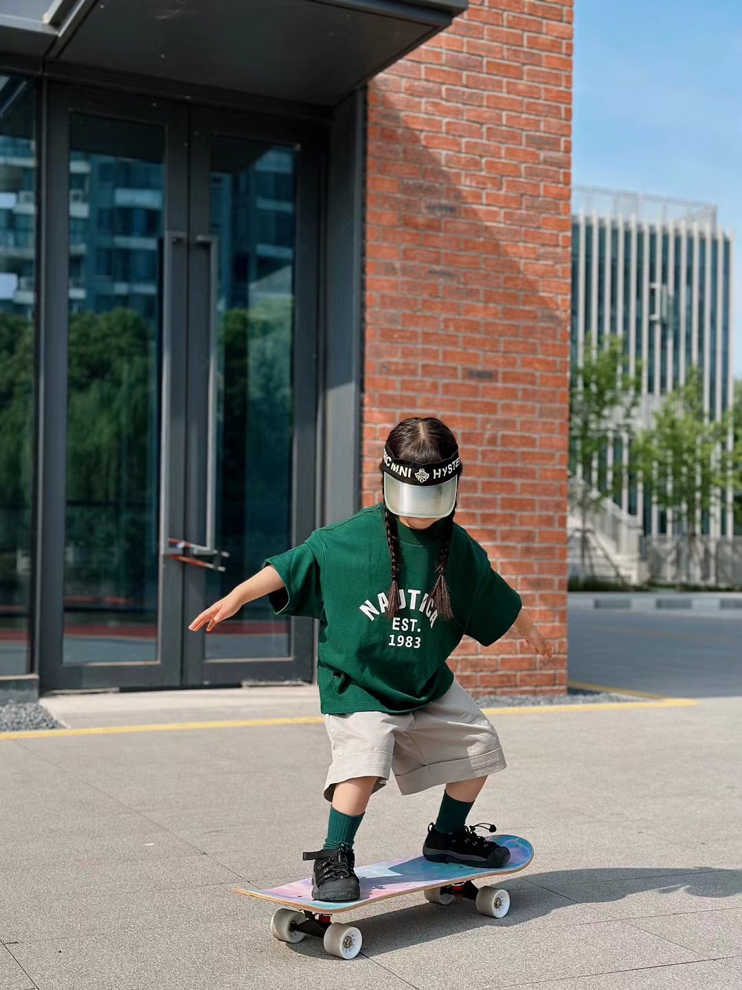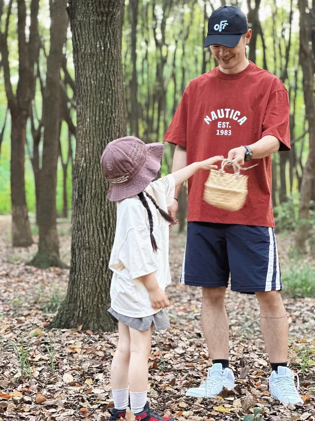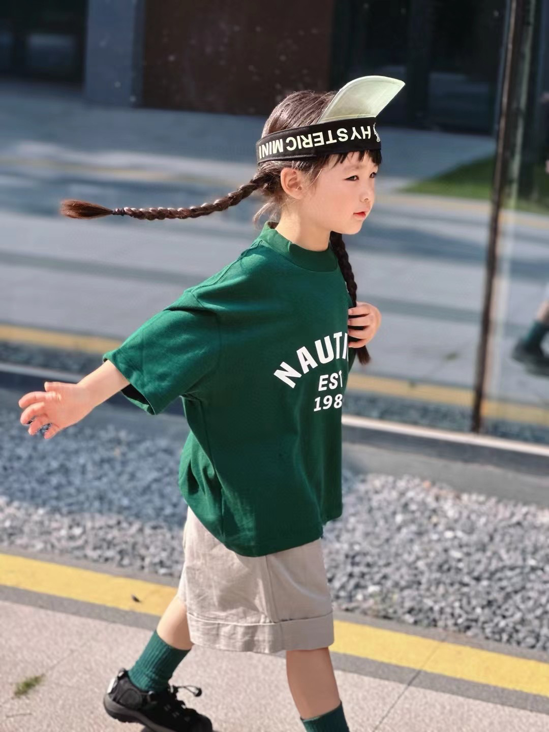 【双纱棉 可亲子】 2024夏季儿童全家亲子中性复古色圆领宽松立体硅胶字母短袖T