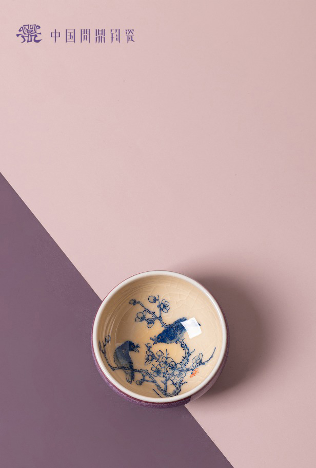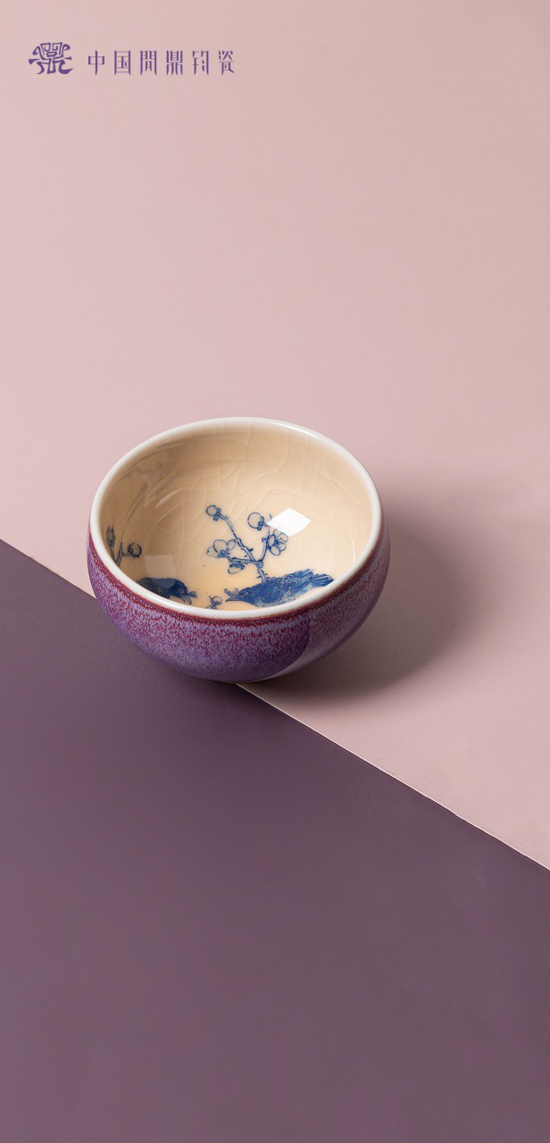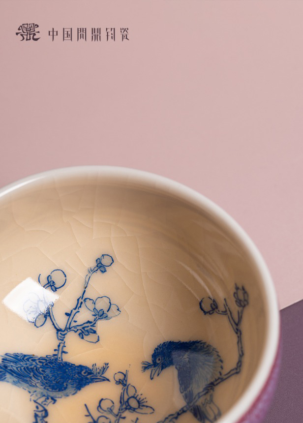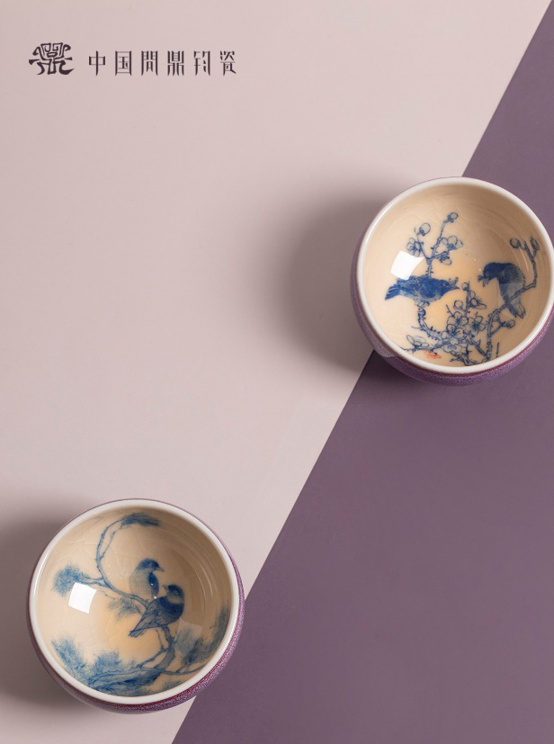 问鼎钧瓷鹅黄青花平口杯(莺声燕语)单杯(缺货)
