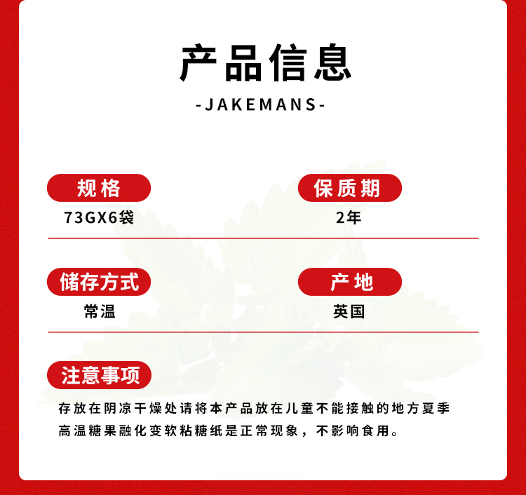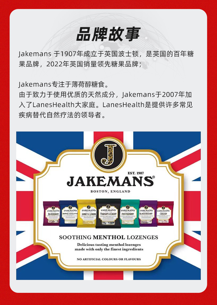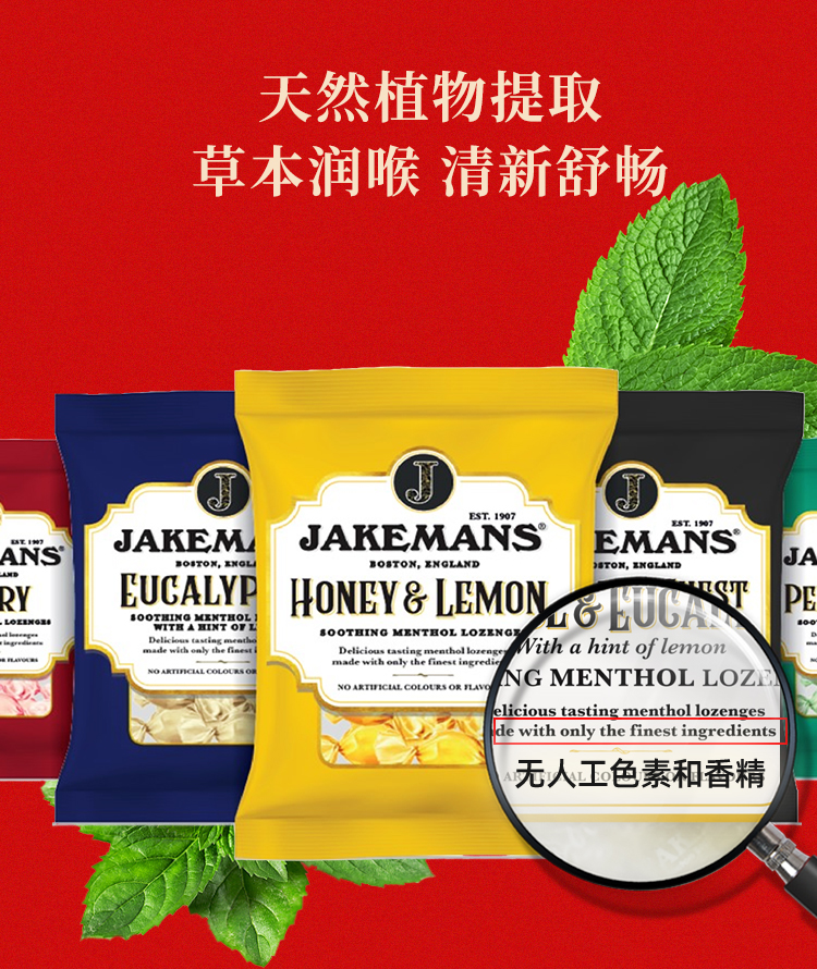 Jakemans/即口妙 润喉糖 英国百年品牌 咽炎人士救星 温和润喉糖 舒缓咽喉不适 73g/袋