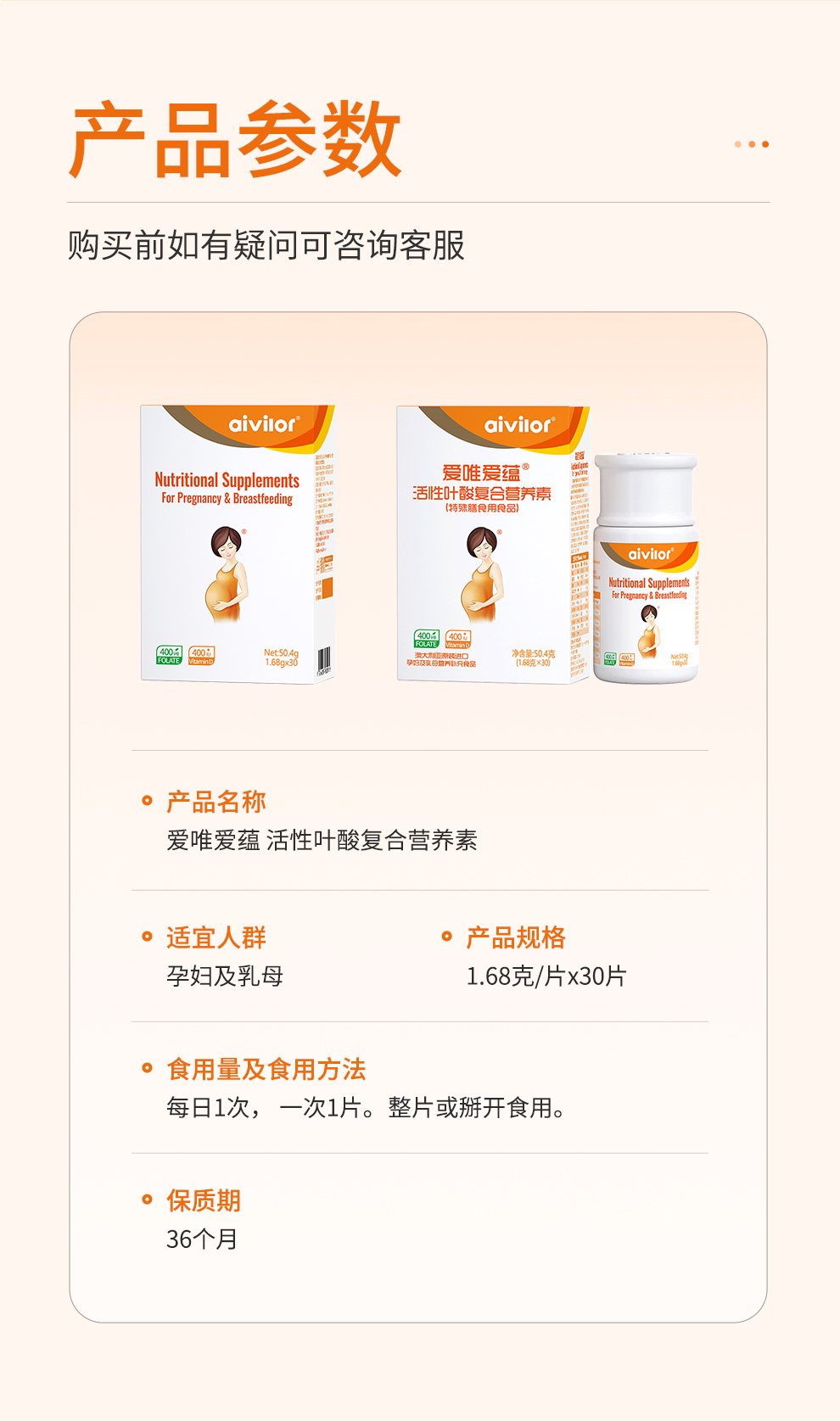 爱唯爱蕴活性叶酸复合营养素 30片 1天1片