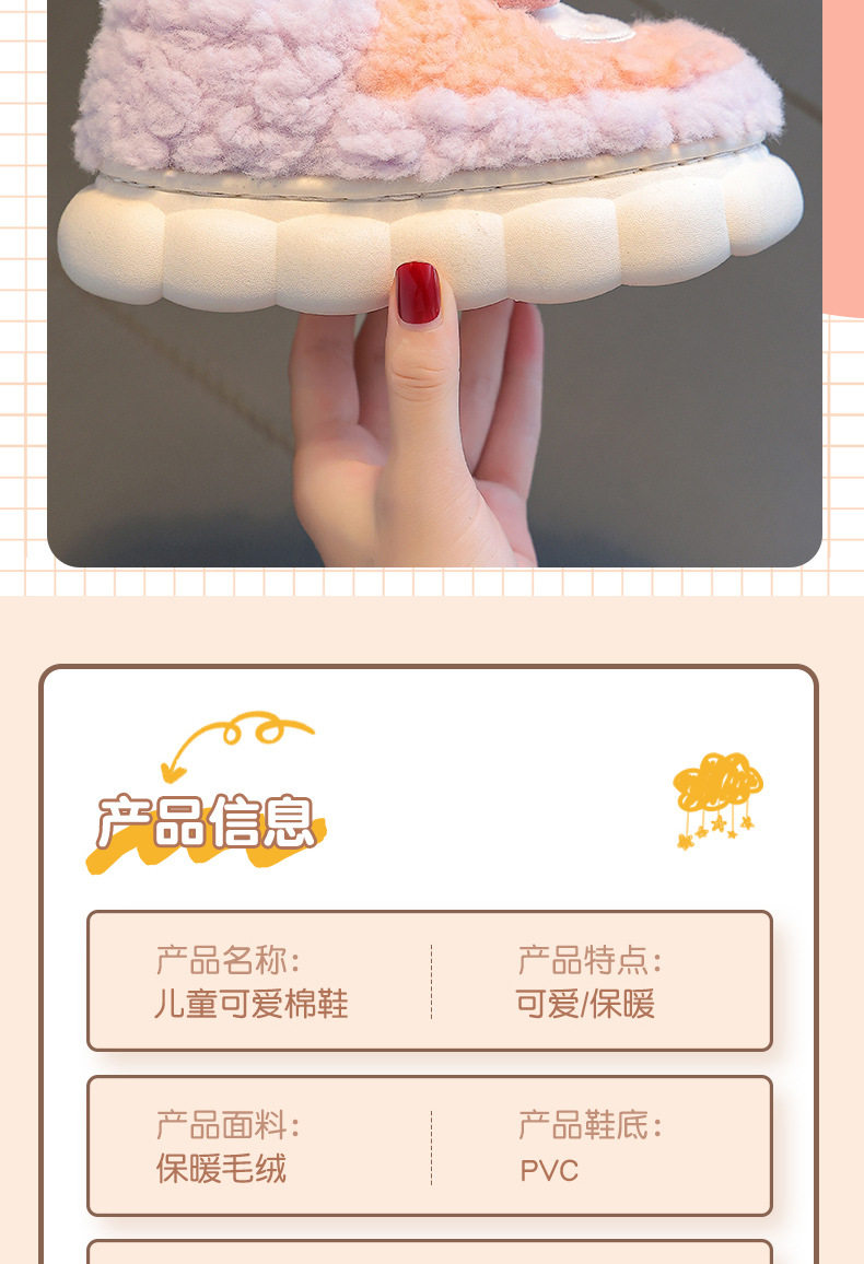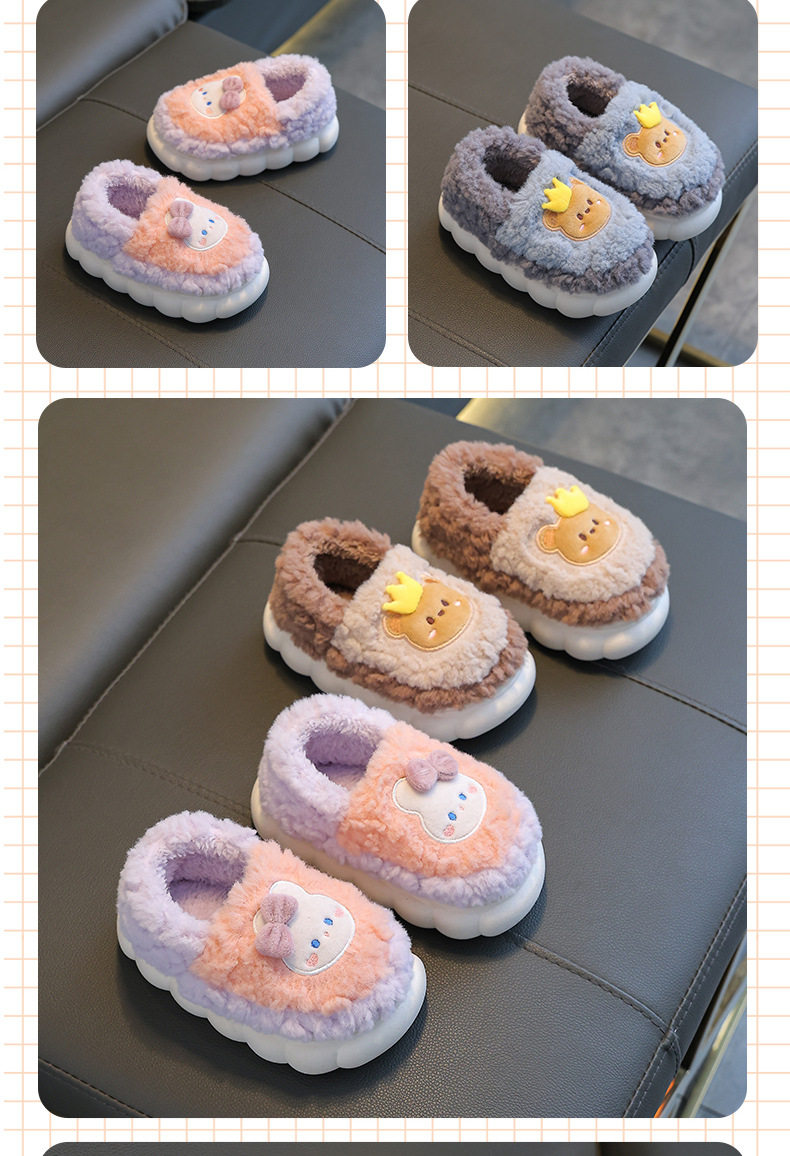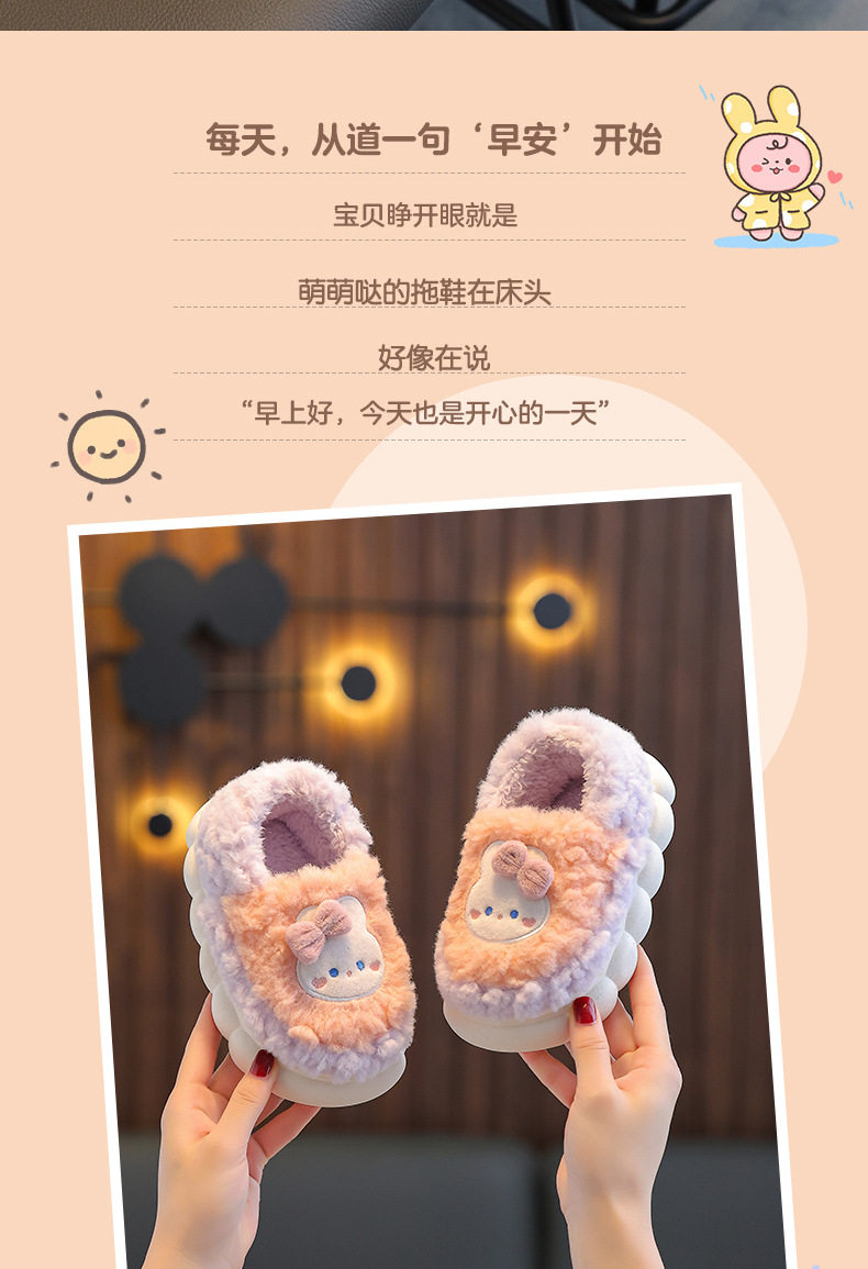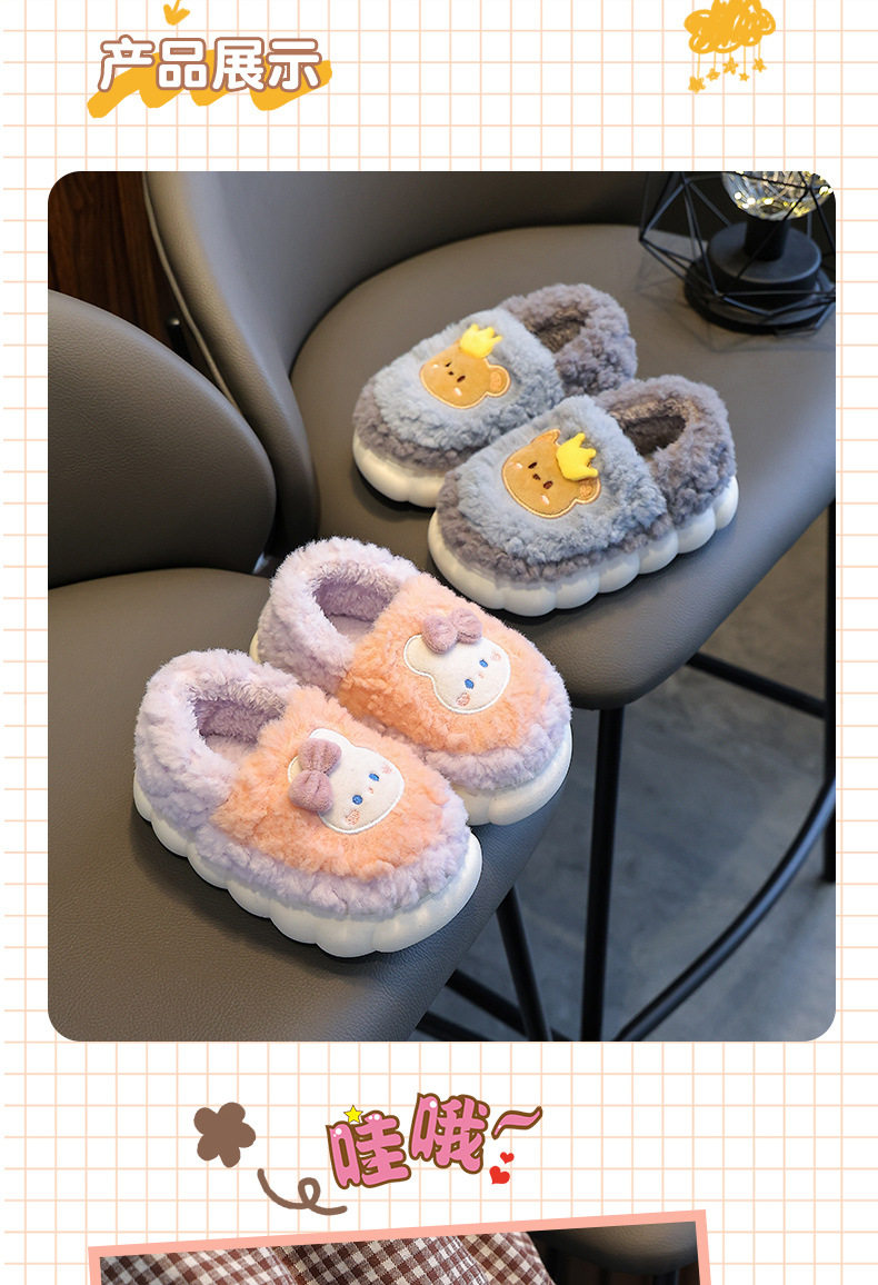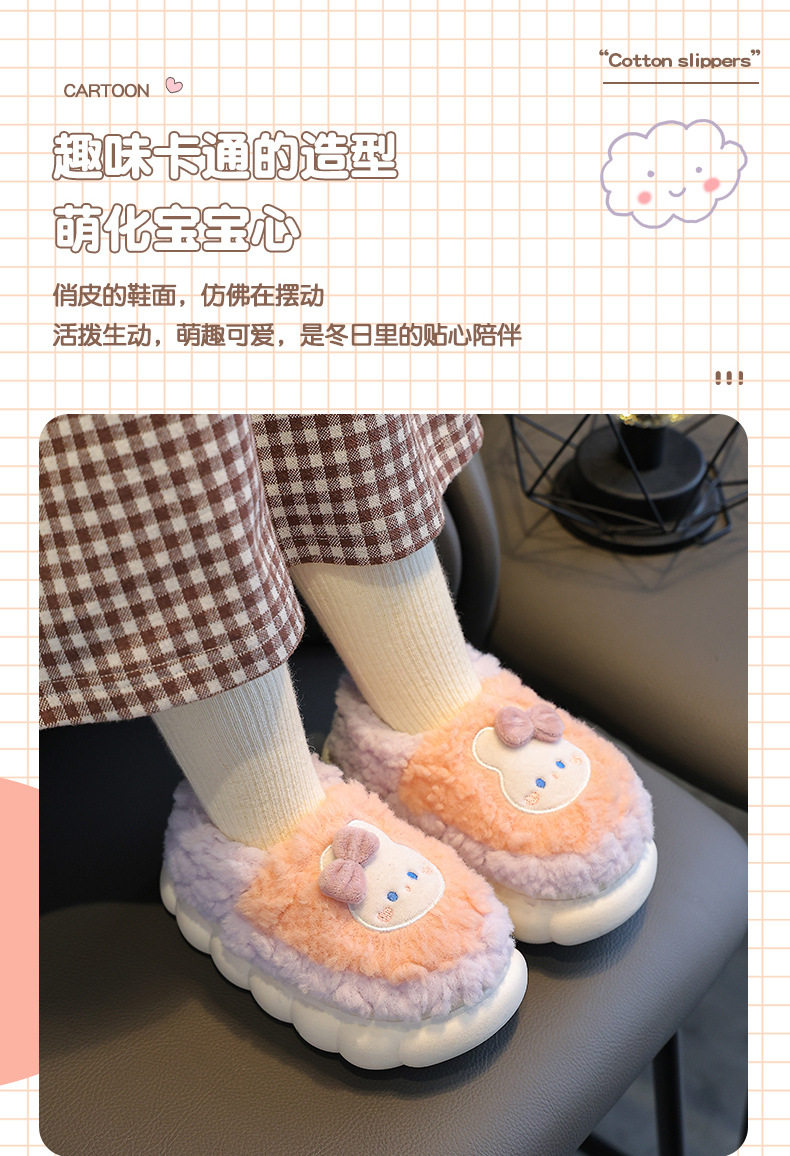 冬季儿童棉拖鞋男女童亲子包跟保暖加绒厚底卡通居家宝宝毛毛棉鞋