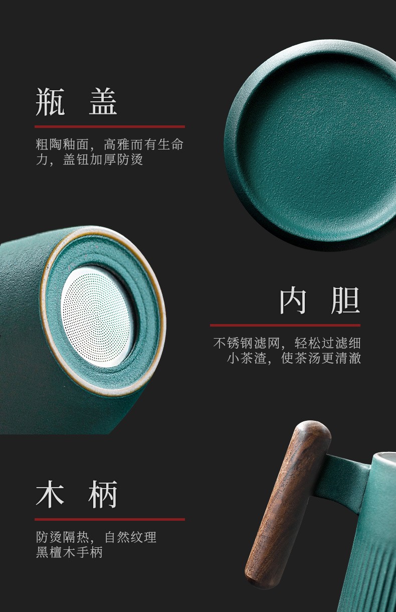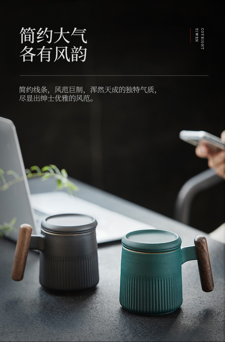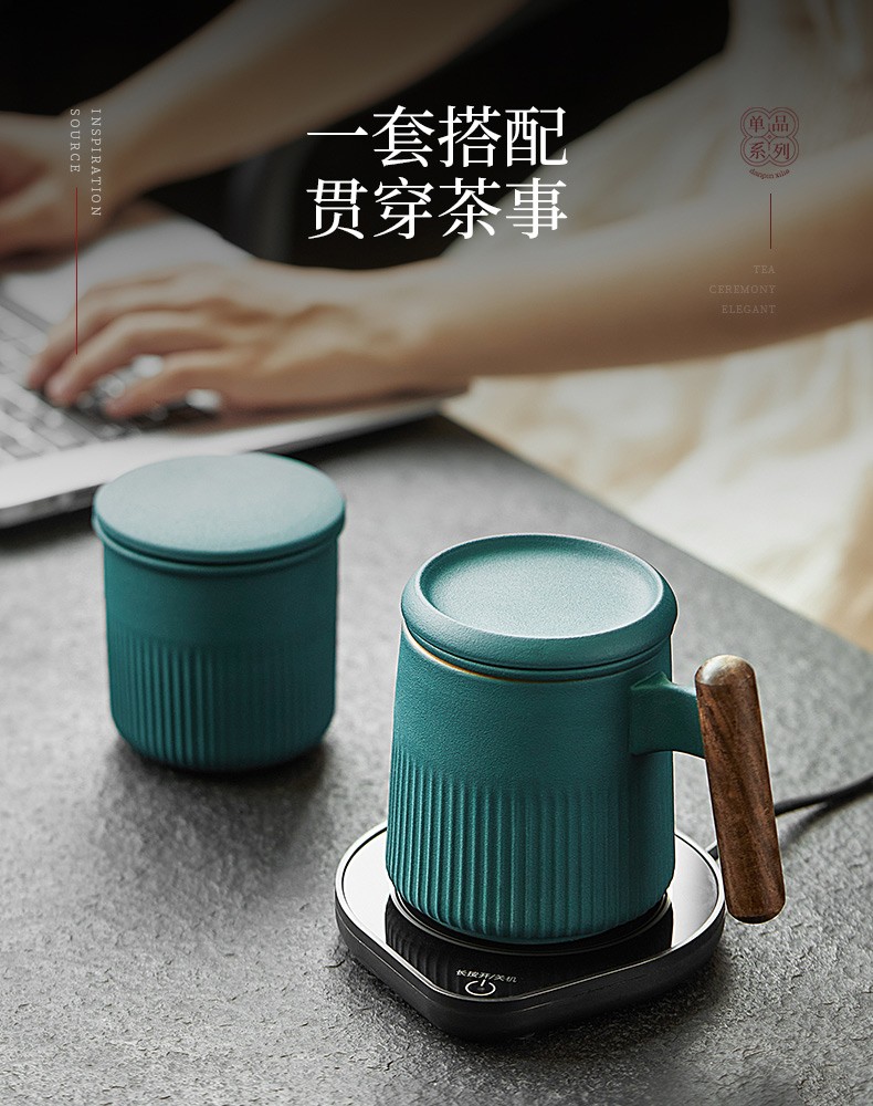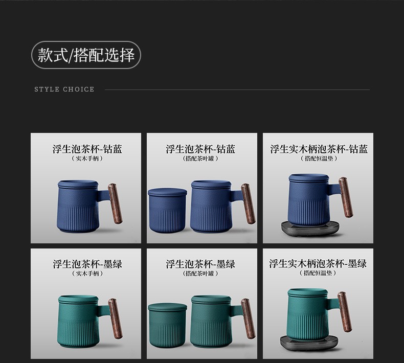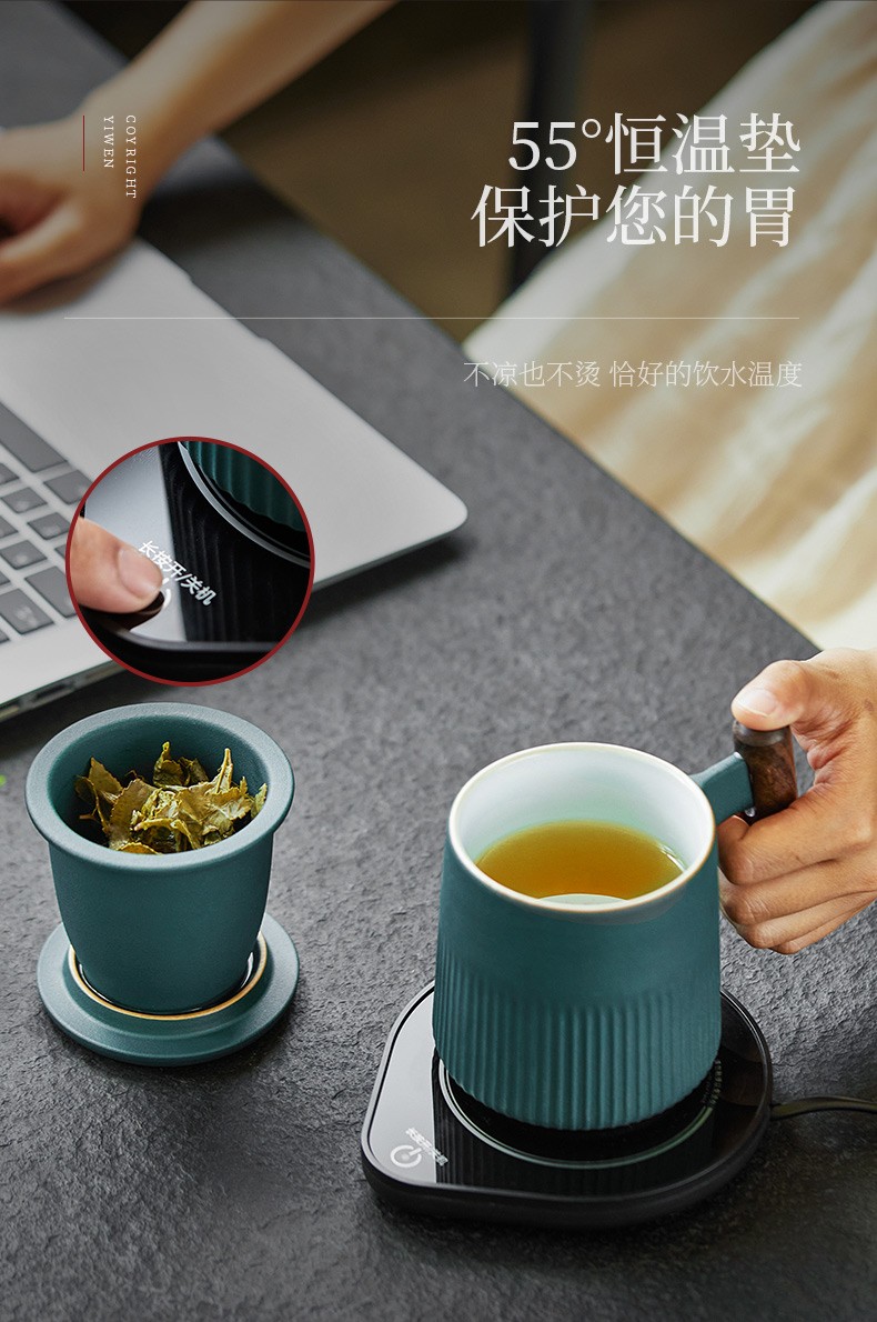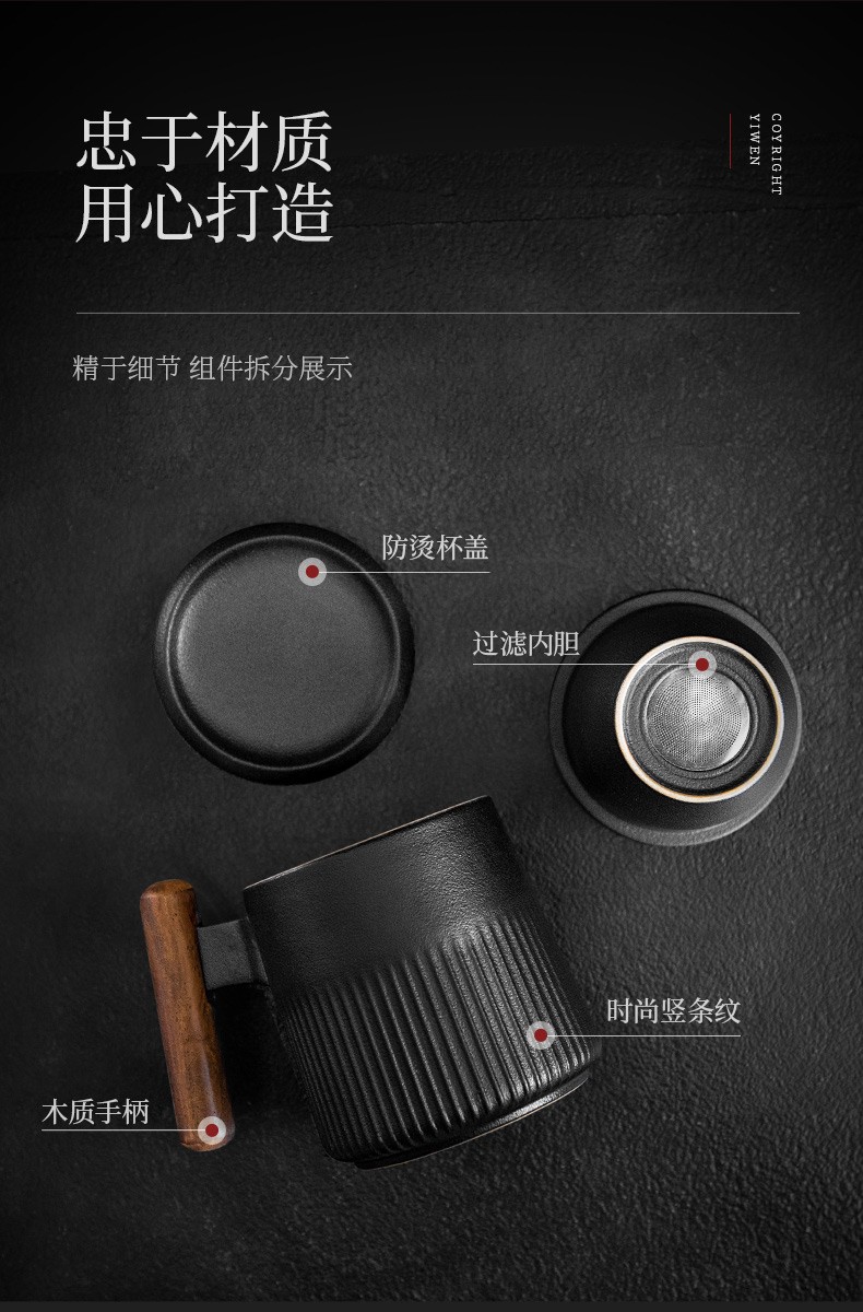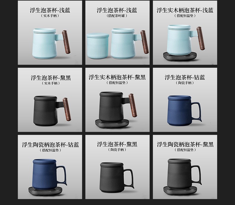 陶瓷过滤茶杯泡茶马杯带盖办公室水杯简约喝茶杯子茶水分离 浮生泡茶杯(黧黑)+恒温垫