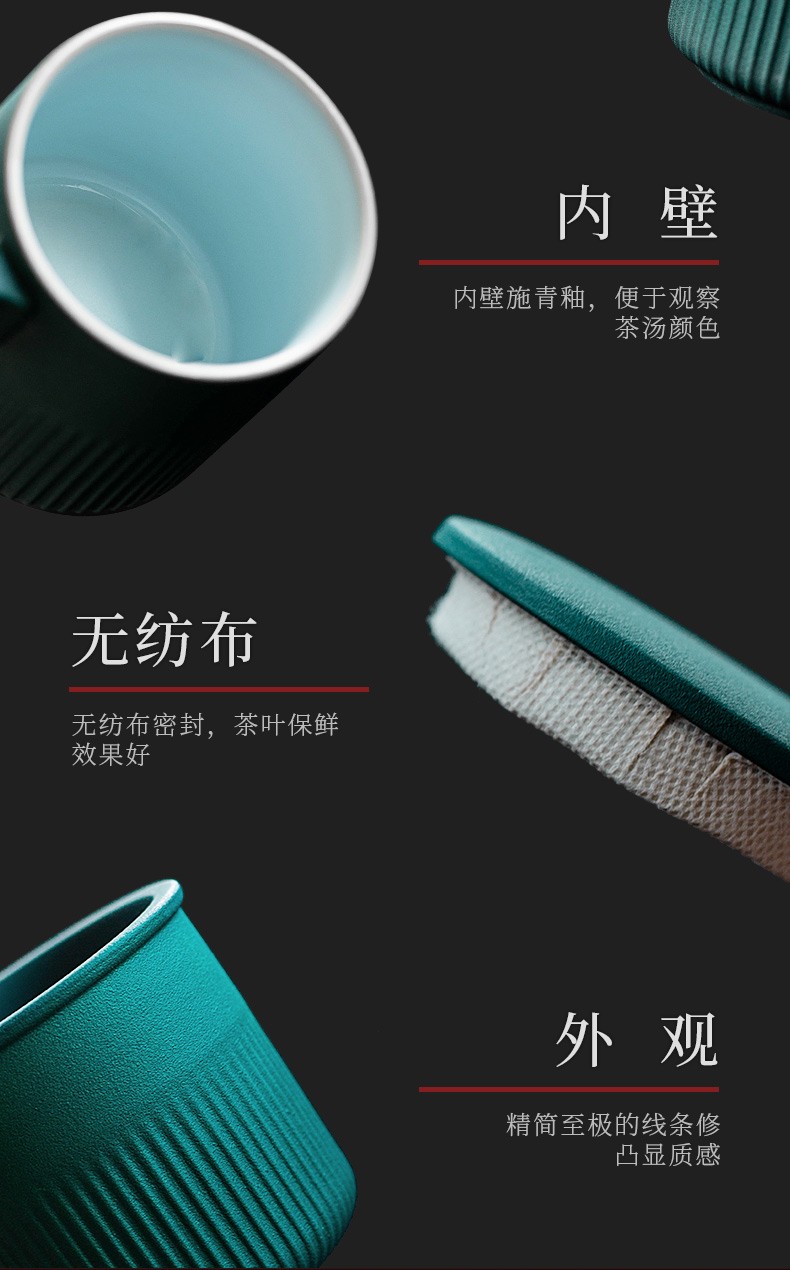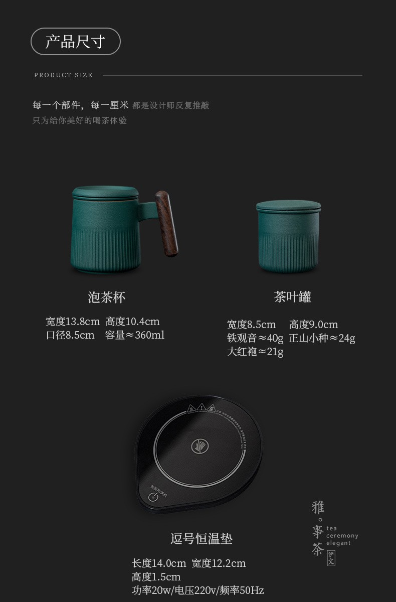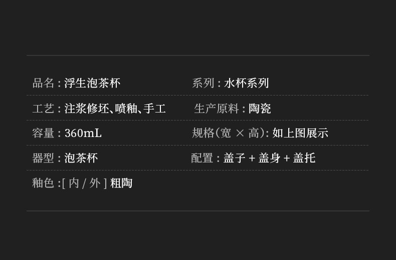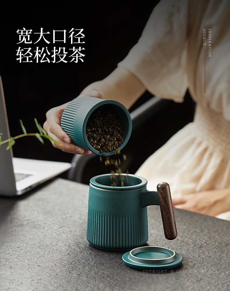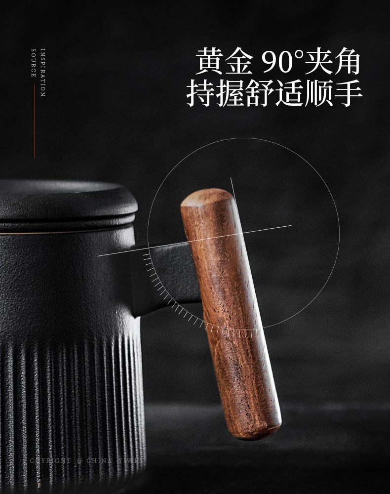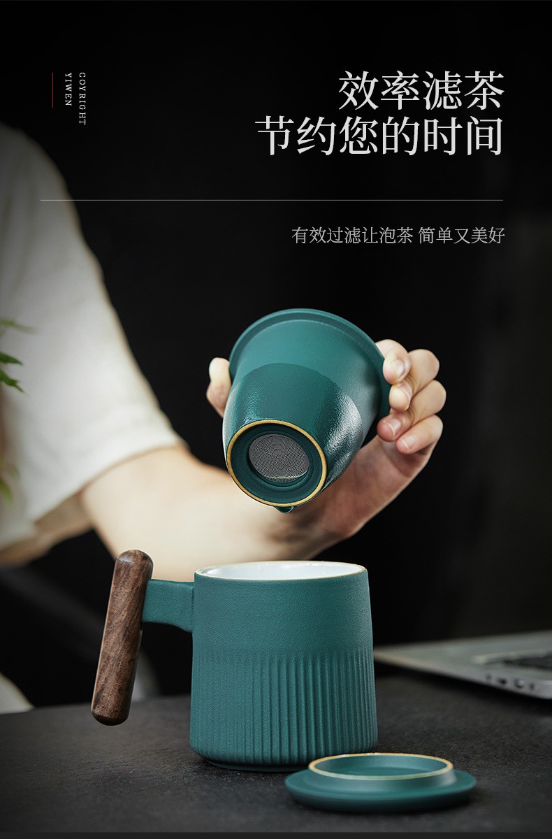 陶瓷过滤茶杯泡茶马杯带盖办公室水杯简约喝茶杯子茶水分离 浮生泡茶杯(黧黑)+恒温垫