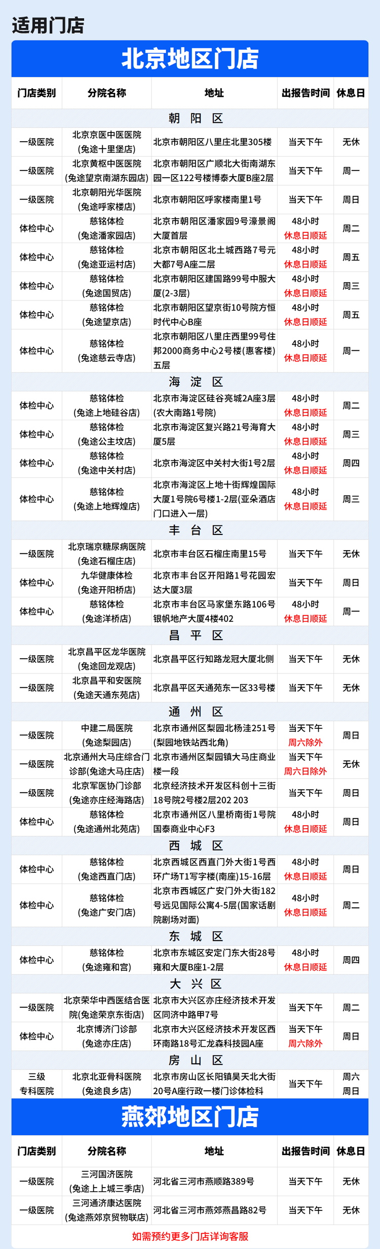 [多店通用] 北京入职体检周末可用当天约当天检C套餐