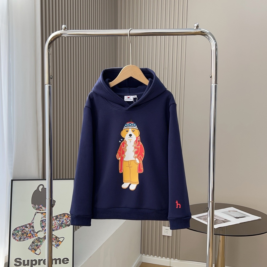 哈吉斯2025年冬季新款加厚加绒连帽儿童卫衣~这款保暖性极强!华棉面料,不起球不变形!识货的宝妈一定要买的面料,给孩子的衣服我们一定要用最健康的,设计上依旧延续了 简约的风格,胸前的立体印花大狗狗,高端大气上档次,整体设计与成人款几乎相差无几,宽松的版型让小孩子也能穿出高街造型。在完美继承了主线立体服饰版型设计的基础上,一直坚持以简约低调的配色和精细的裁剪,俘获众多高街潮人们的芳心,️更重要的是穿起来真的帅,很容易搭配,而且质量各方面相当过硬,款式基础非常百搭!!舒适 宽松 洋气 绝对的让你意想不到的惊喜!