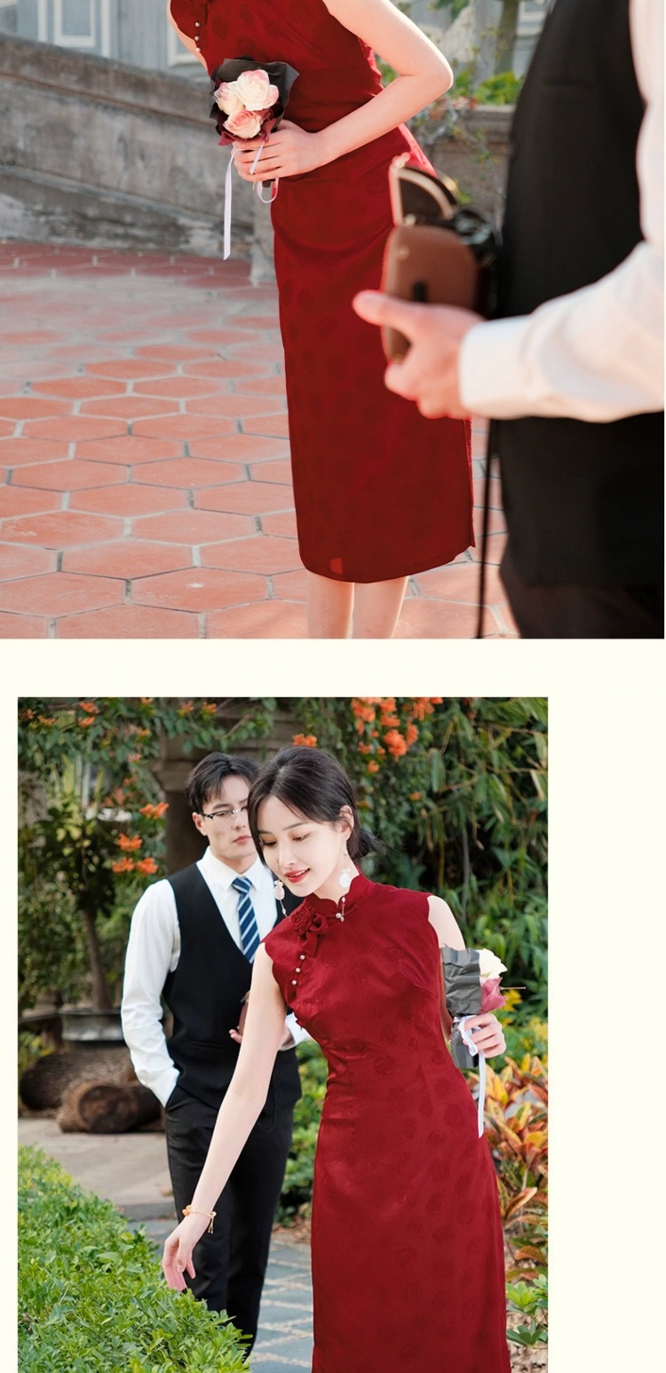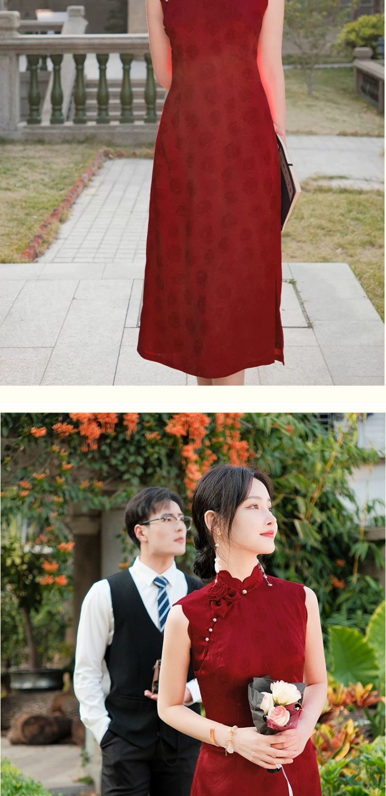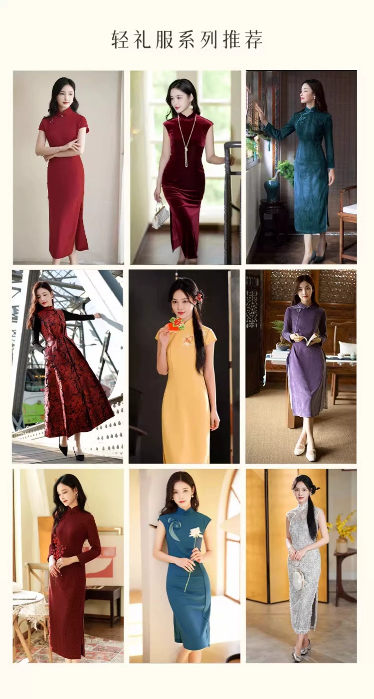 上海逸红颜青青2025年夏季新款提花手工花瓣领新中式旗袍轻礼服女