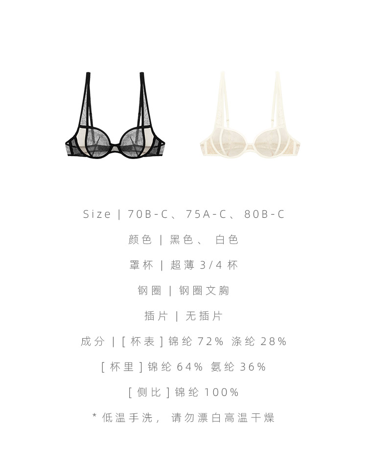 Her Senses|极织 05-B054-YN 列维斯蕾丝 3/4杯 钢圈文胸 [ 黑 / 白 ]