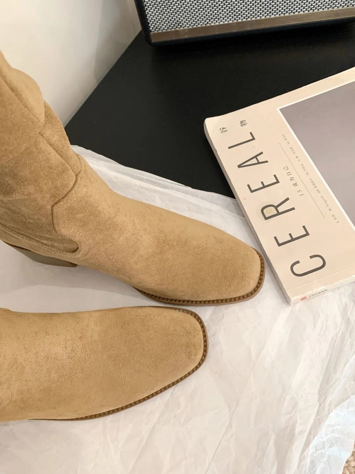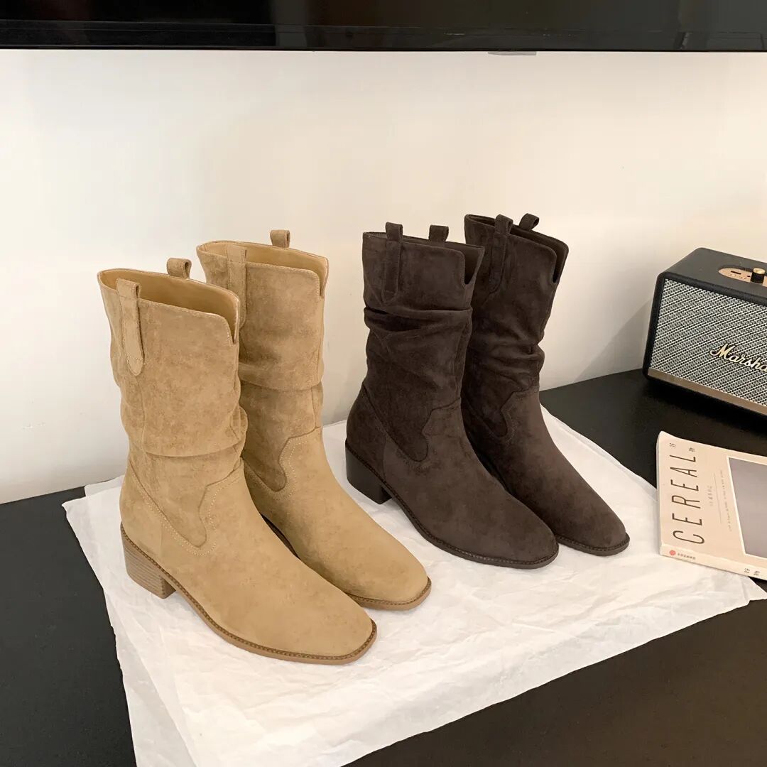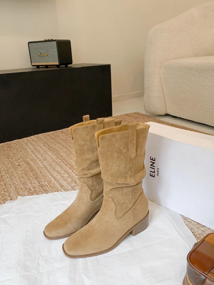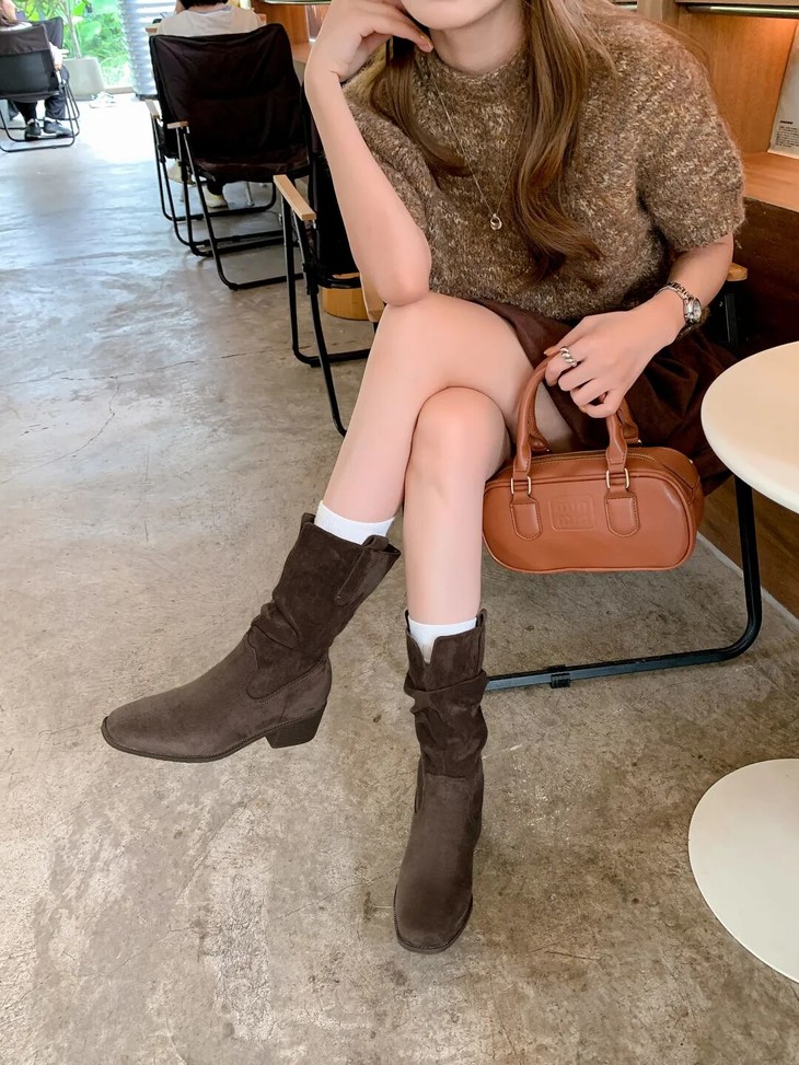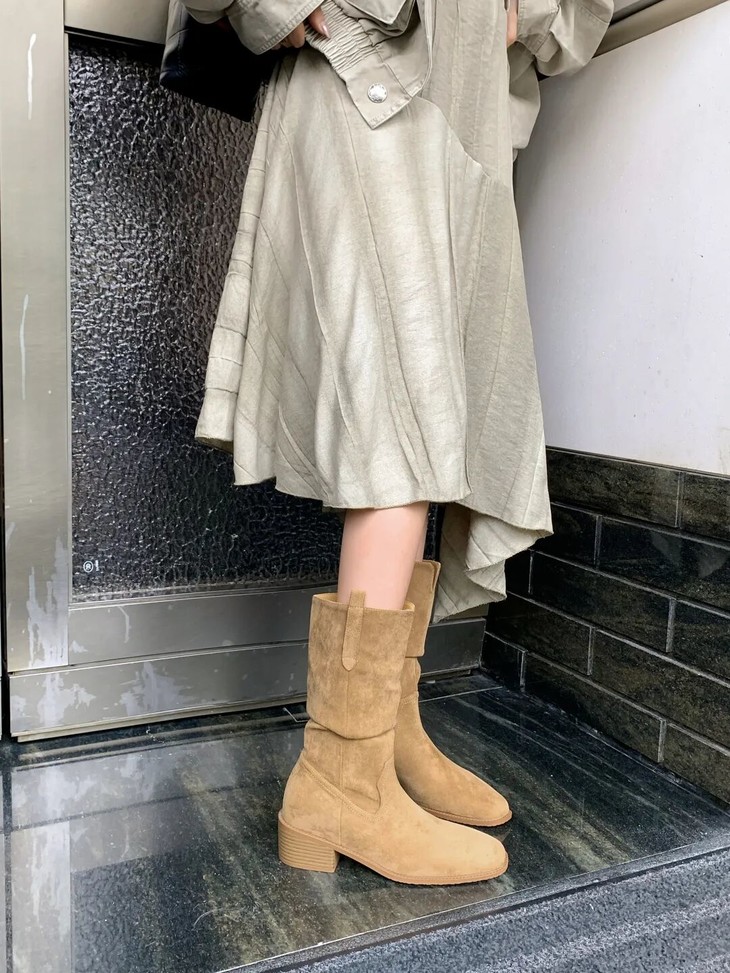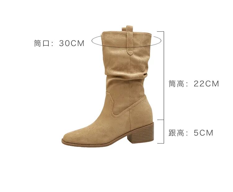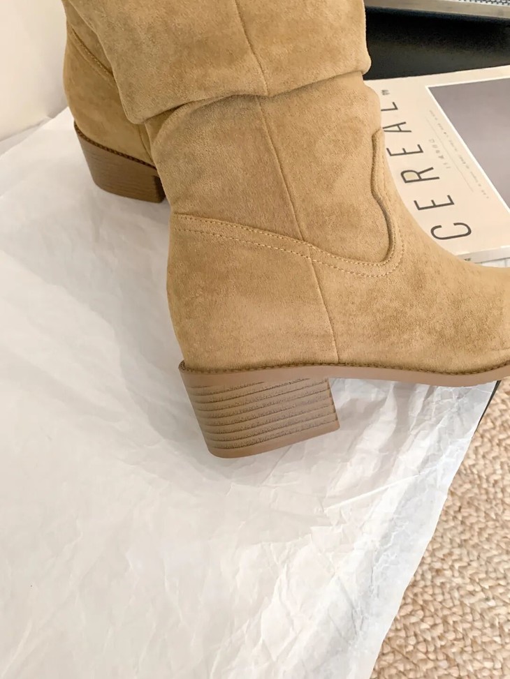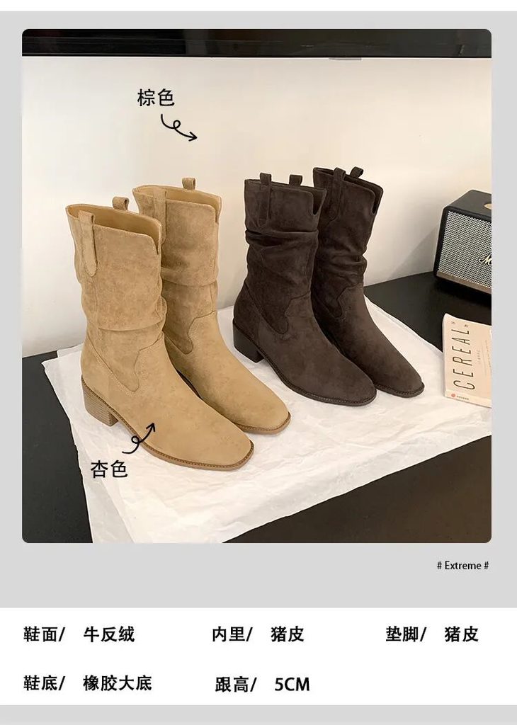 YiLuoShan复古方头粗跟堆堆靴 , 明星同款,随意堆堆的松弛感,小个子姐妹放心冲