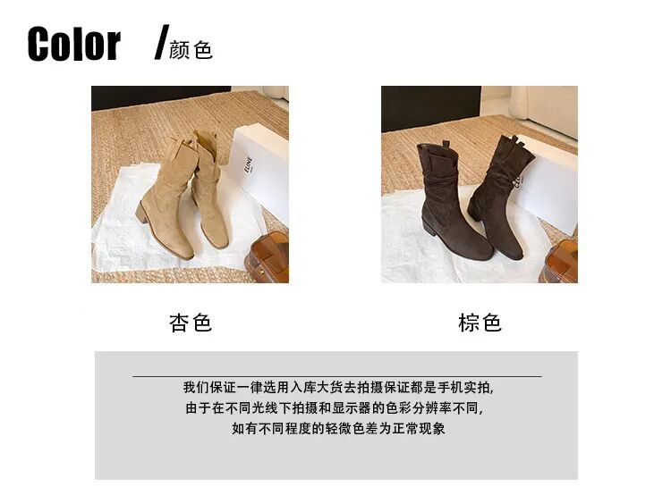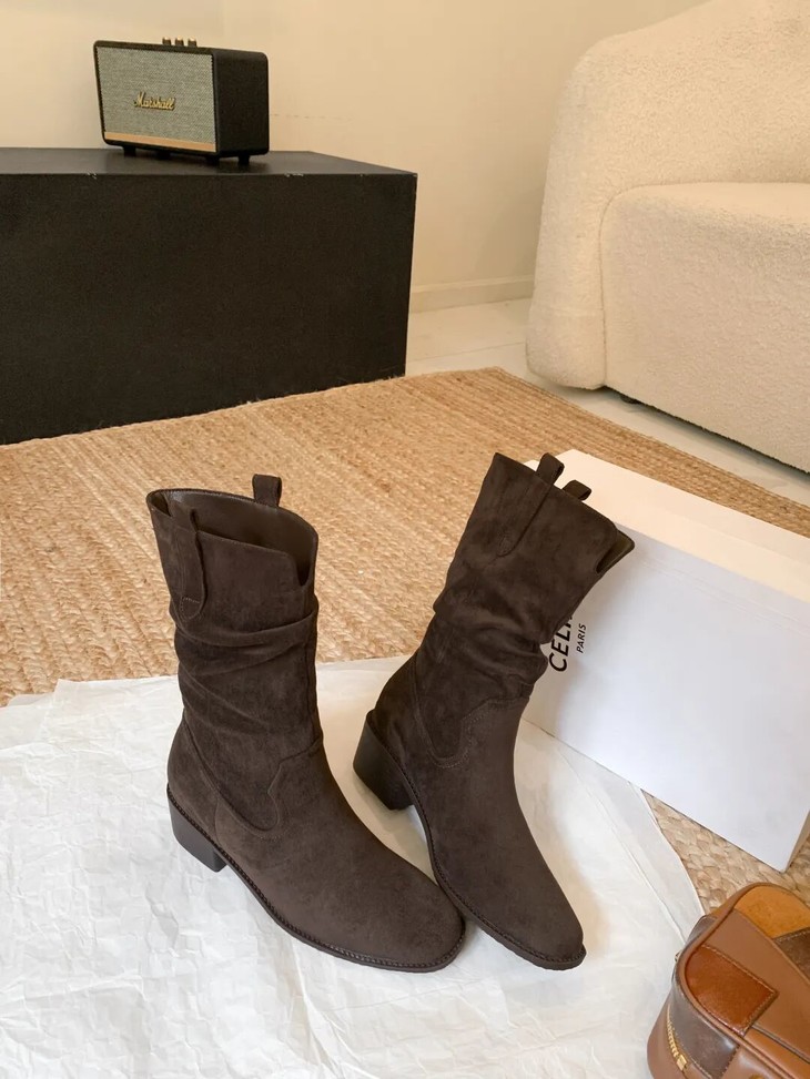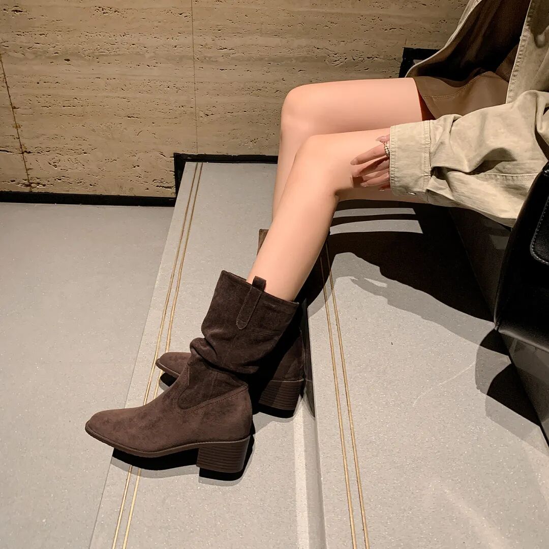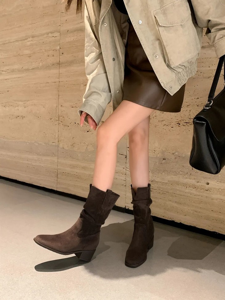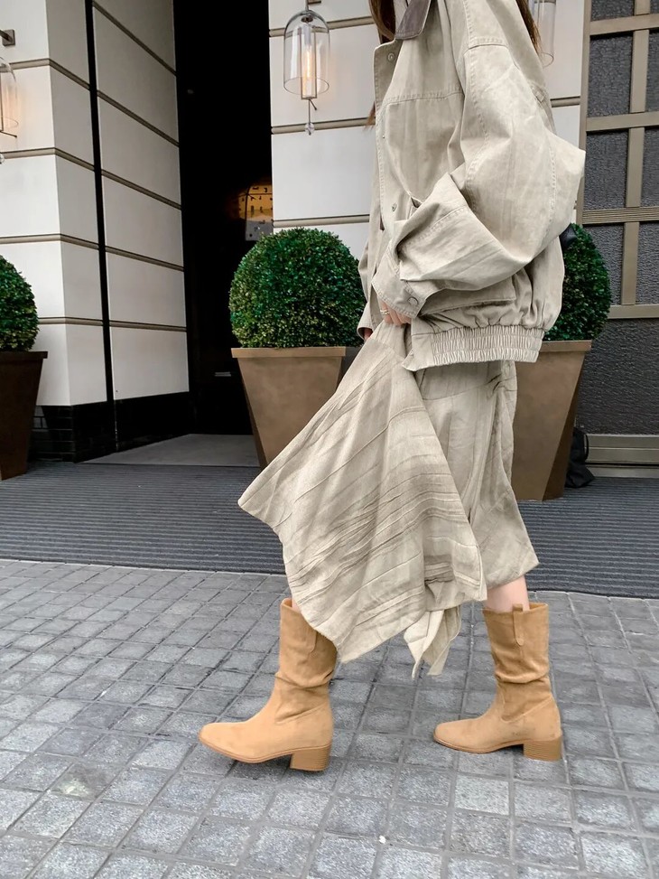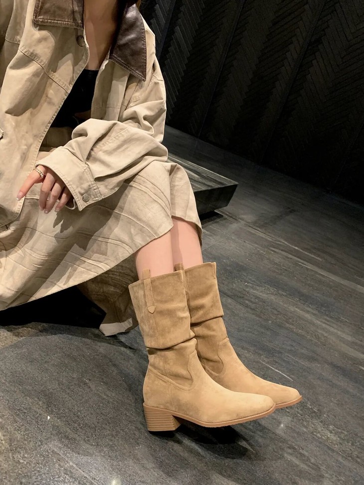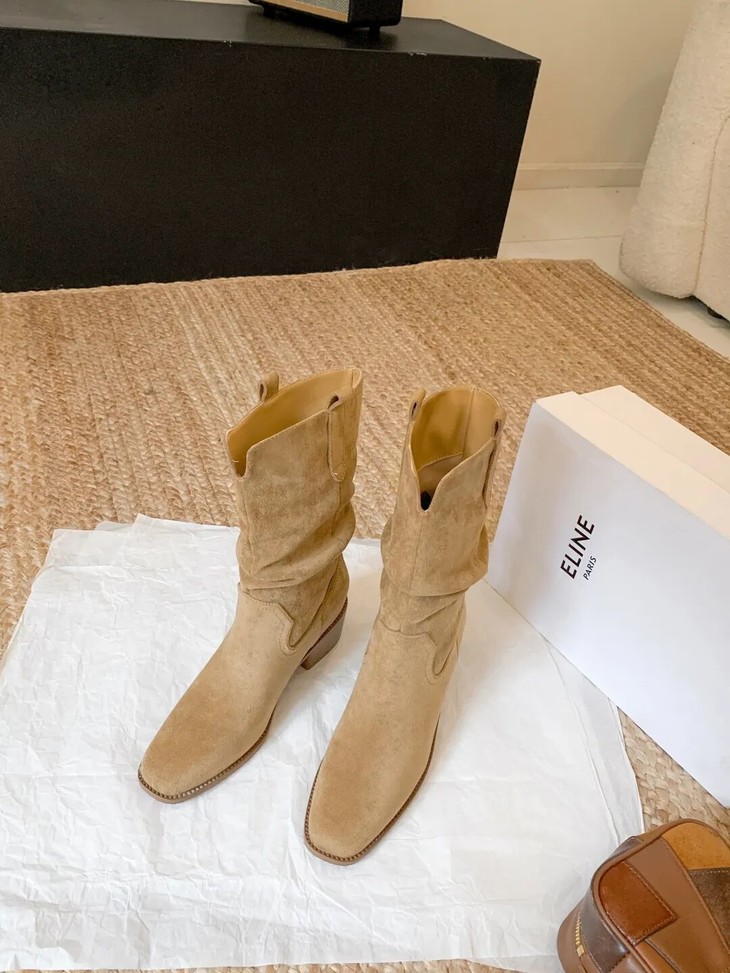YiLuoShan复古方头粗跟堆堆靴 , 明星同款,随意堆堆的松弛感,小个子姐妹放心冲