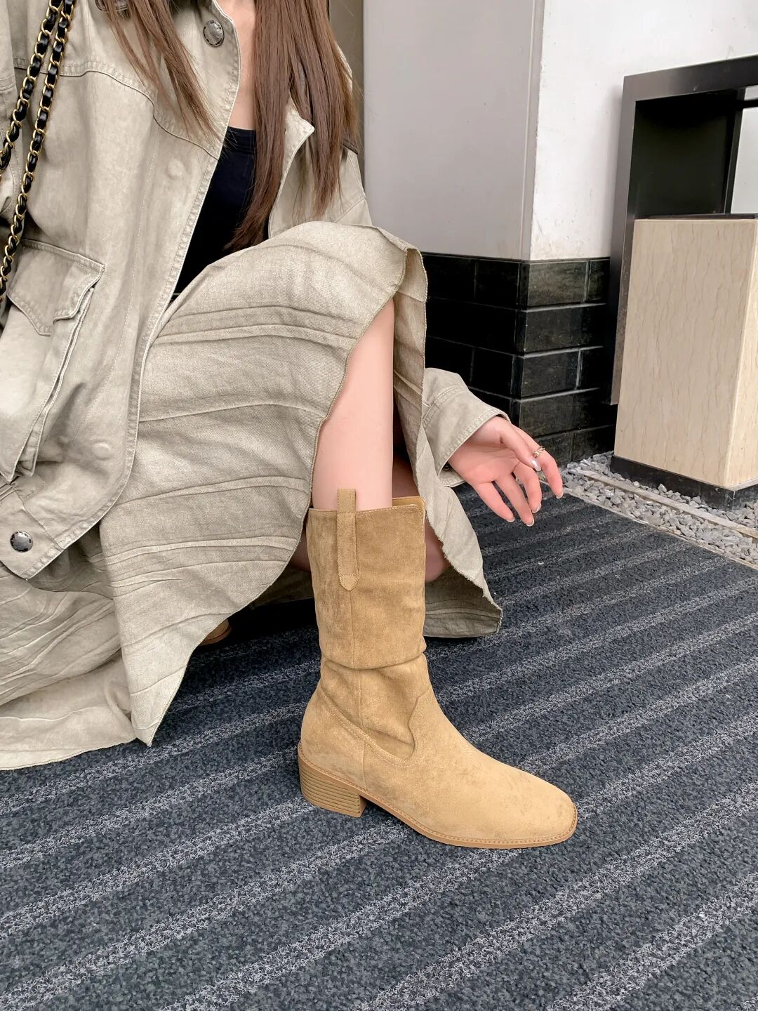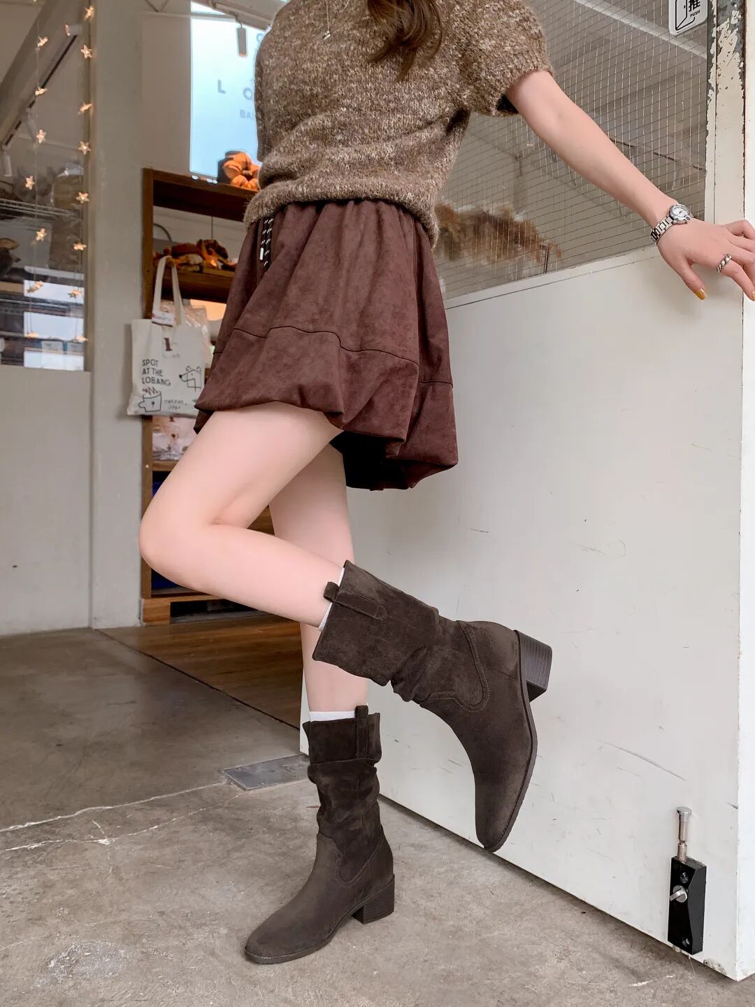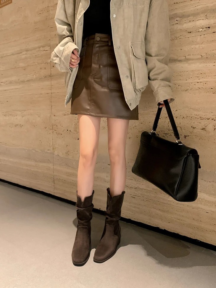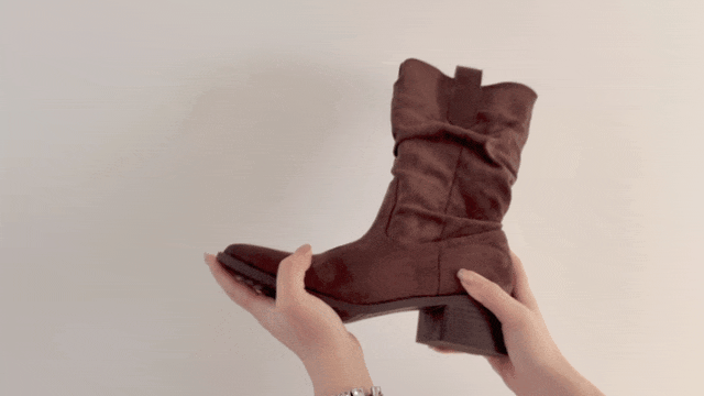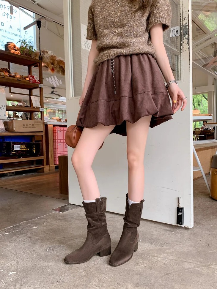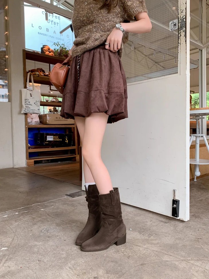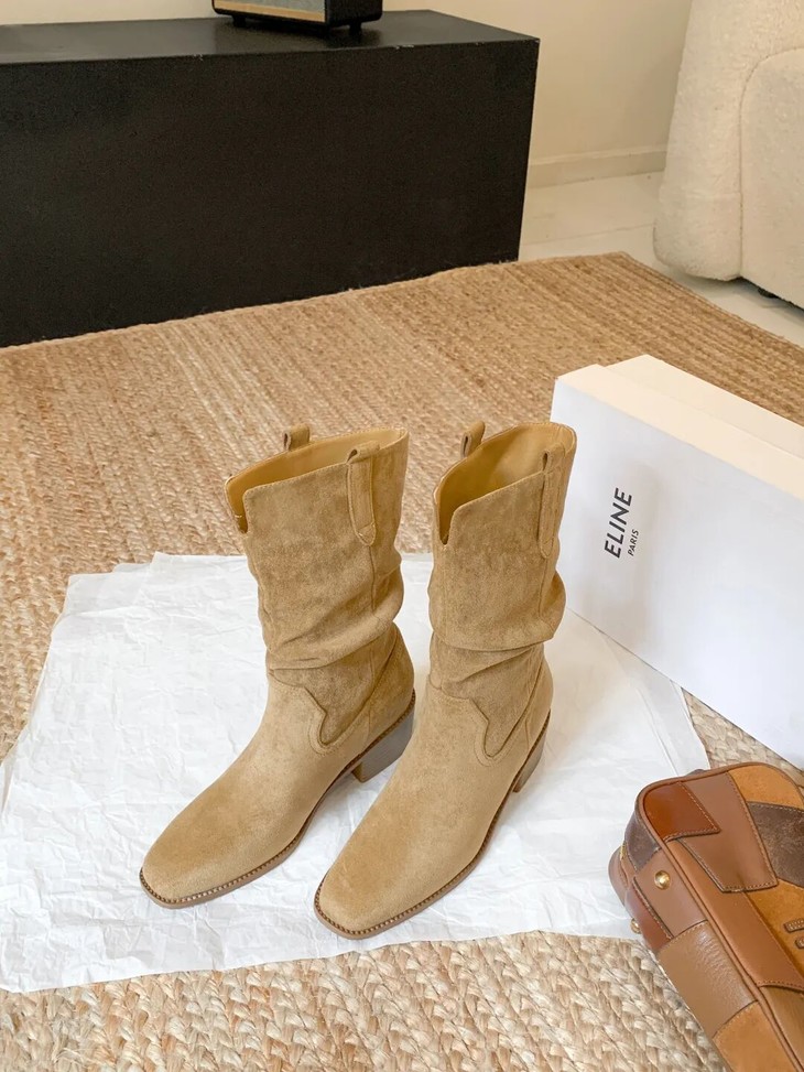YiLuoShan复古方头粗跟堆堆靴 , 明星同款,随意堆堆的松弛感,小个子姐妹放心冲