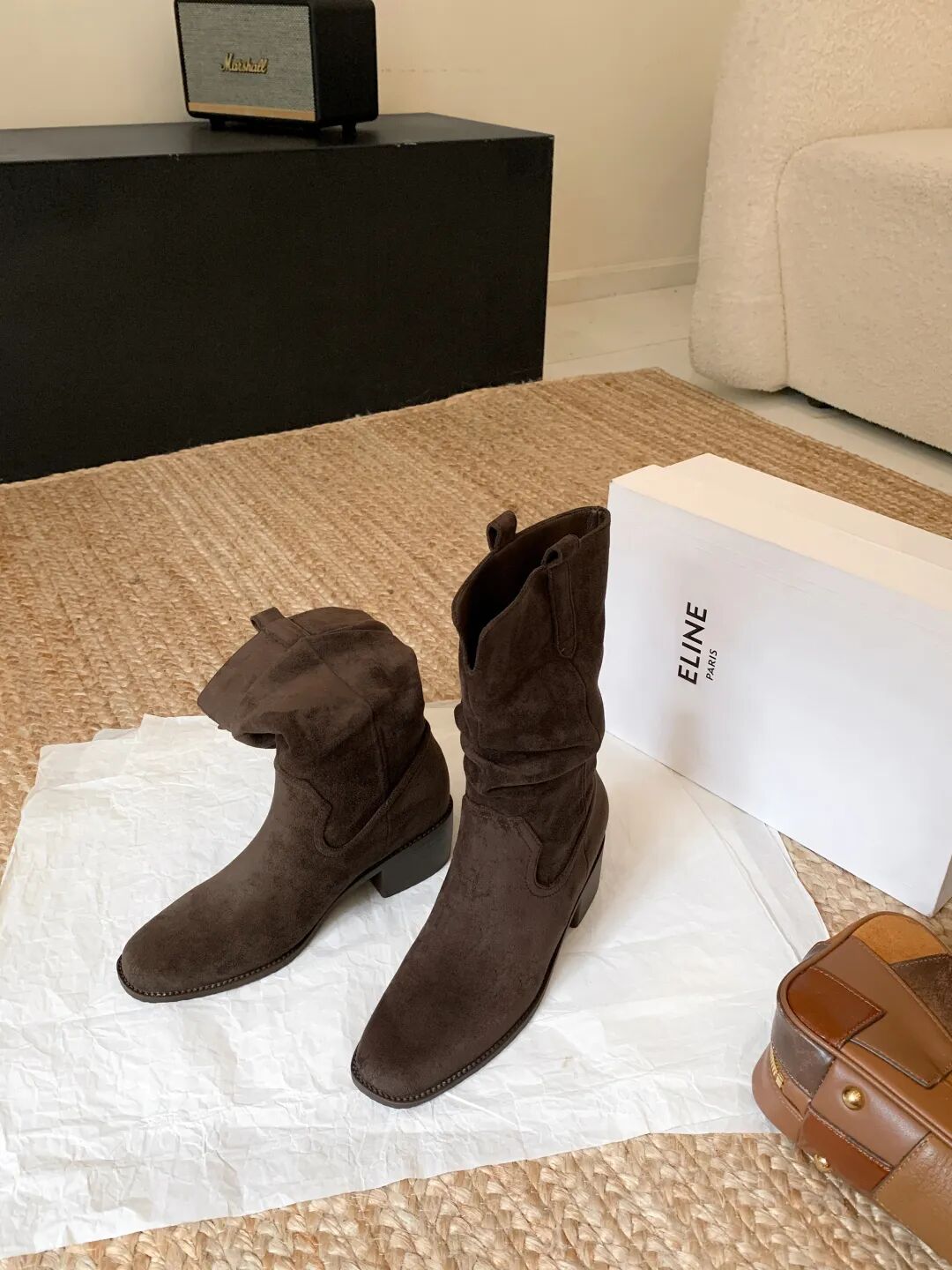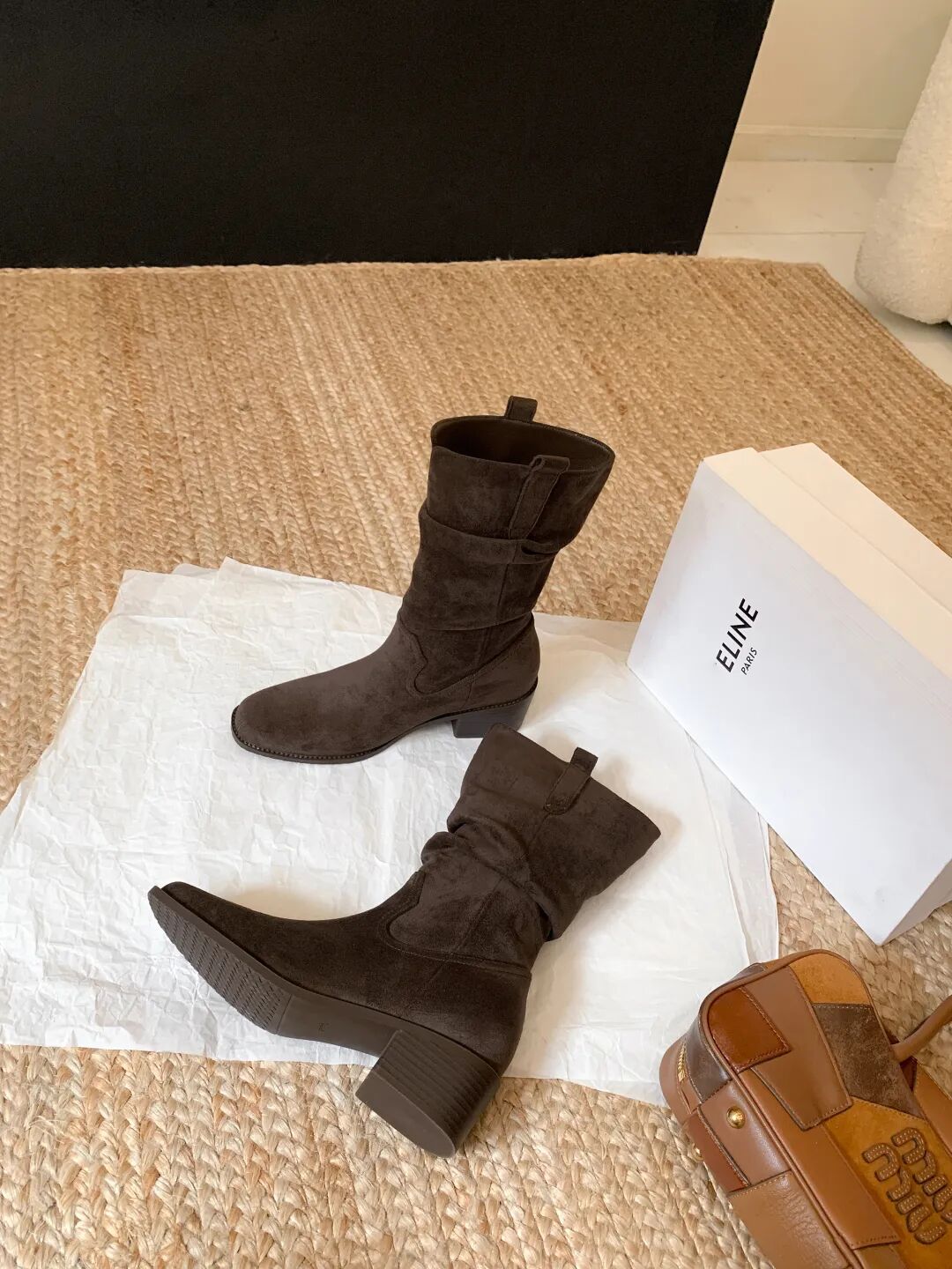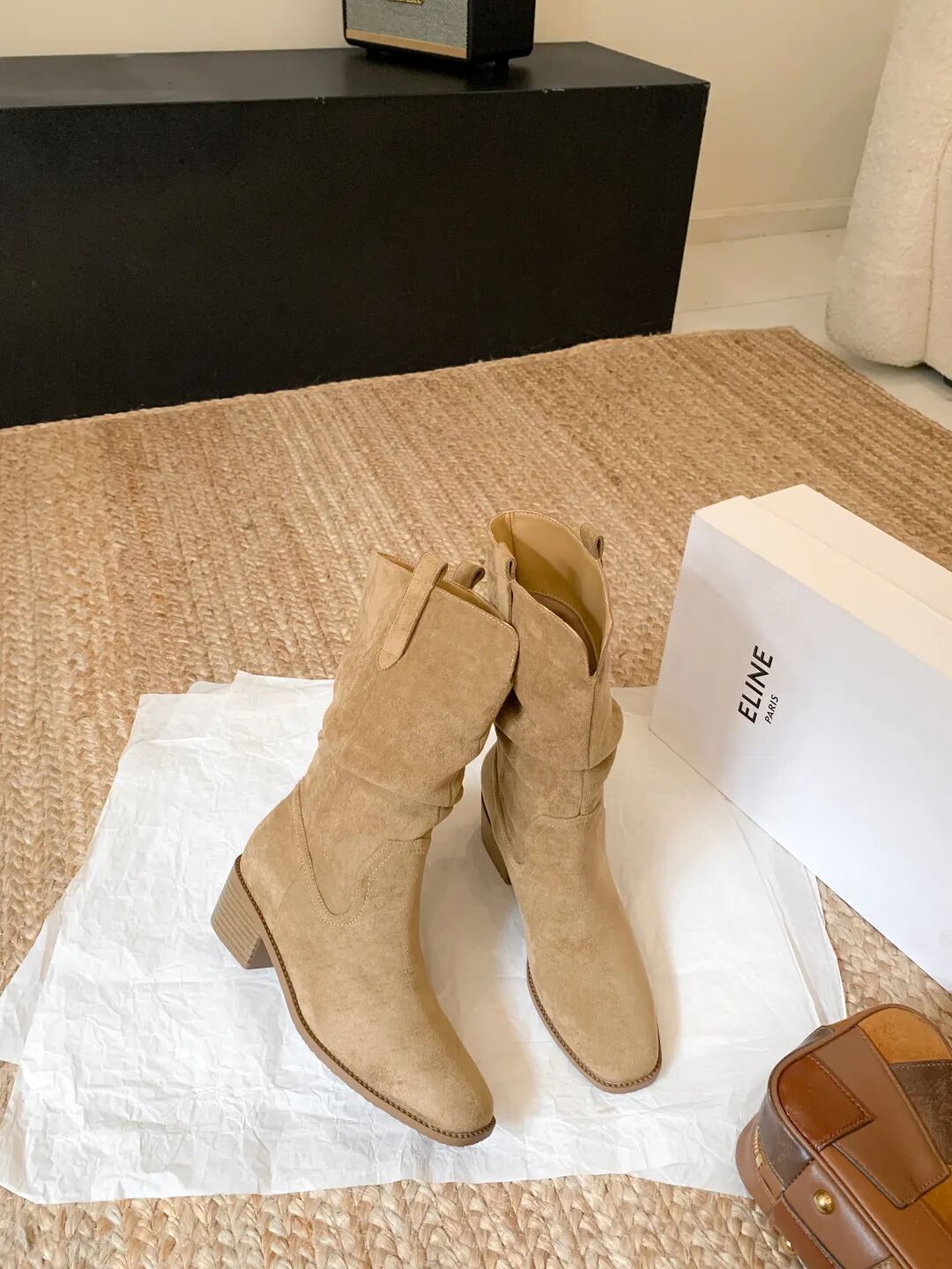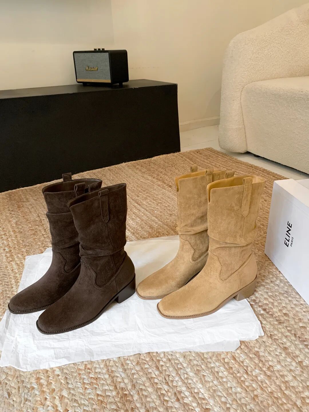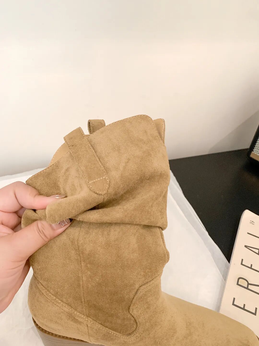 YiLuoShan复古方头粗跟堆堆靴 , 明星同款,随意堆堆的松弛感,小个子姐妹放心冲