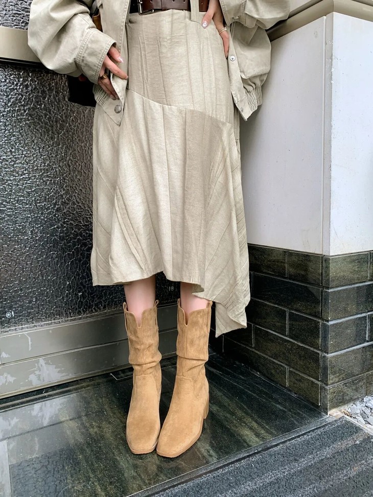 整个靴筒以不规则的自然形式微定型折叠