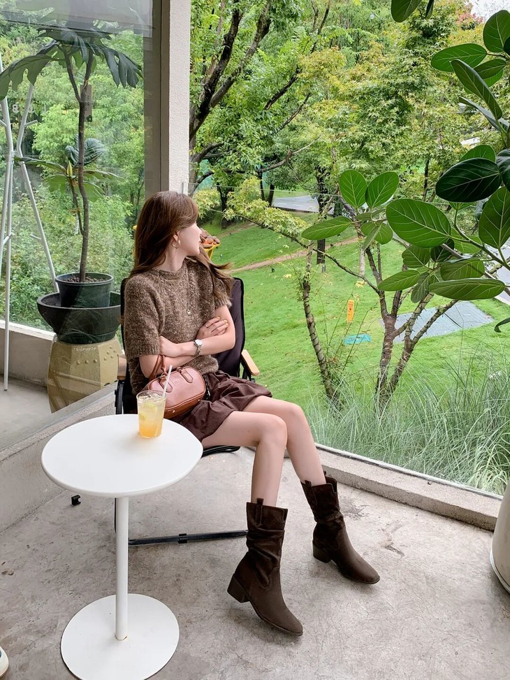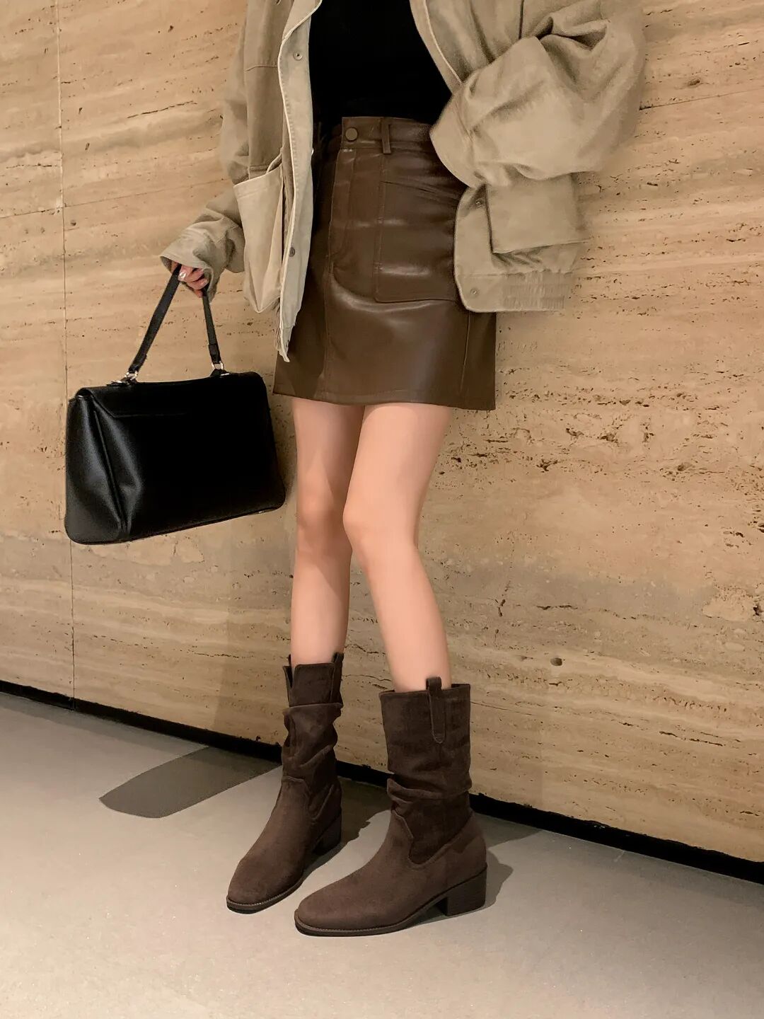 V型靴口的小心思设计超有慵懒感,很修饰腿型