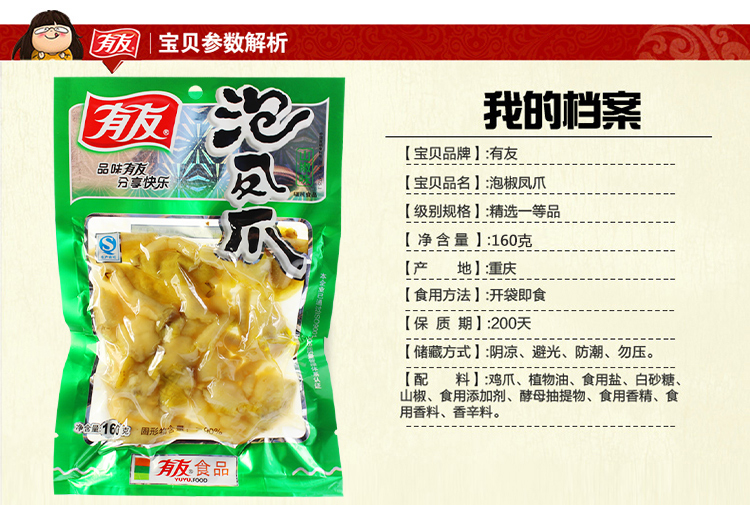 有友泡椒凤爪172g 山椒鸡爪泡凤爪重庆特产麻辣休闲零食