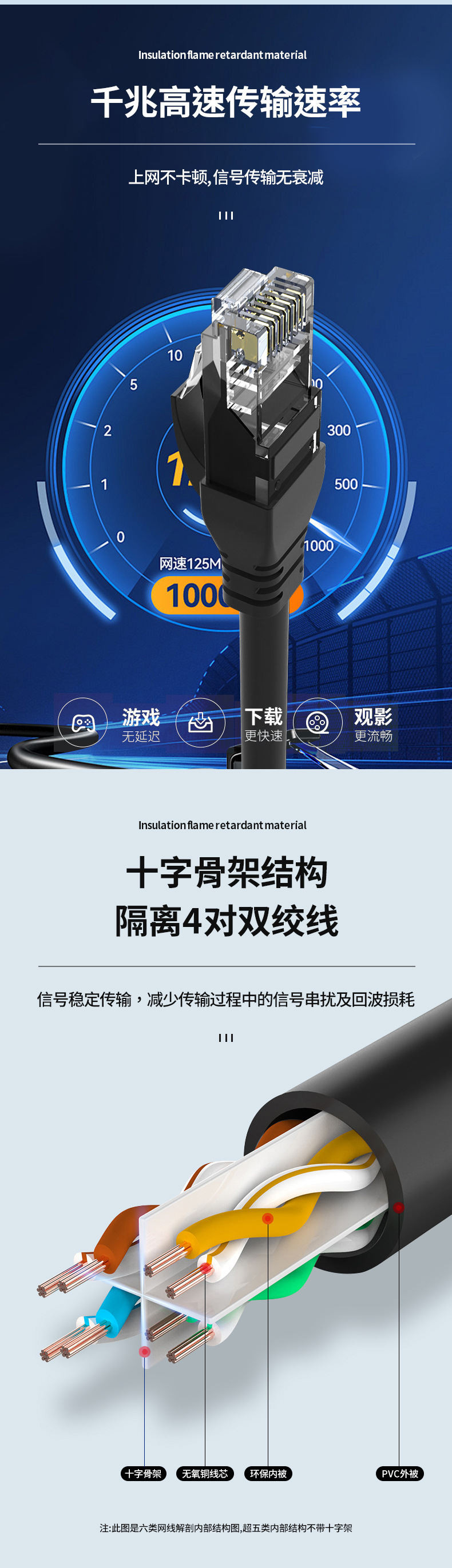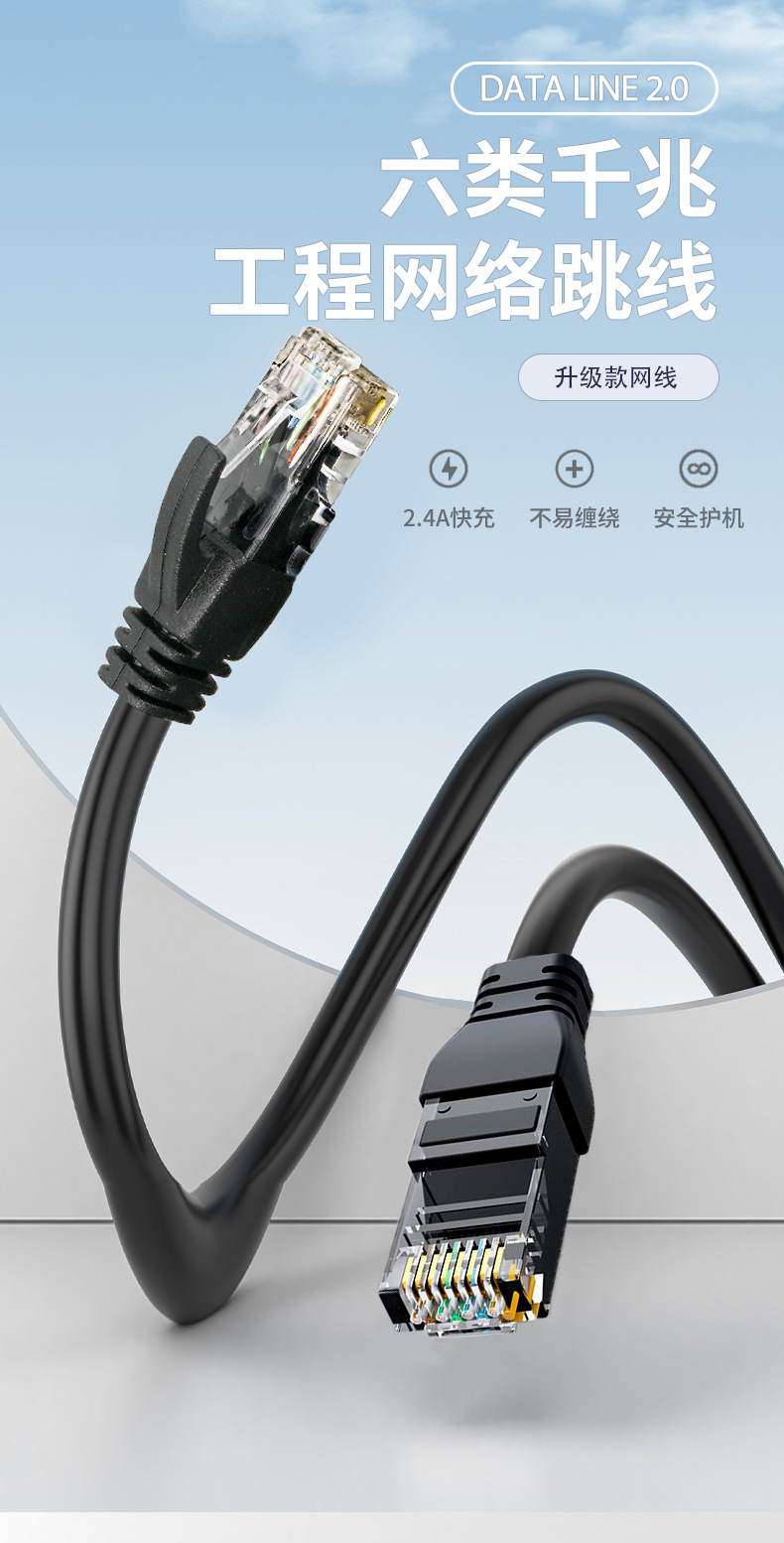超六类千兆专用网线【多规格】6类路由器连接线监控线电脑成品宽带网络跳线1根