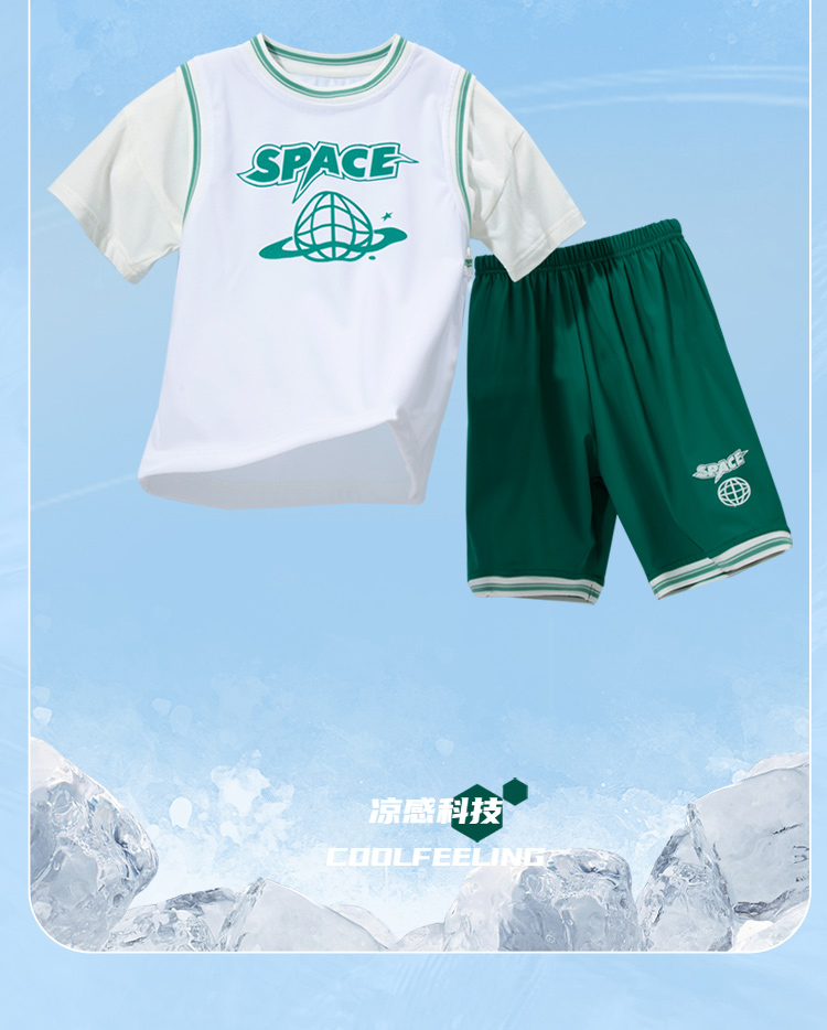 贝贝怡新款童装2024夏季儿童球服套装凉感t恤男童短袖宝宝运动服ZB2DT010