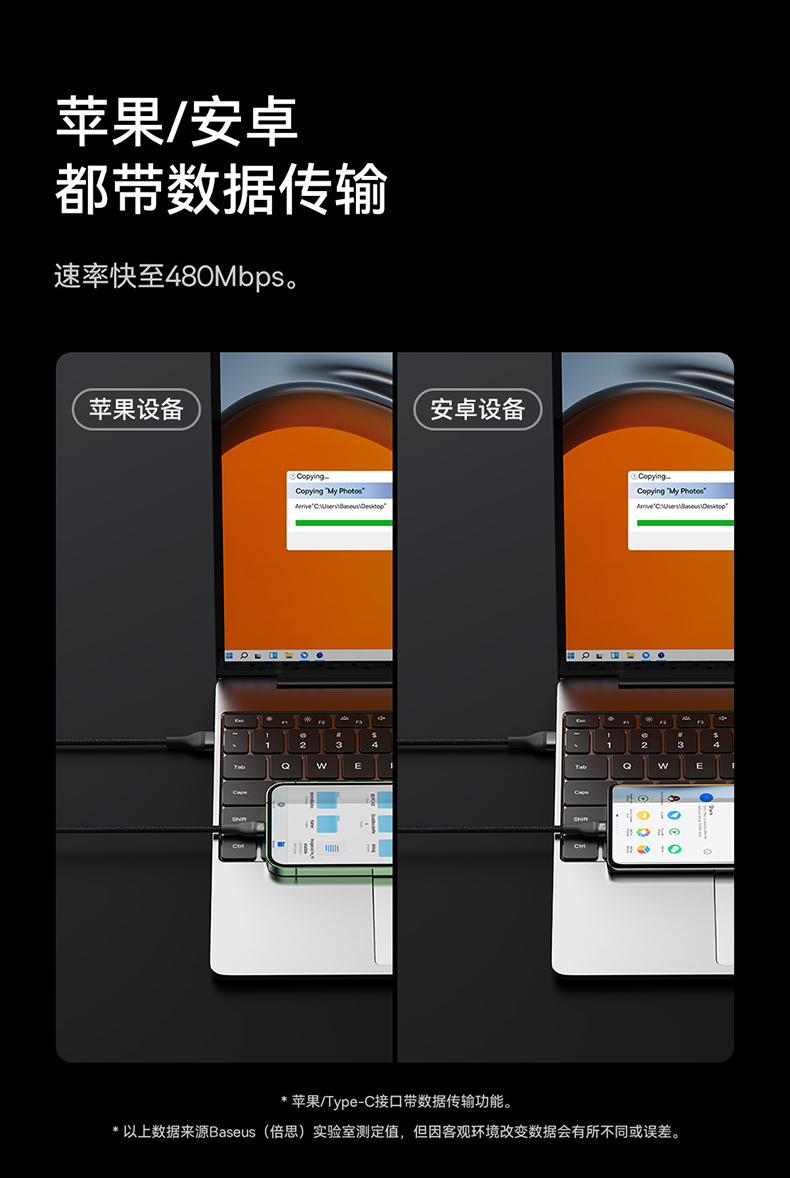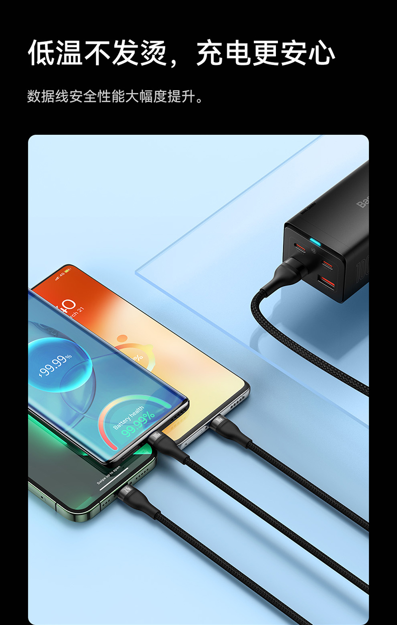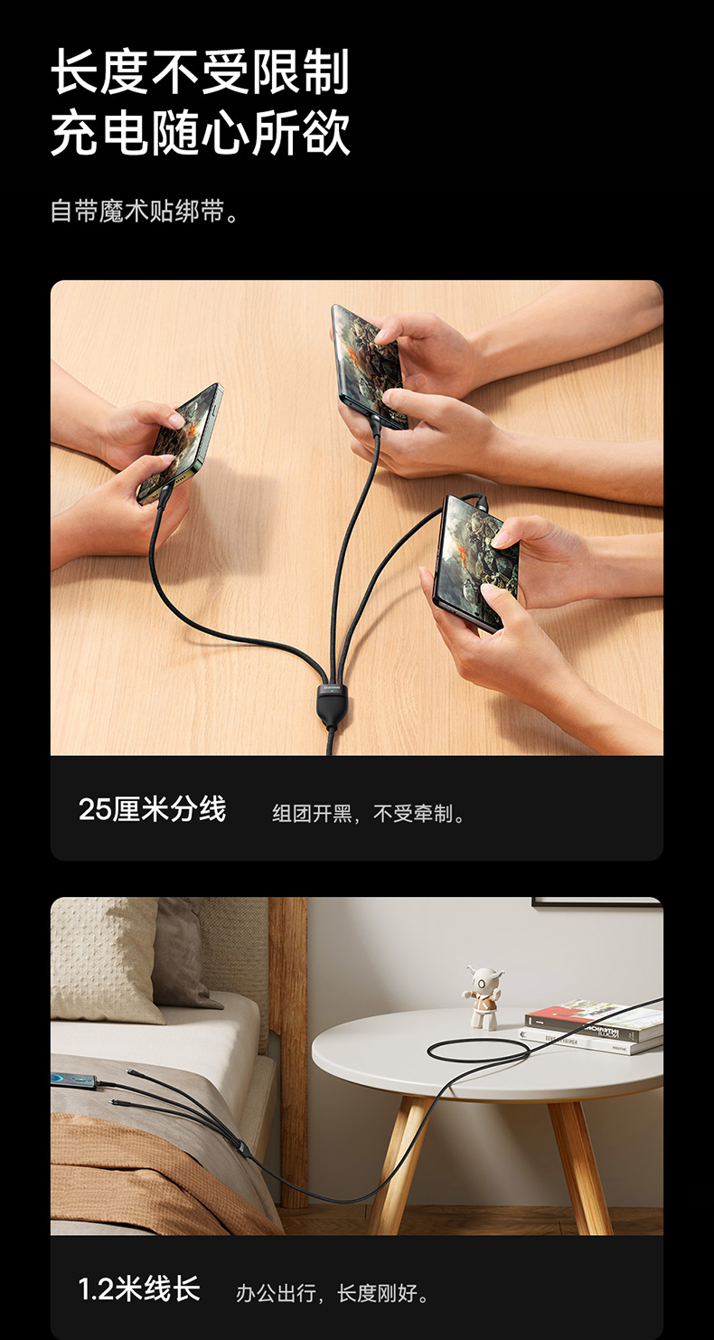 倍思 闪速系列2 一拖三快充数据线USB to M+L+C 100W 1.2m