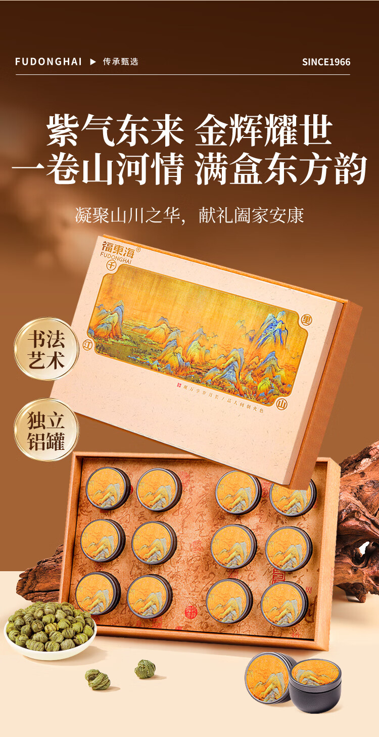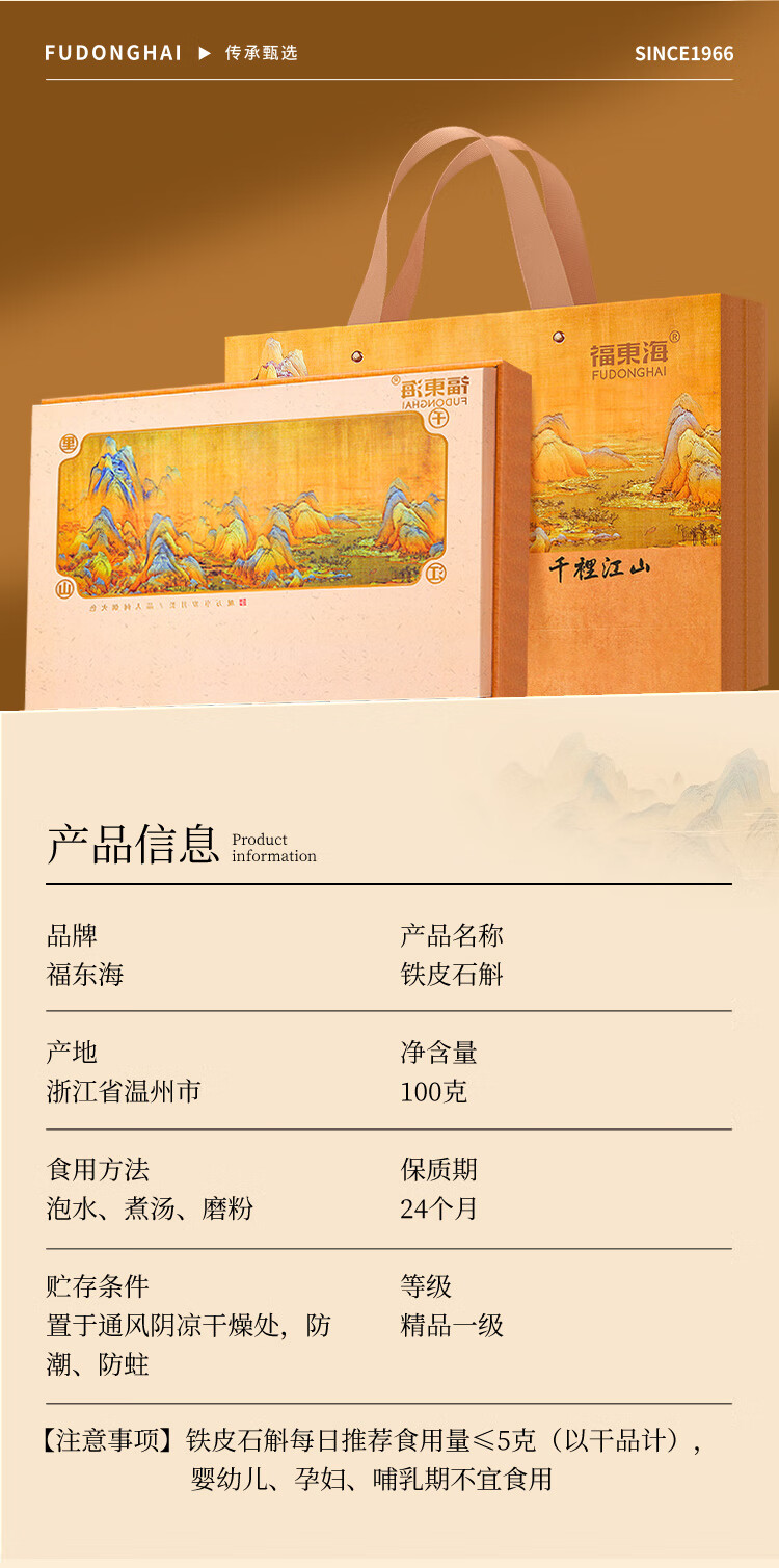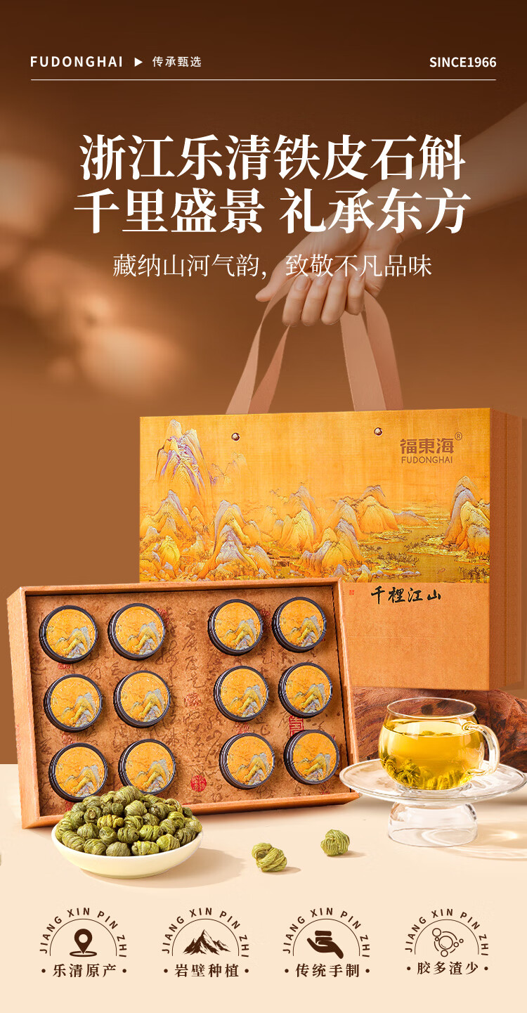 福东海 铁皮石斛枫斗礼盒100克 千里江山送礼节日礼物 泡水泡茶