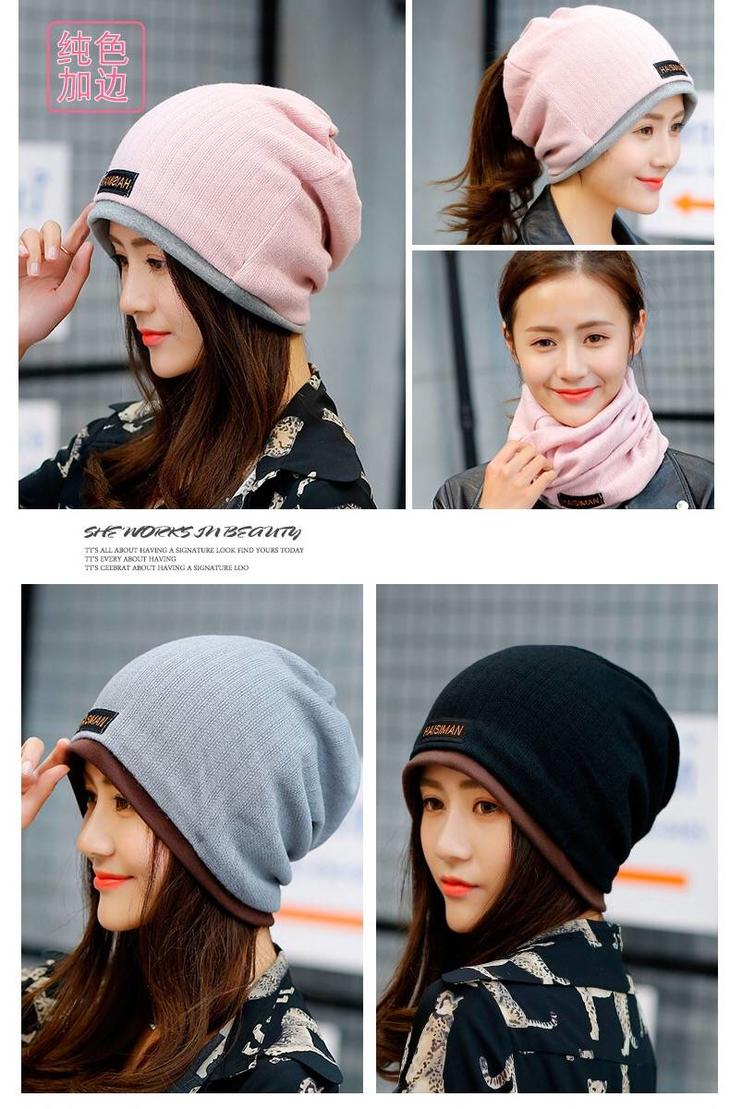 (帽子围脖二合一)秋冬帽子女韩版头巾帽保暖多功能月子帽包头帽 头巾