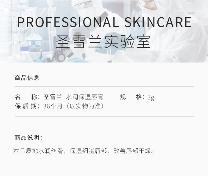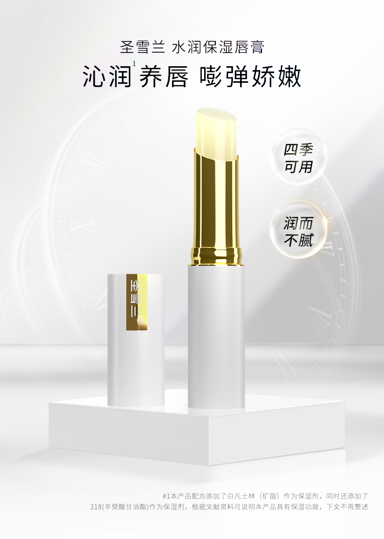 【自营】圣雪兰 水润保湿润唇膏 淡唇纹 清透无色 口红打底