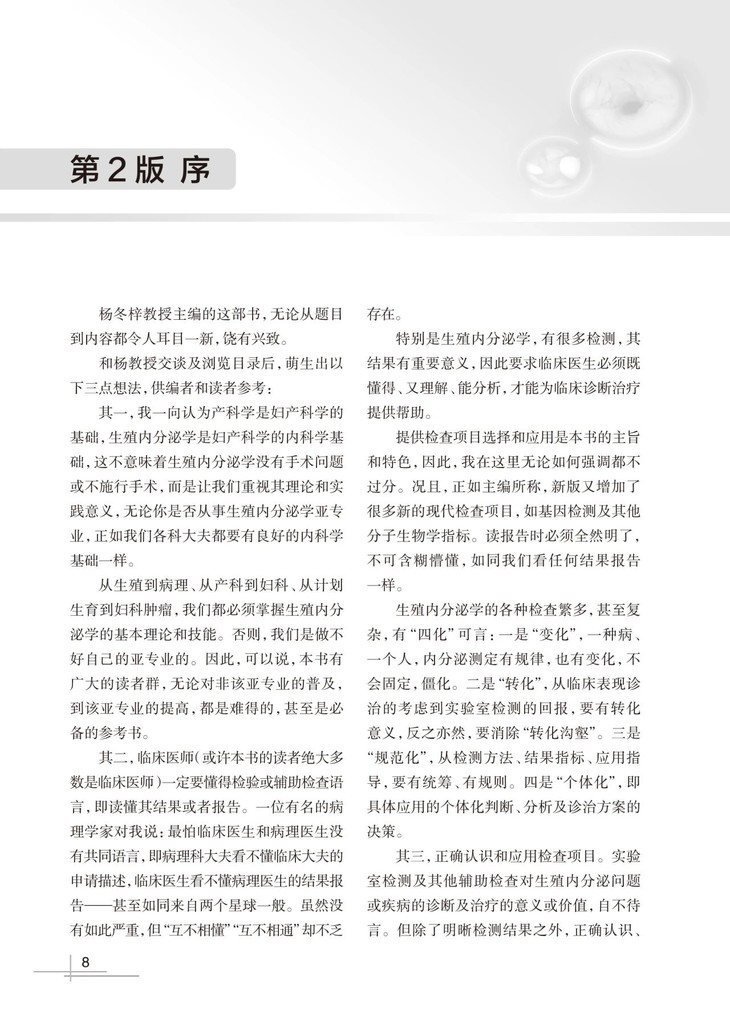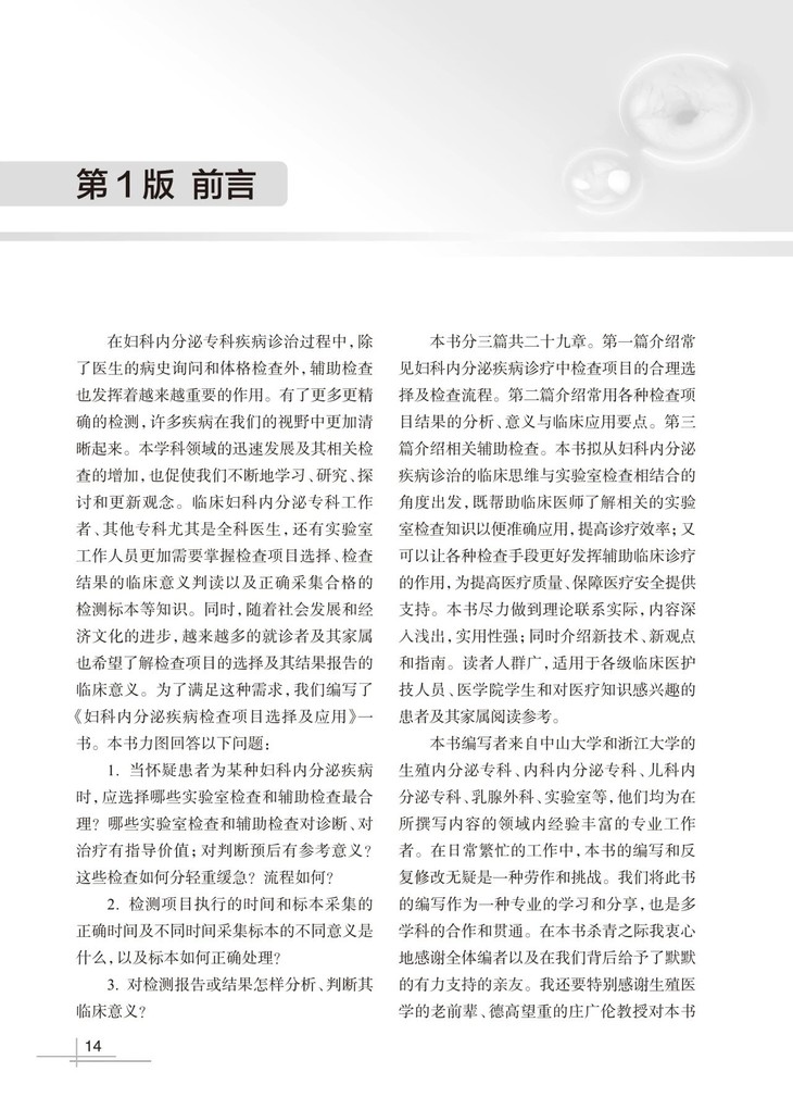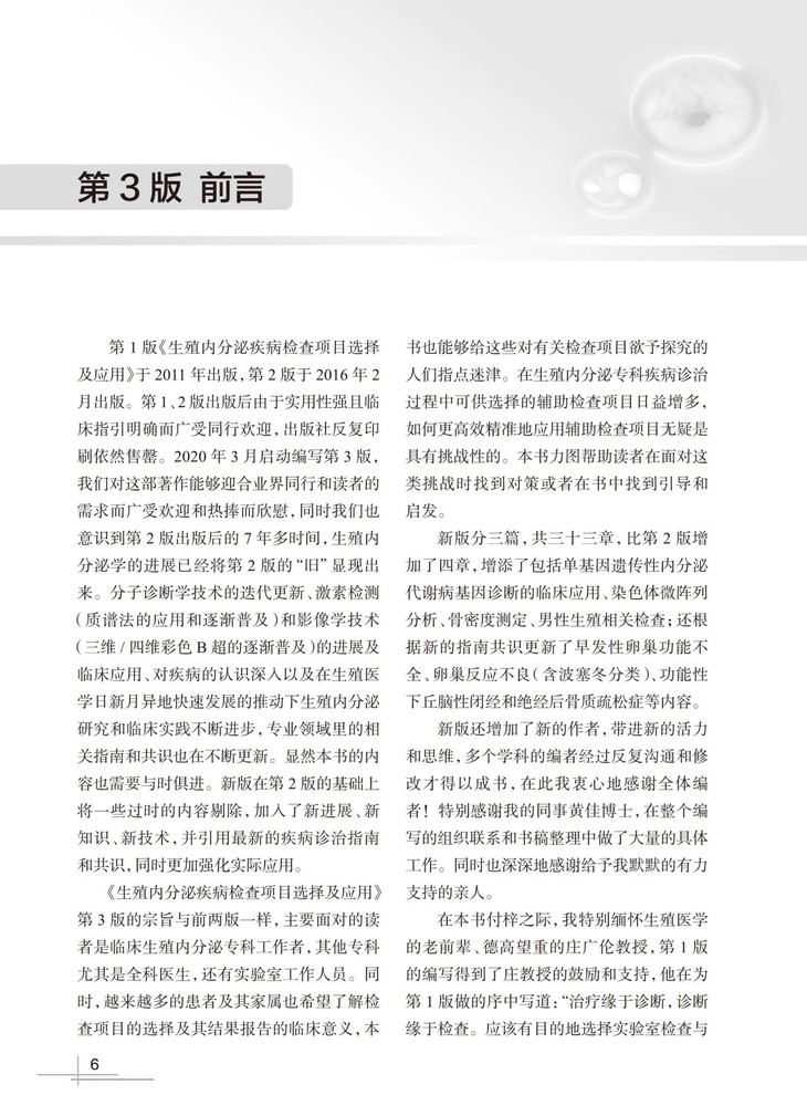 本书将在第2版基础上修订30%以上,将一些过时的内容剔除,加入了新进展、新知识、新技术,并引用最新的疾病诊治指南和共识,同时更加强化实际应用,覆盖面得到极大扩充,共三十三章,比第2版增加了四章,增添了包括单基因遗传性内分泌代谢病基因诊断的临床应用、染色体微阵列分析、骨密度测定、男性生殖相关检查;还根据新的指南共识更新了早发性卵巢功能减退、卵巢反应不良(含波塞冬分类)、功能性下丘脑性闭经和绝经后骨质疏松症等内容。理论联系实际,内容深入浅出,实用易用,实乃案头必备。