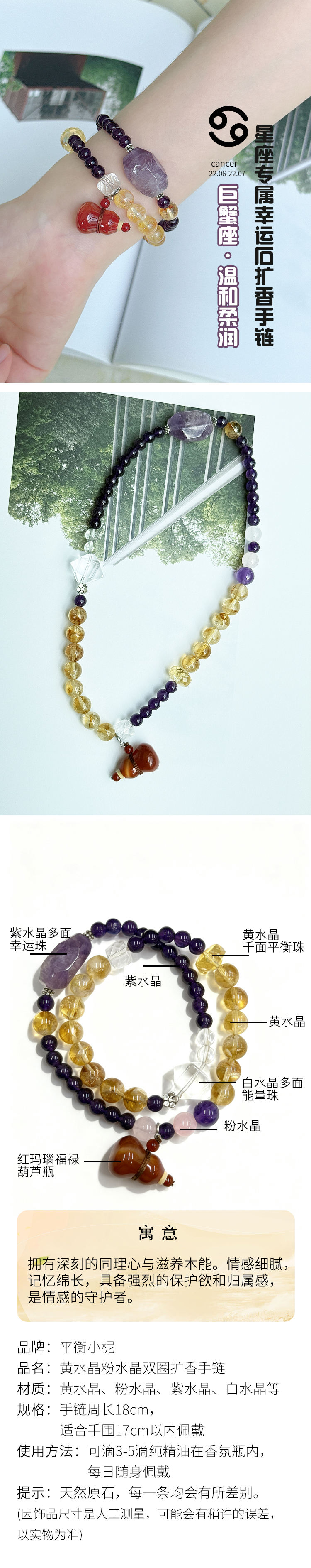 十二星座升级版专属幸运石扩香手链手串两圈巨蟹座
