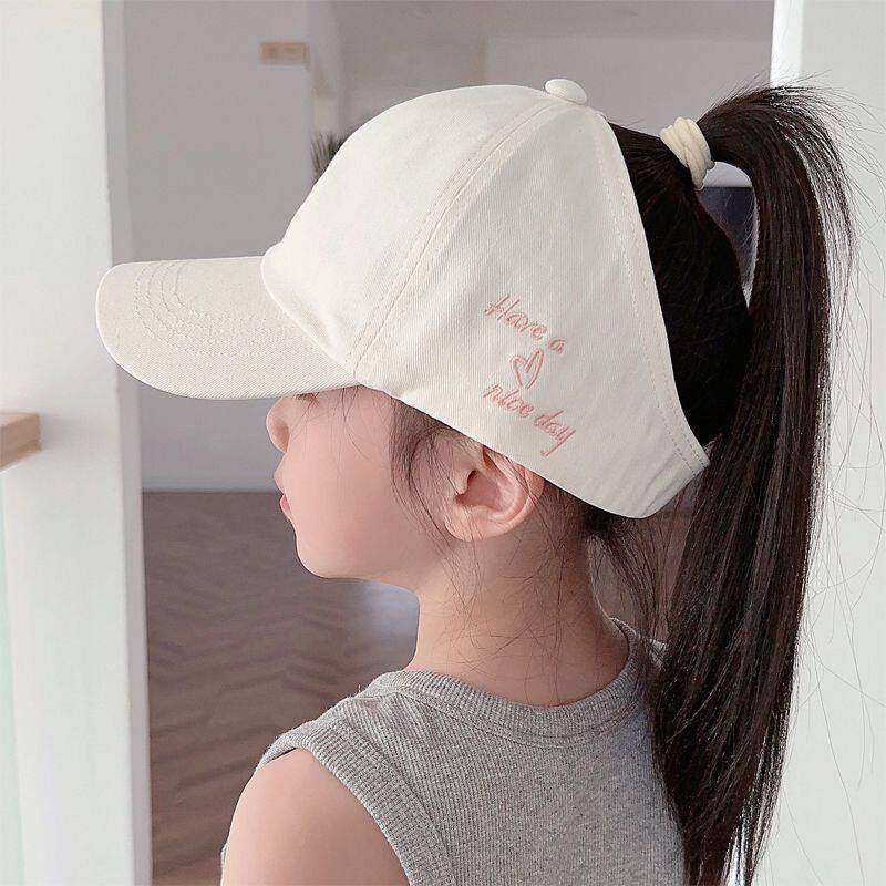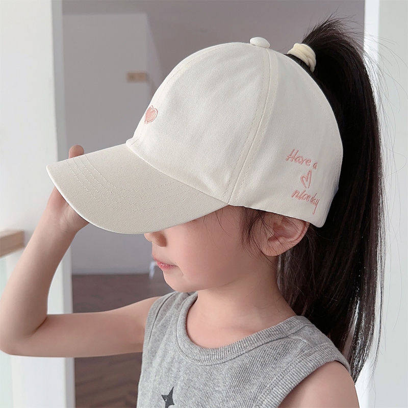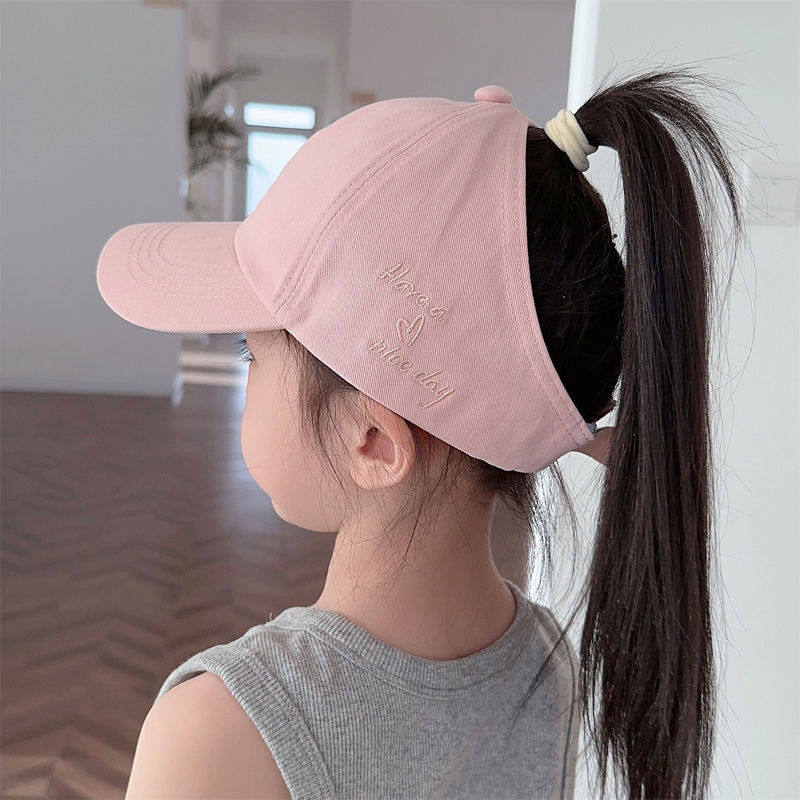 儿童帽子棒球女童可扎高马尾遮阳帽夏季防晒空顶鸭舌帽女宝太阳帽