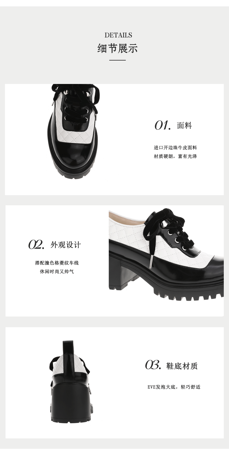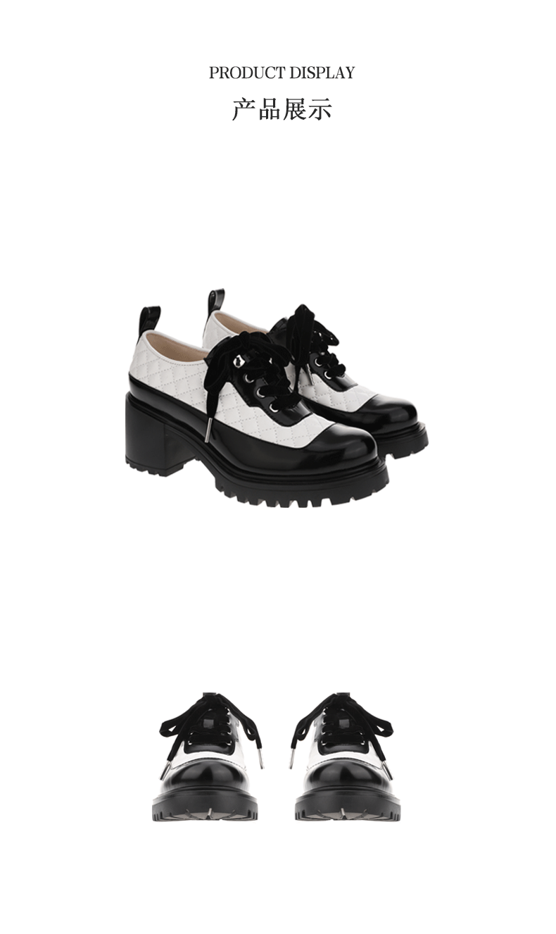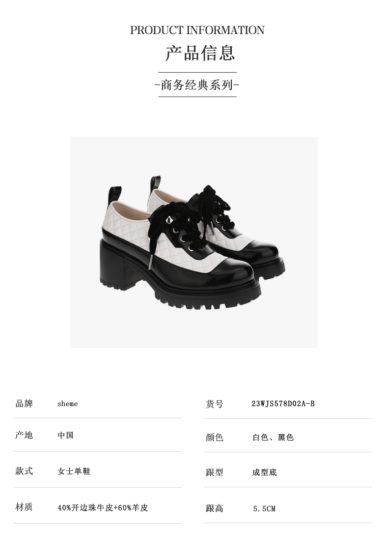 sheme进口牛皮搭配撞色格菱纹车线时尚帅气女士系带乐福鞋可定制