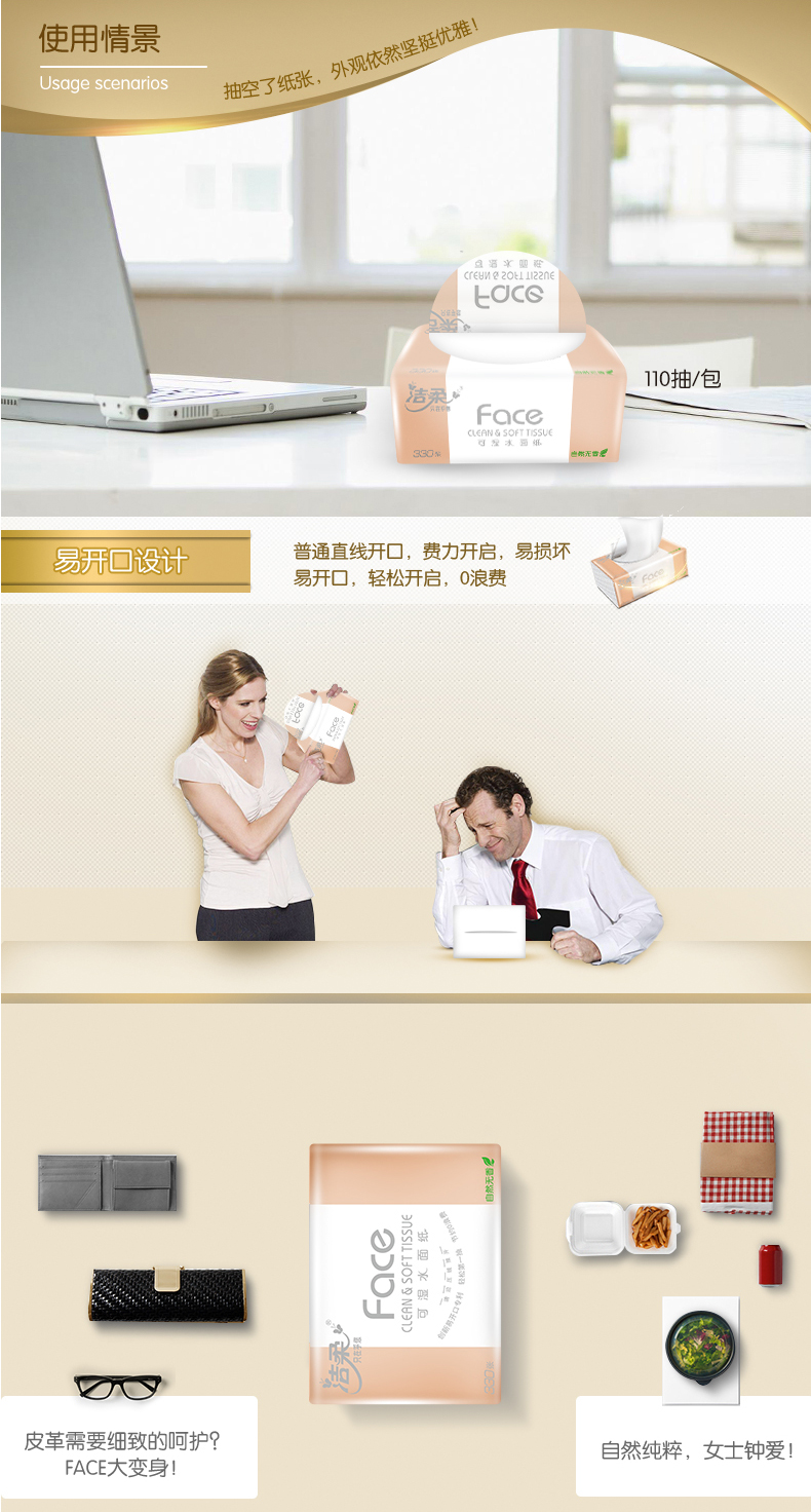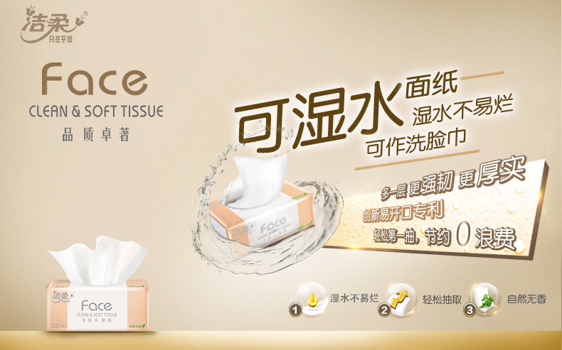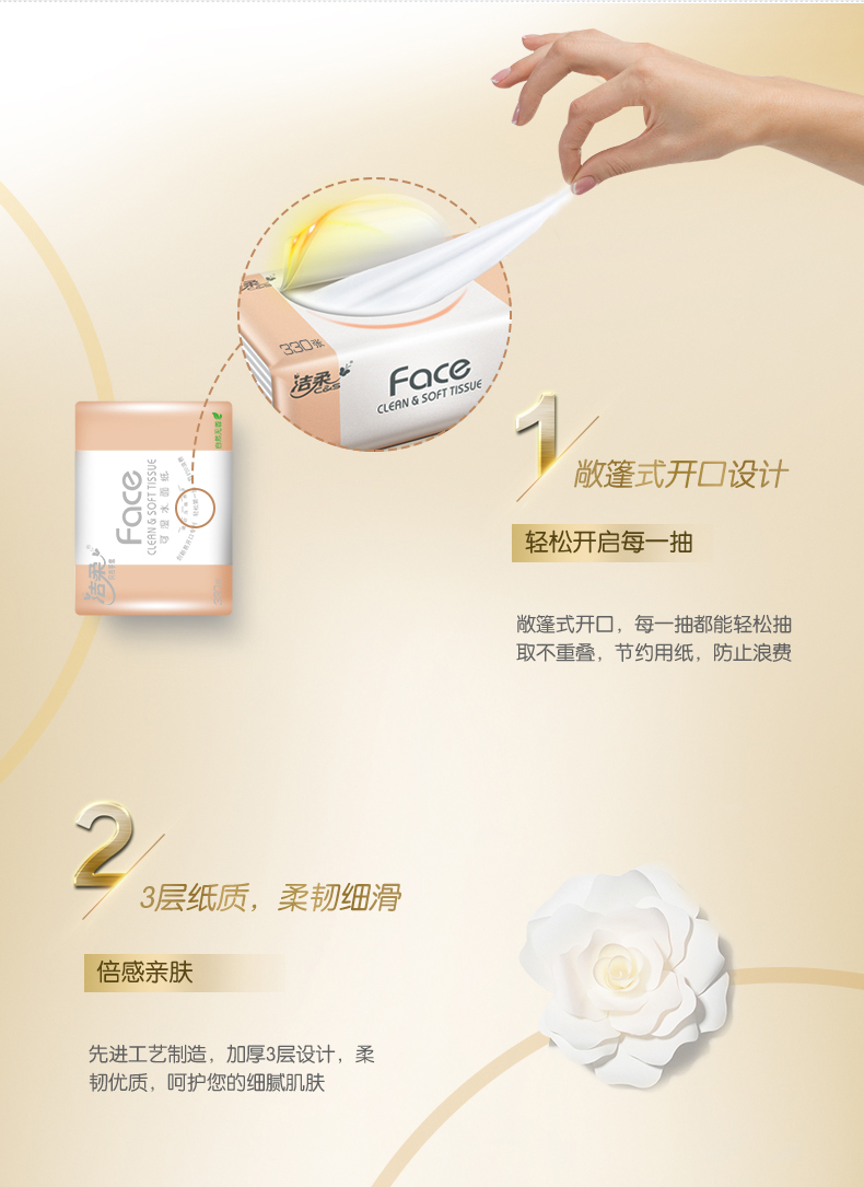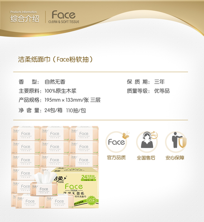 洁柔抽纸3层110抽Face自然无香抽取式面巾纸巾正品家用