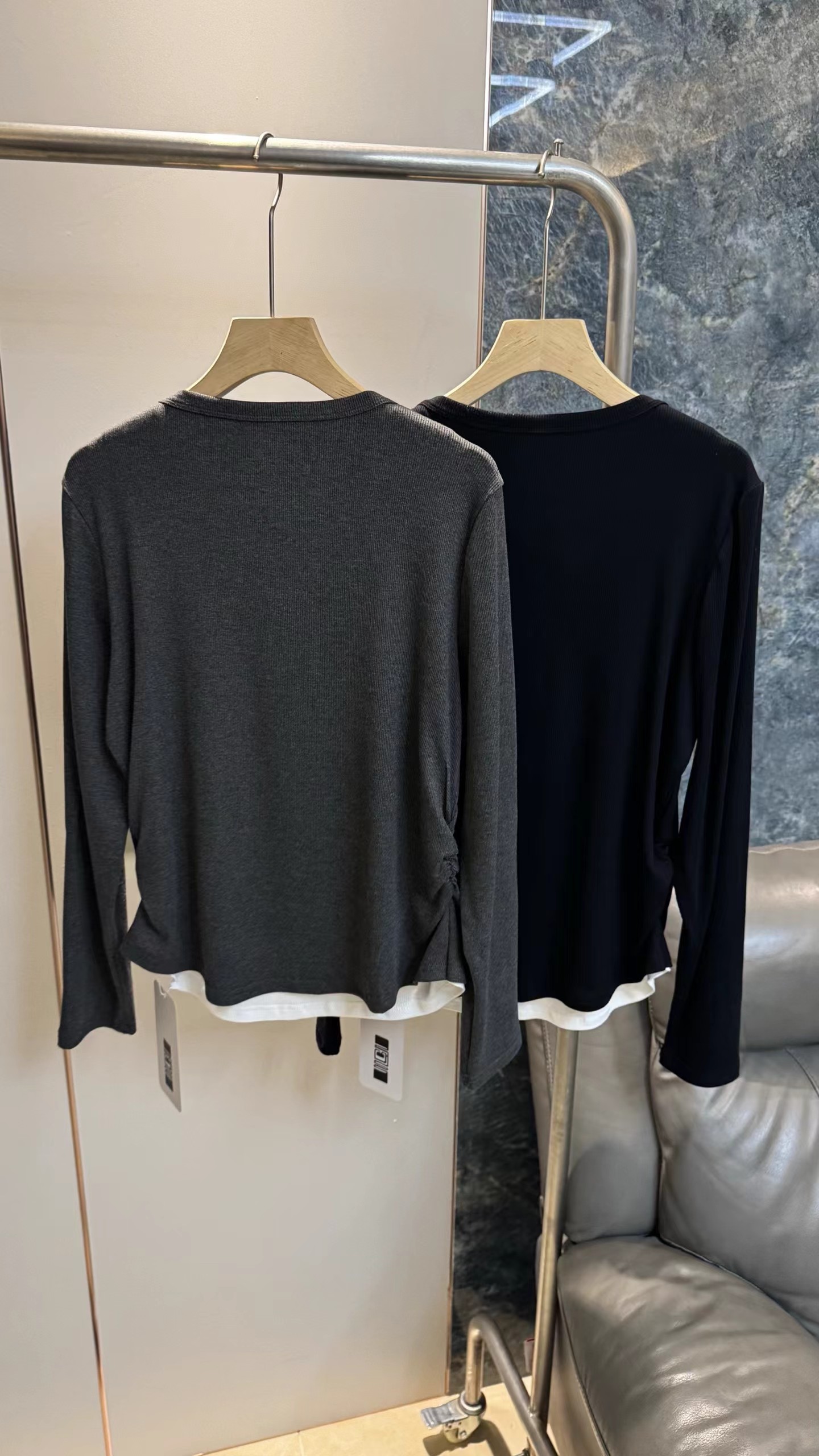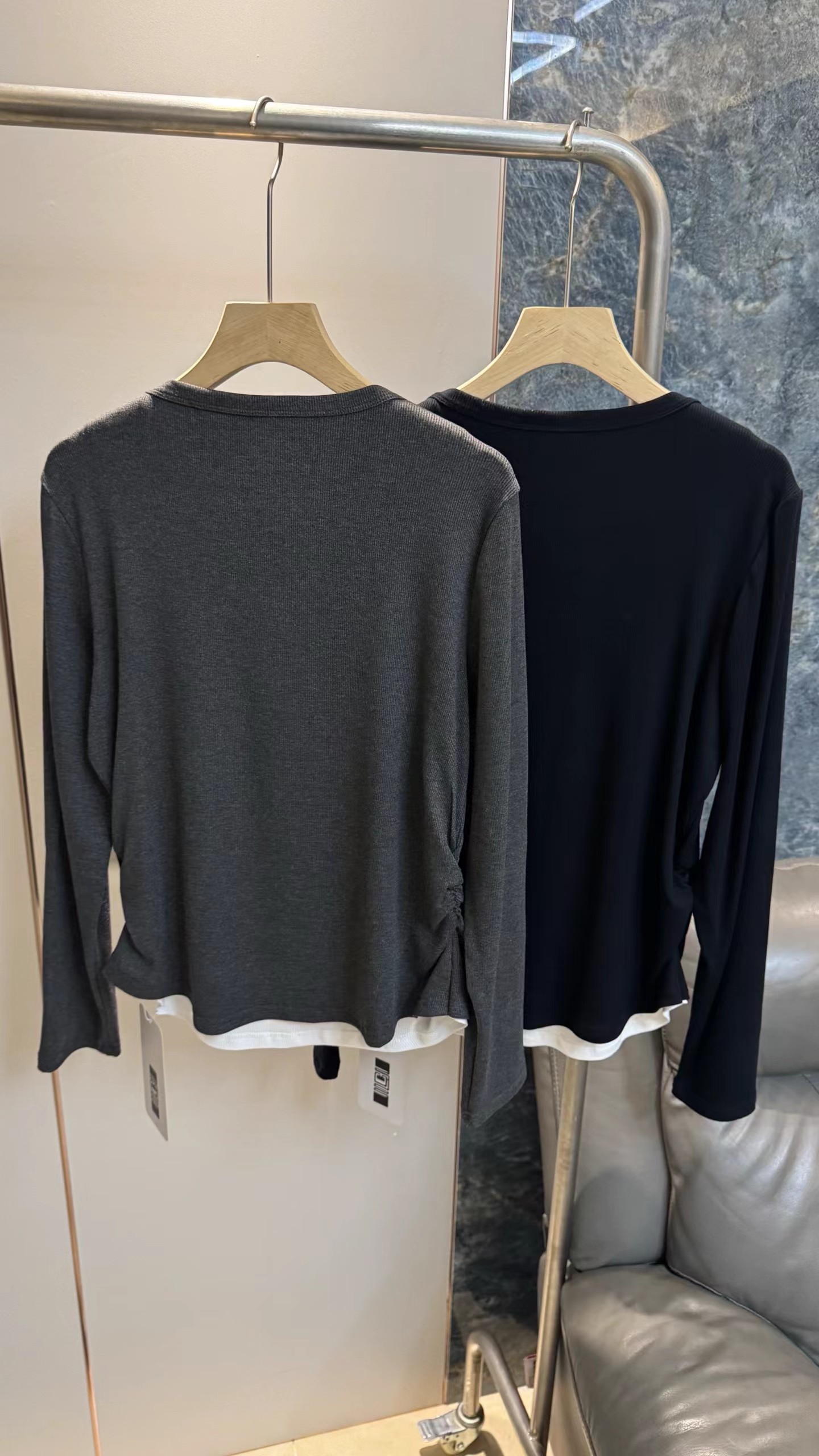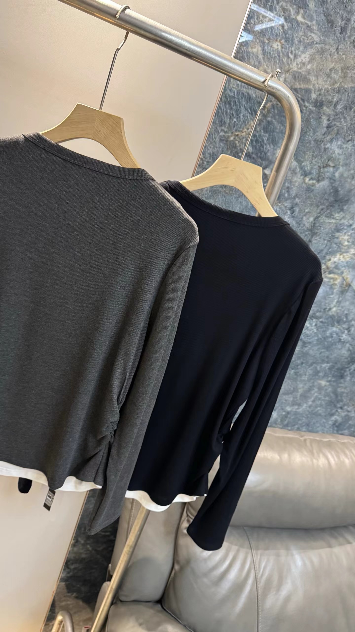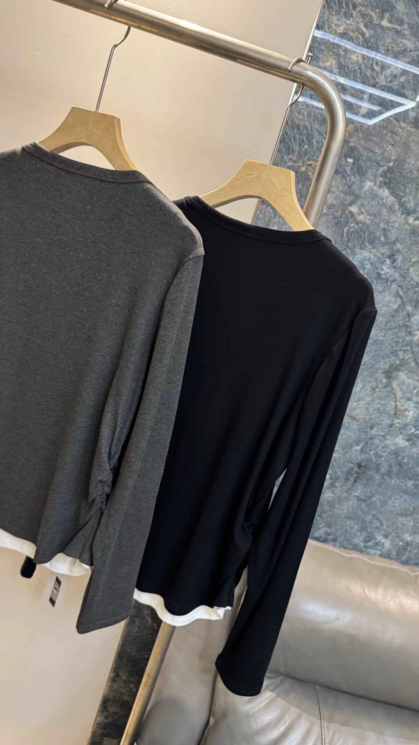 一包两件装,2026年春秋款上新!纯色简约版型,撞色假两件设计,自带层次感,无需额外叠穿就能打造ji致穿搭;小V领开叉巧妙修饰颈部线条,弱化脖颈短粗感,对圆脸、短颈人群友好。弹性优异,紧密贴合身形却不紧绷,既能勾勒曲线,又能保证活动自由度;吸湿透气,春秋单穿、冬季内搭都适配jin典耐脏,可搭配白色下装打造清爽感,也可叠穿风衣、牛仔外套打造酷飒风,适配通勤、约会、休闲等多场景。日常通勤 搭配白色高腰阔腿裤+乐福鞋+金属链条包 干练知性,职场气质凸显 。约会出街 搭配牛仔短裙+马丁靴+棕色腋下包 甜酷兼具,氛围感十足 ,休闲居家 搭配同色系运动裤+拖鞋 舒适松弛,随性不随意