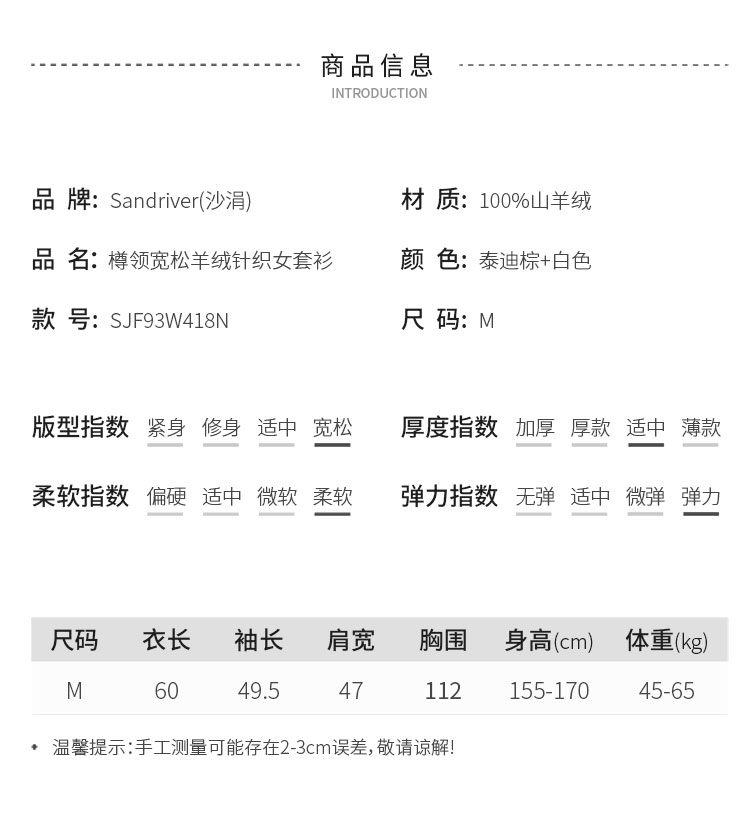 樽领宽松羊绒针织女套衫 SJF93W418N