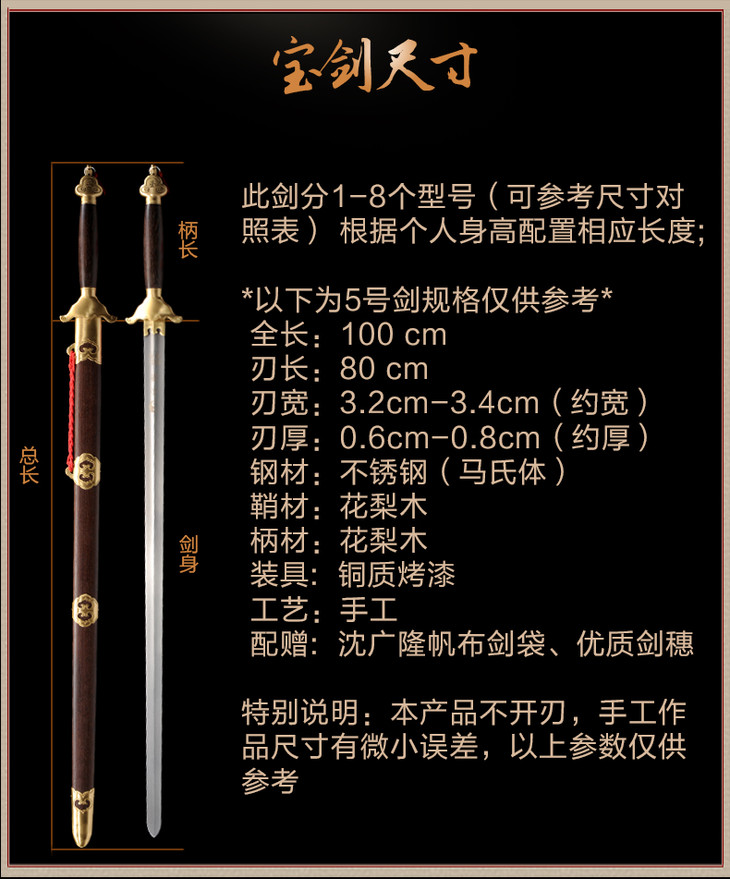 扬武太极剑 不锈钢太极剑 标准武术太极剑 龙泉沈广隆宝剑 未开刃 工艺品