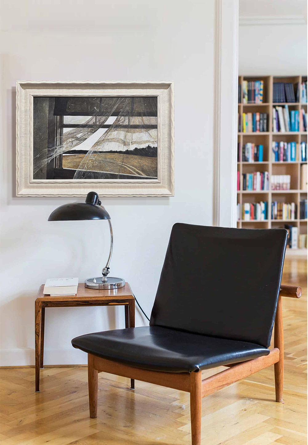 安德鲁怀斯跟丢勒一样,是我们的心头偏好。所以两三年前第一次推出挂画时候,我们就推出过安德鲁怀斯的作品。只是当时的装裱思路不如现在成熟,画框也没有现在独家,多少有些遗憾。这次这两幅,尤其是这一幅,是安德鲁怀斯的代表作,很有名,也很受推崇。