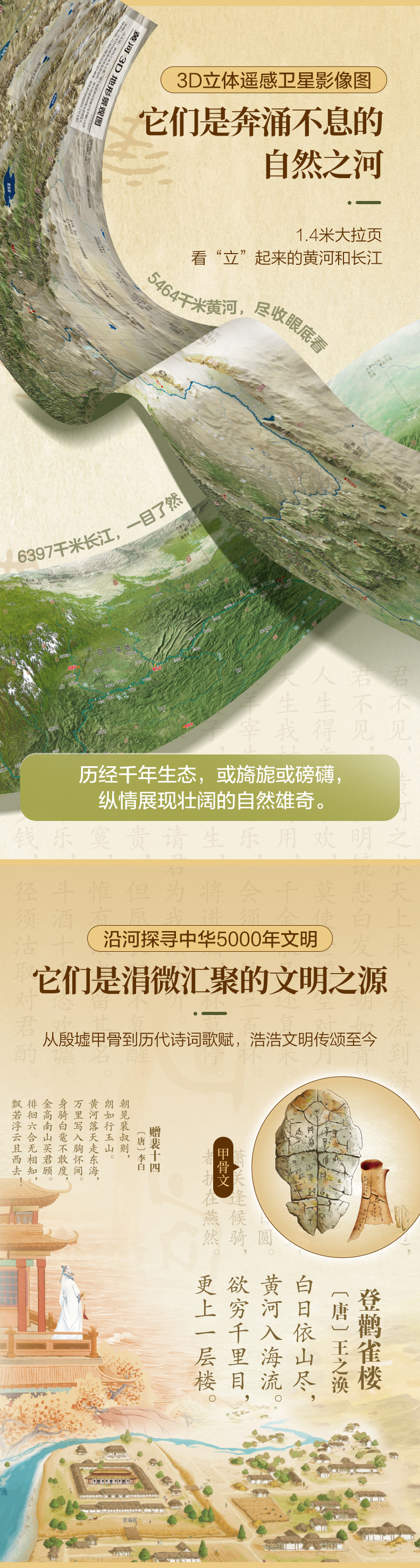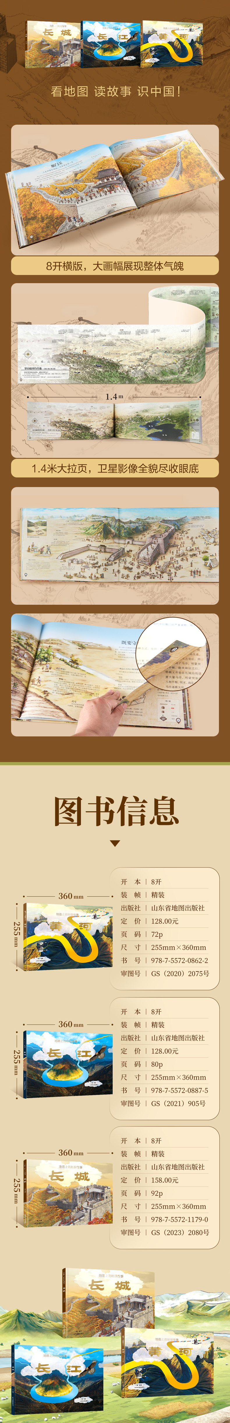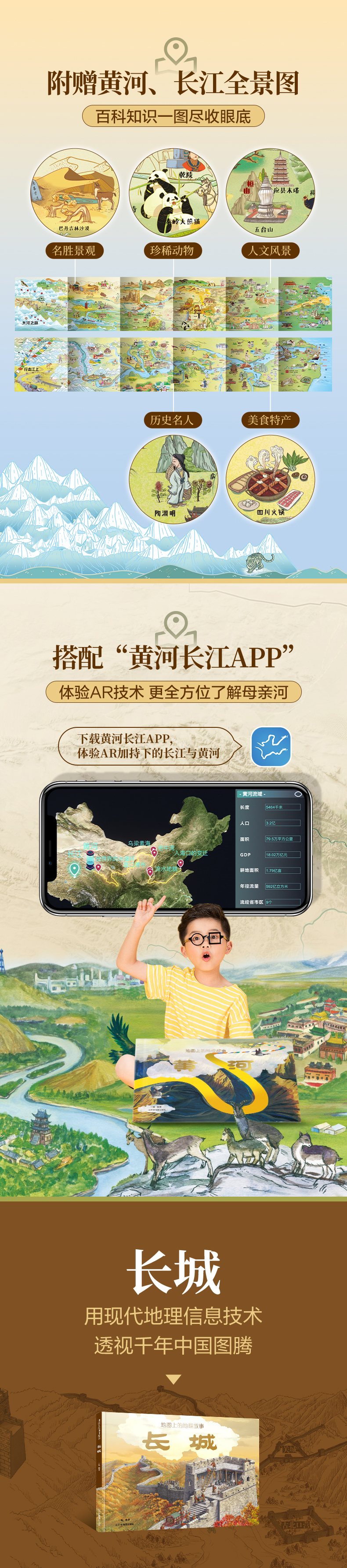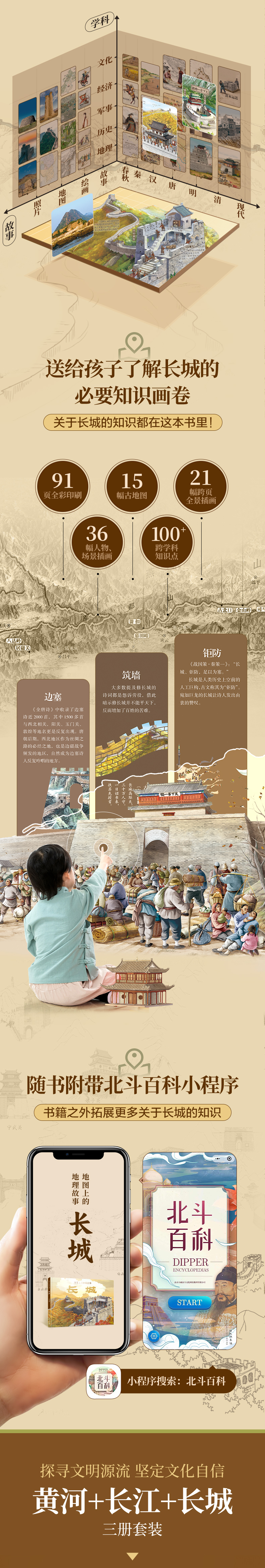 《地图上的地理故事·黄河+长江+长城》(精装3册)