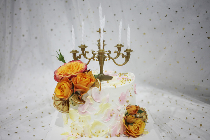 女士款 复古烛台 橙色系鲜花