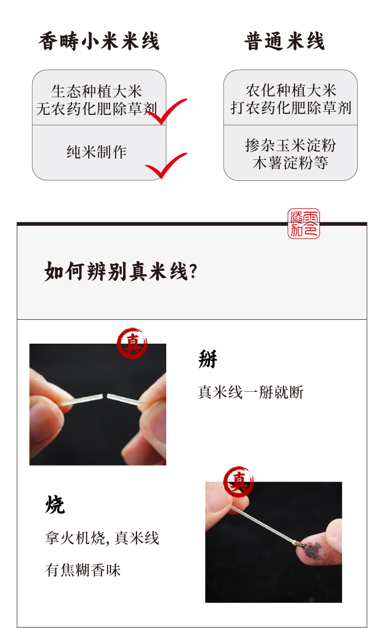 温馨提示:米线上的黑点源于大米糊化后的少量锅巴和大米胚芽,属于于正常现象,不影响食用。