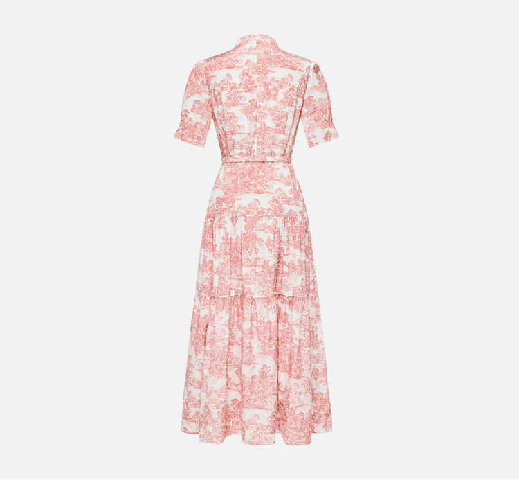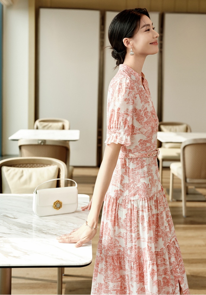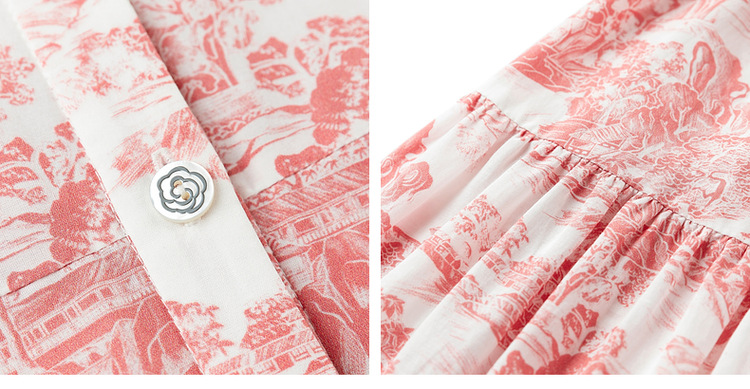 图案灵感源自故宫博物院清代紫檀框黑漆嵌玉沧浪亭图挂屏,亭立山岭,古雅壮丽,展现古典与现代的巧妙融合,时尚大气又修饰身形。