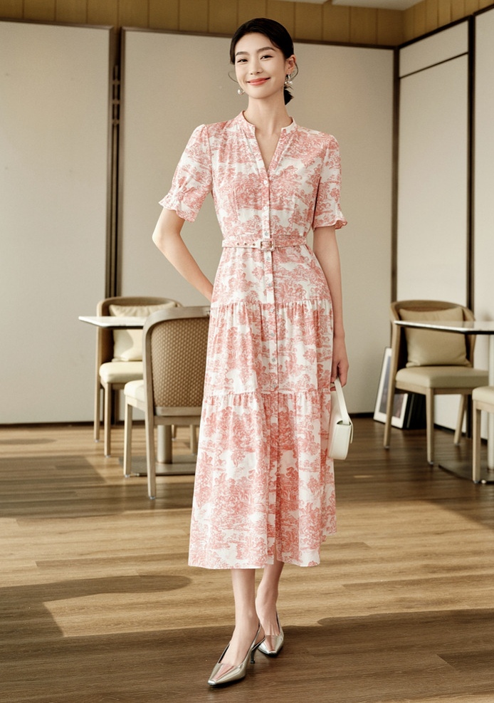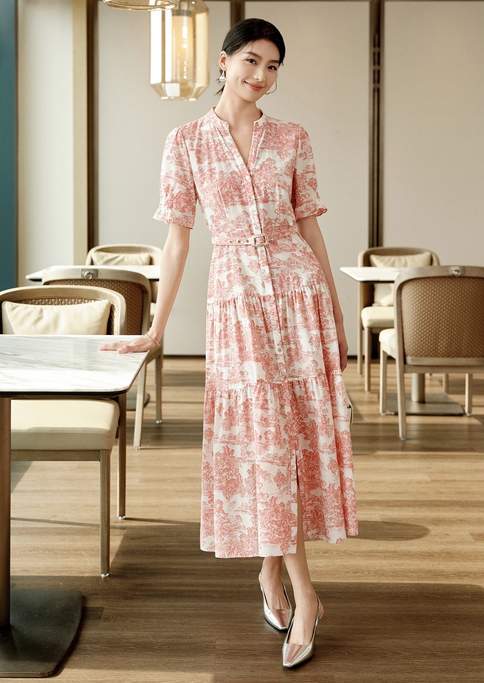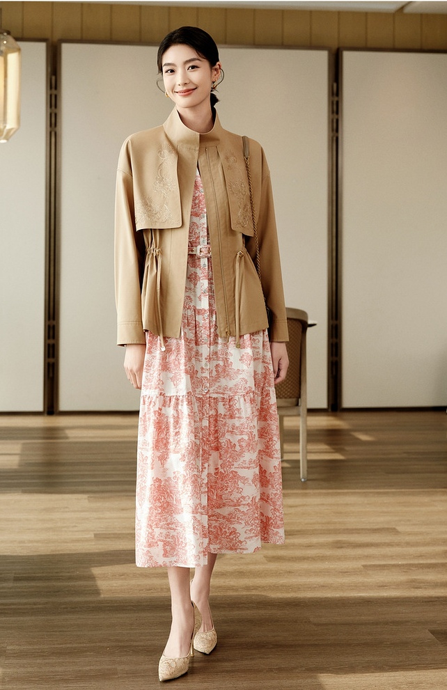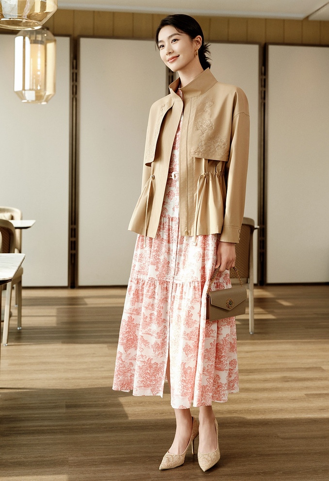 分层下摆飘逸大气,基因纹贝壳扣点缀,提升质感。