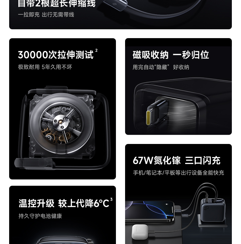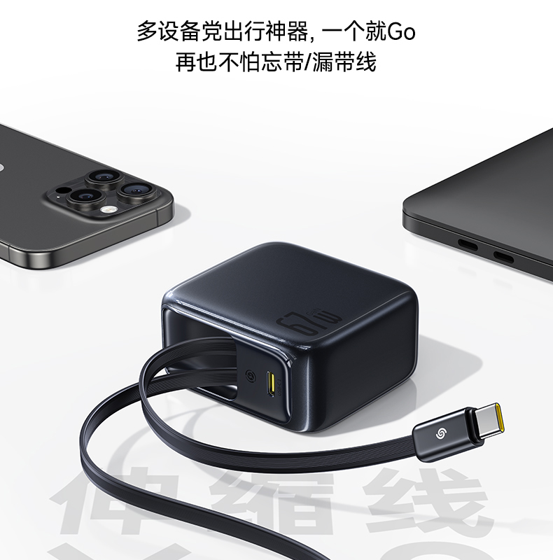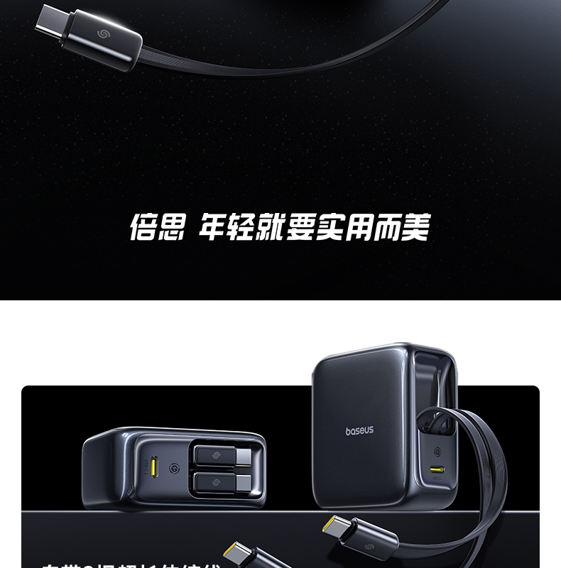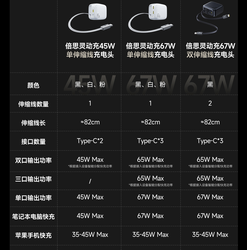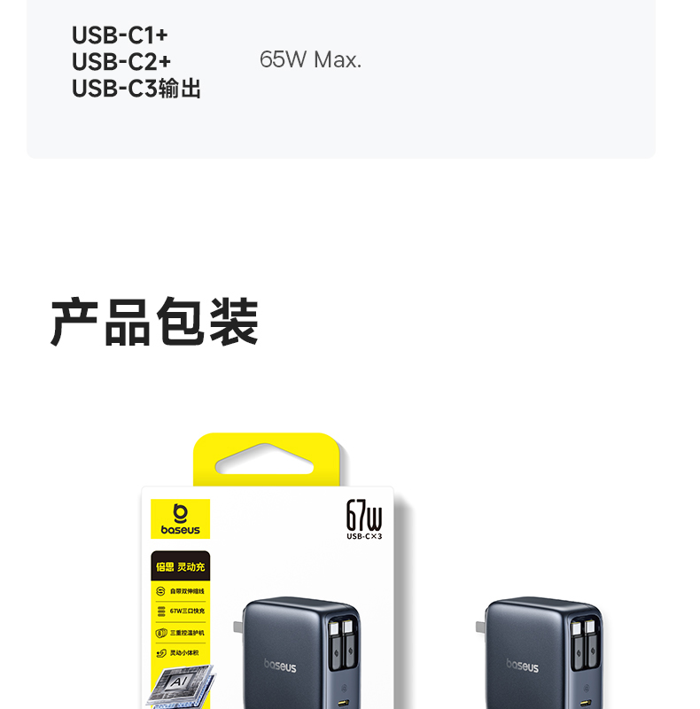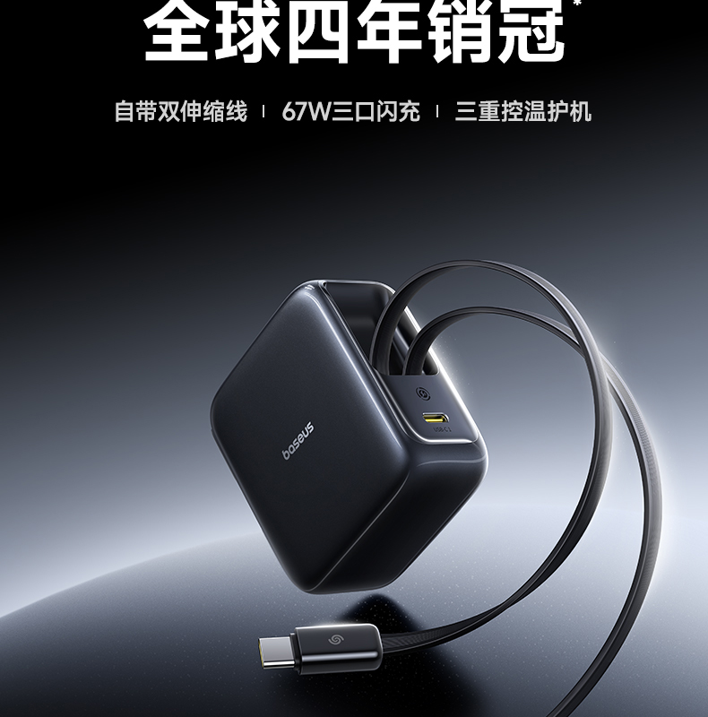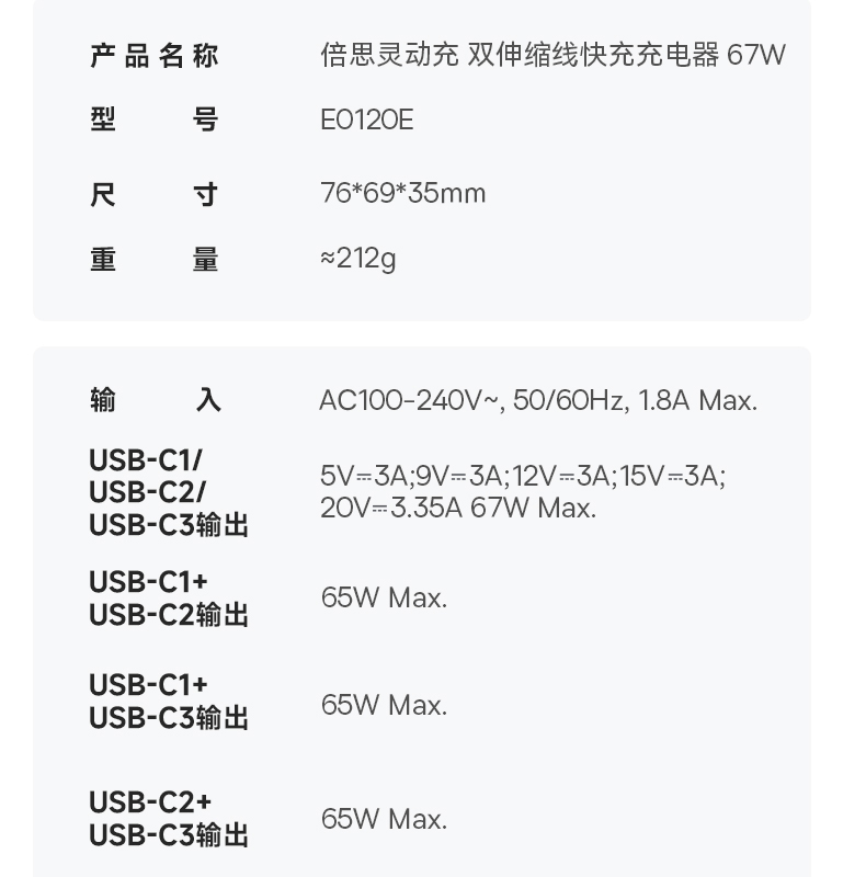 倍思 EnerCore灵动 CJ21 双伸缩线快充充电器 3C 67W