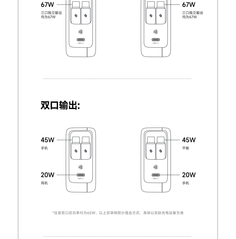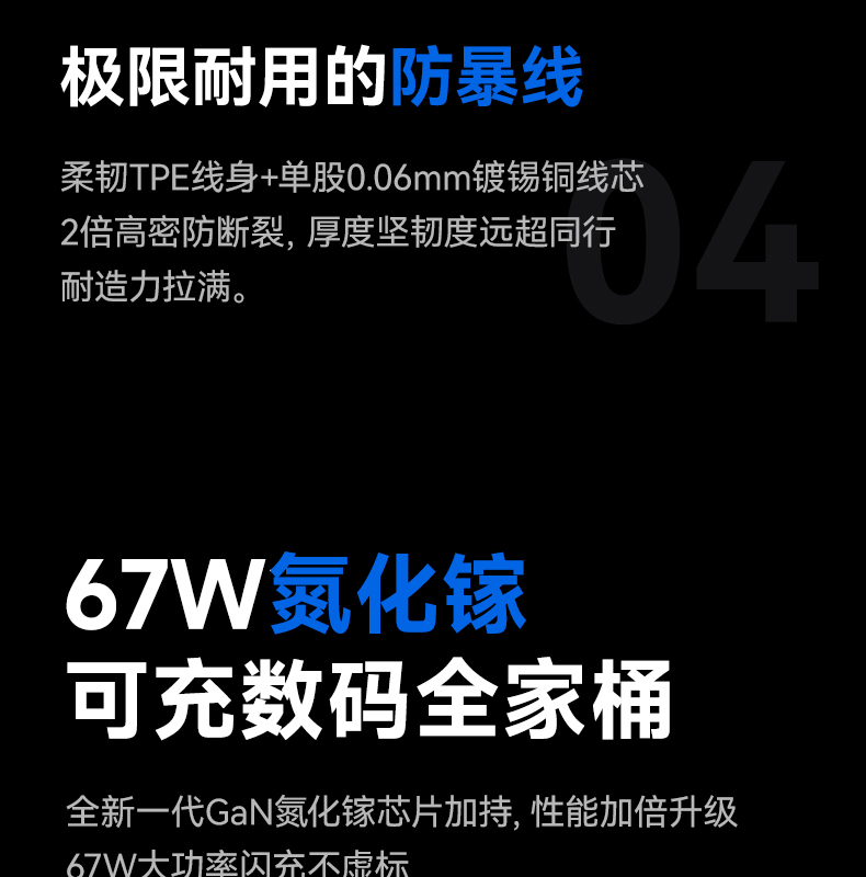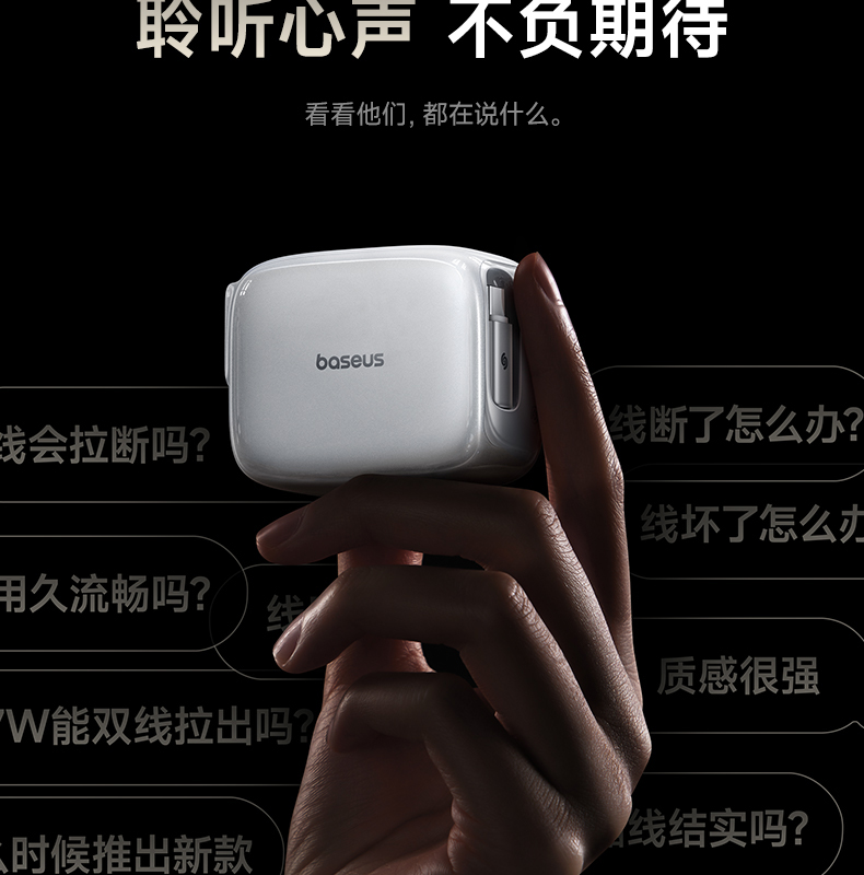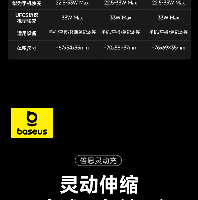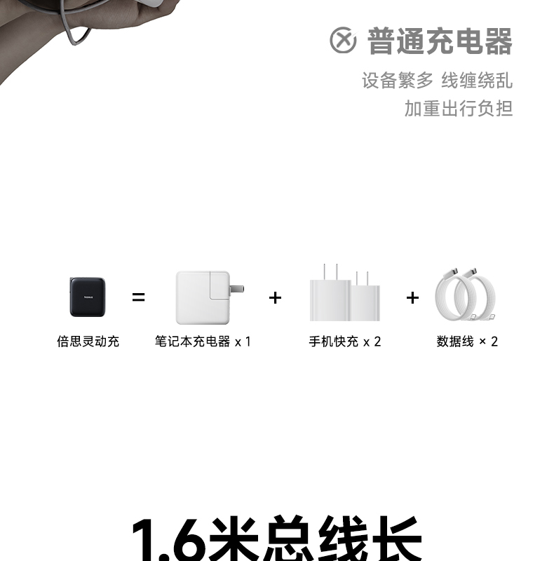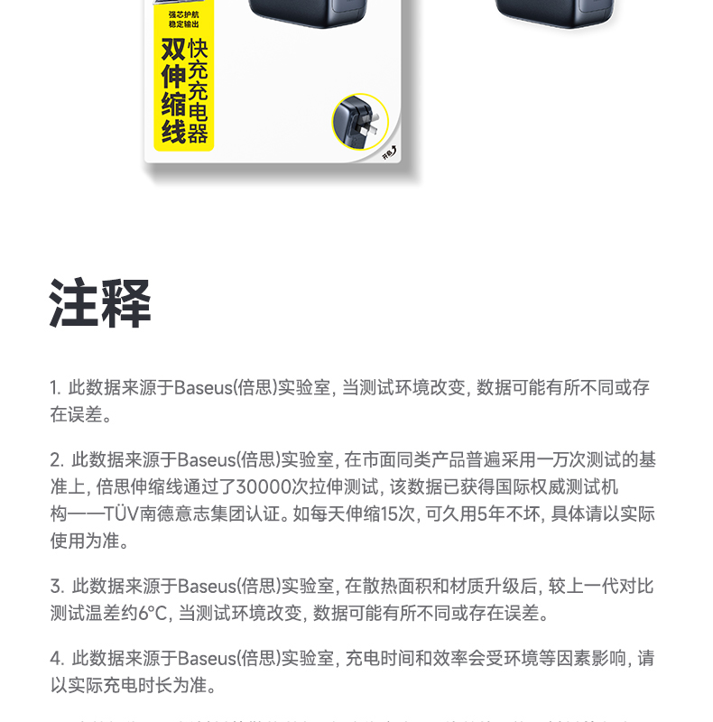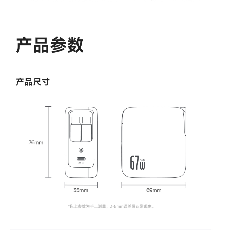 倍思 EnerCore灵动 CJ21 双伸缩线快充充电器 3C 67W