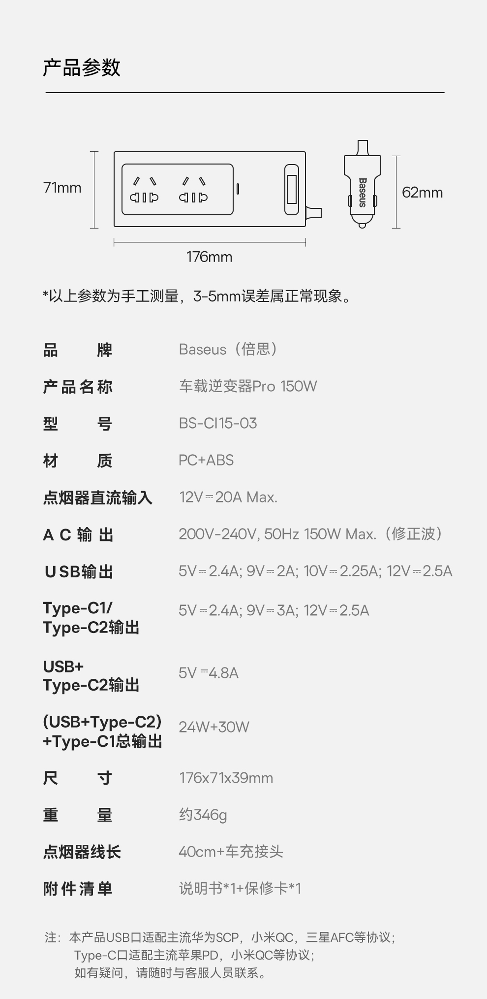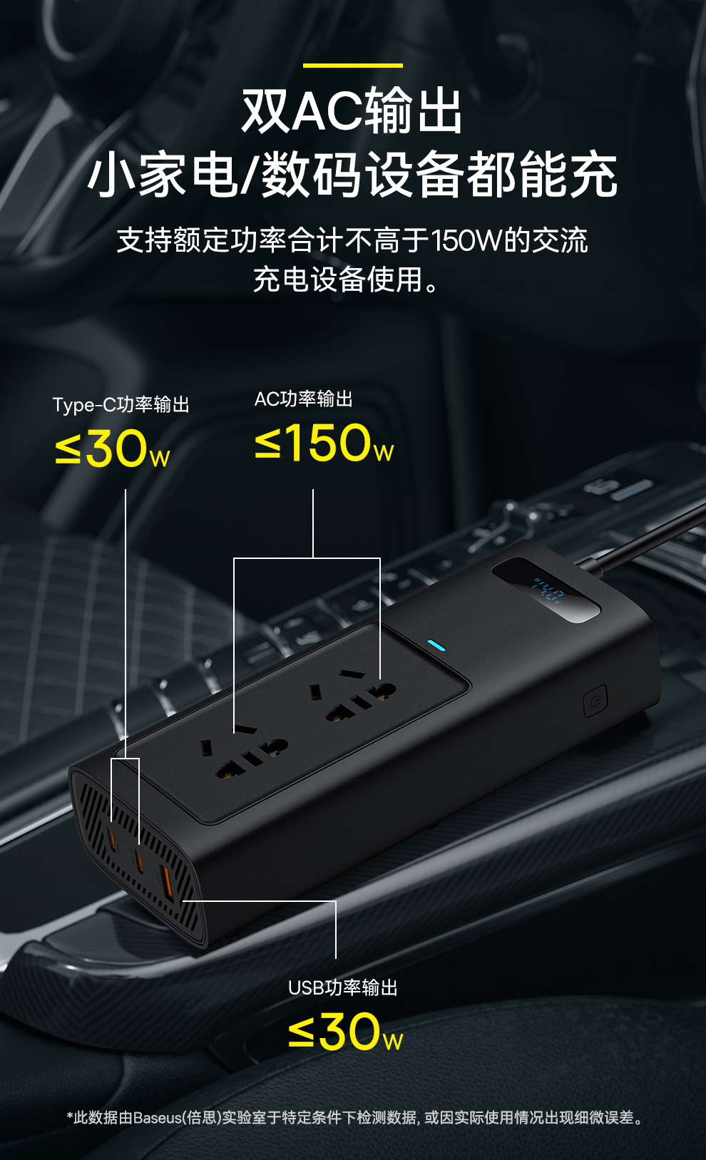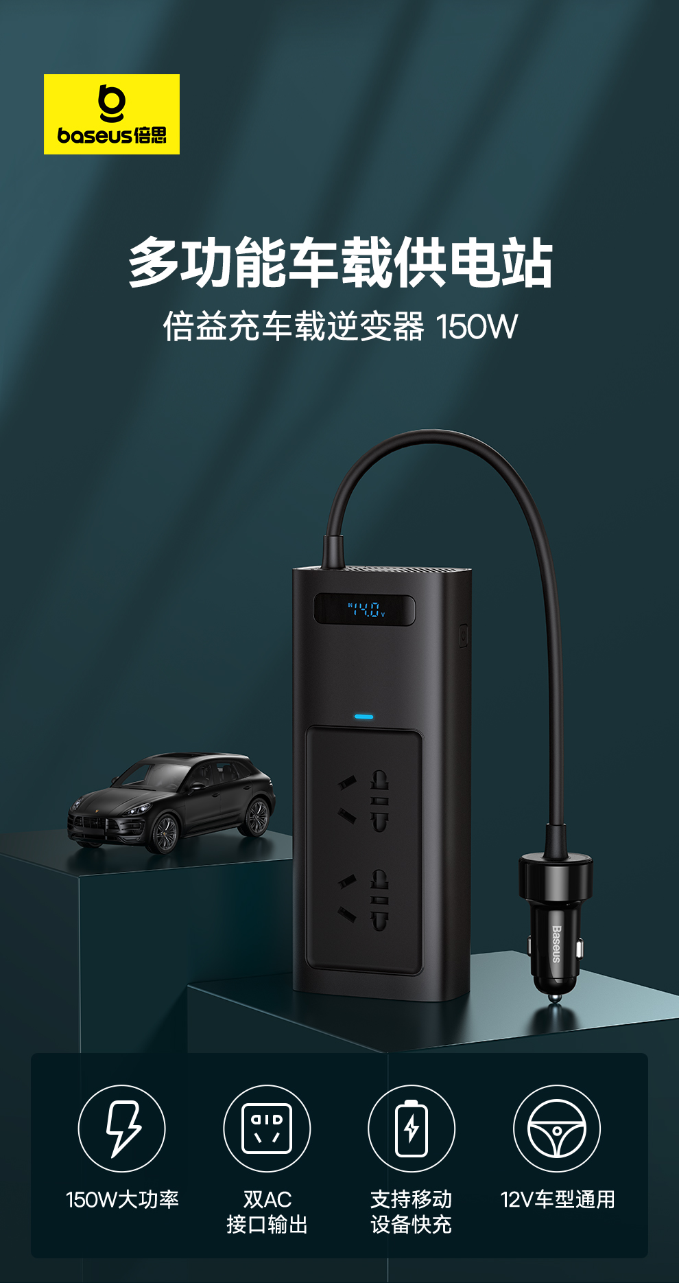 倍益充车载逆变器Pro版 150W(220V 中欧规)