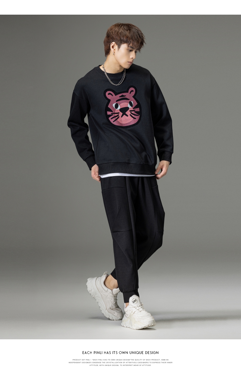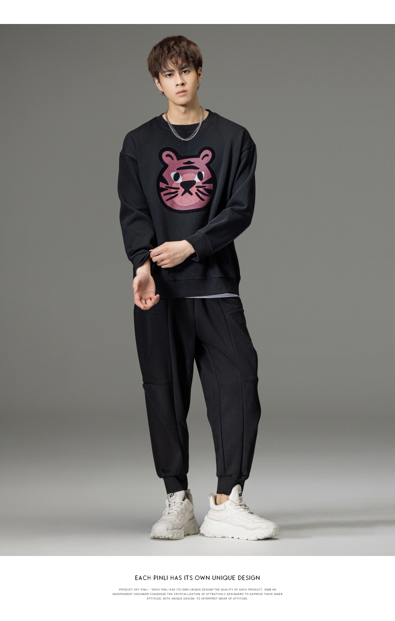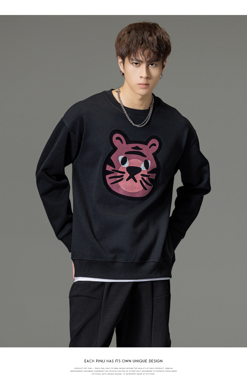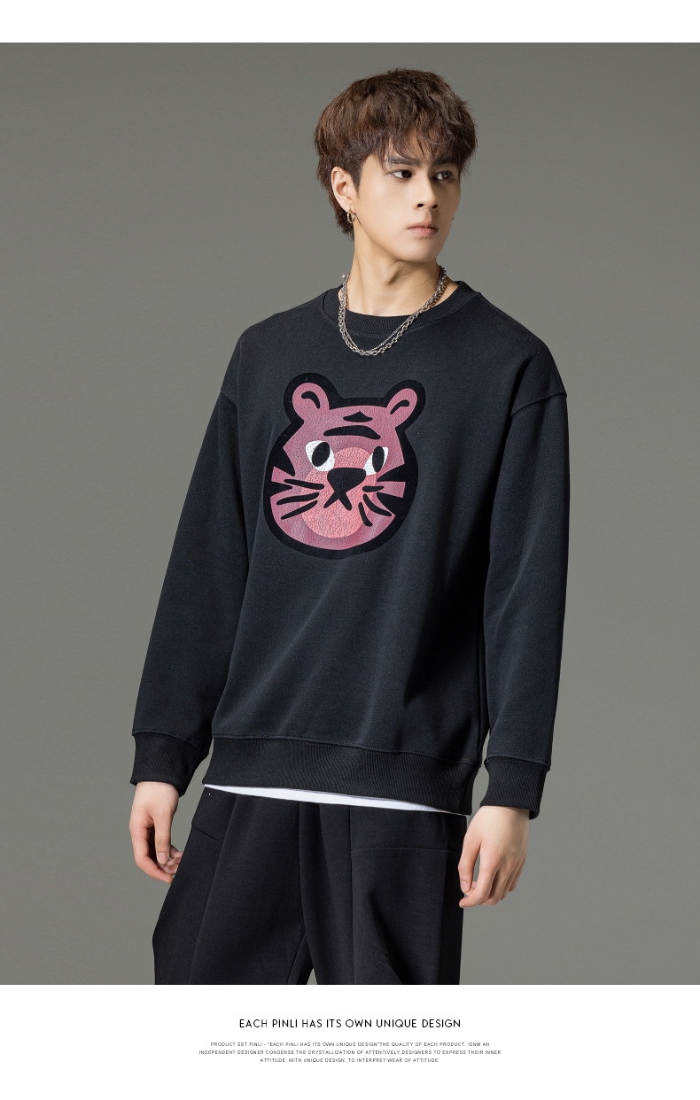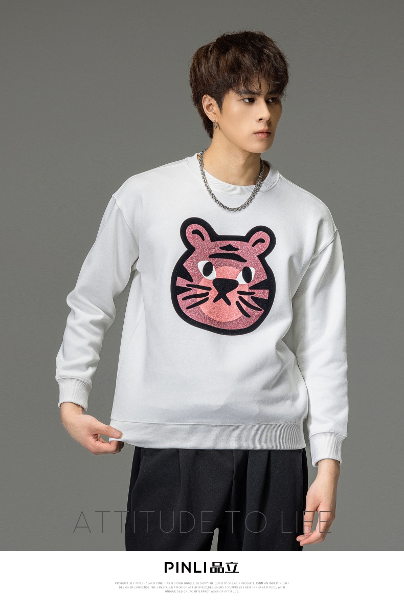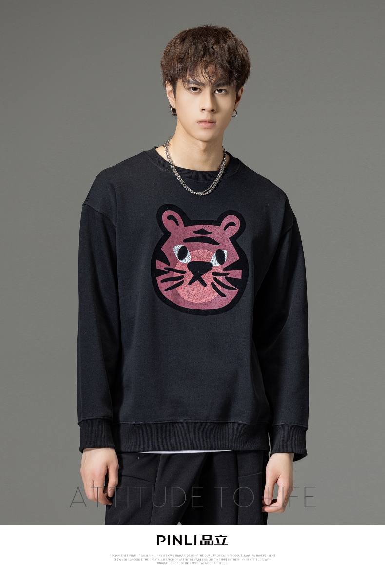 PINLI品立2023秋季新品老虎头印花卫衣潮牌休闲男上衣BG233109005