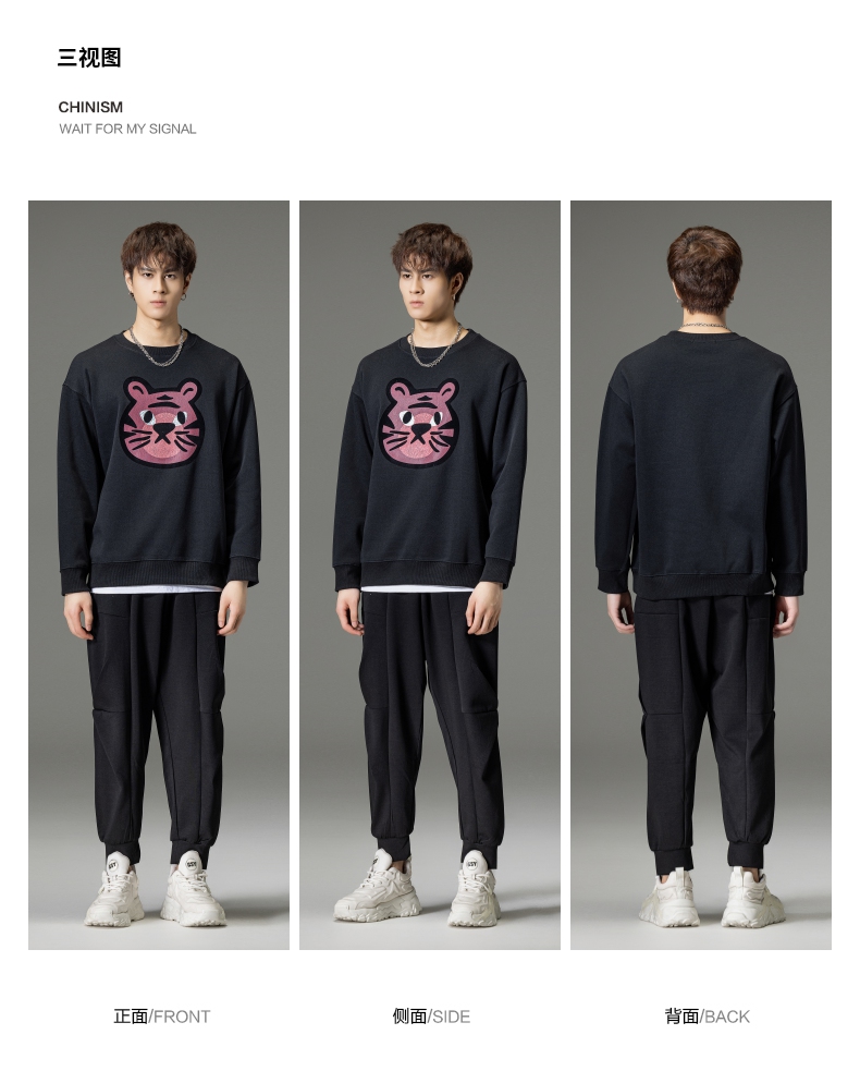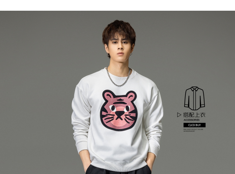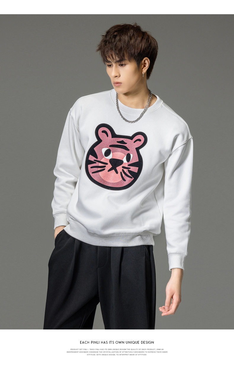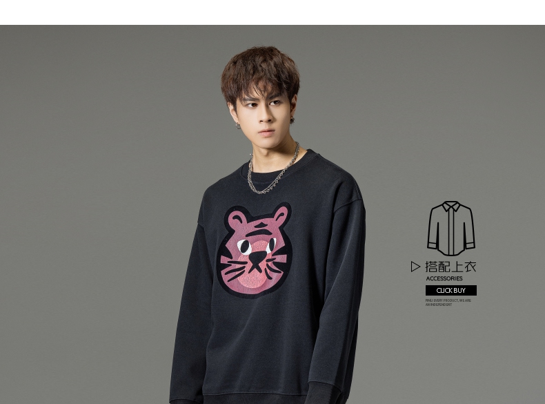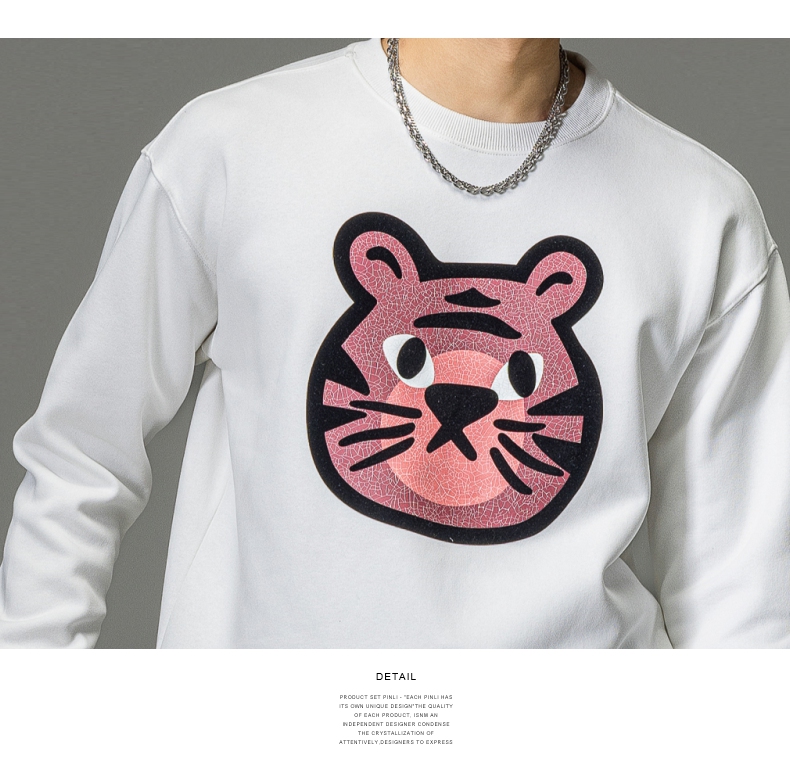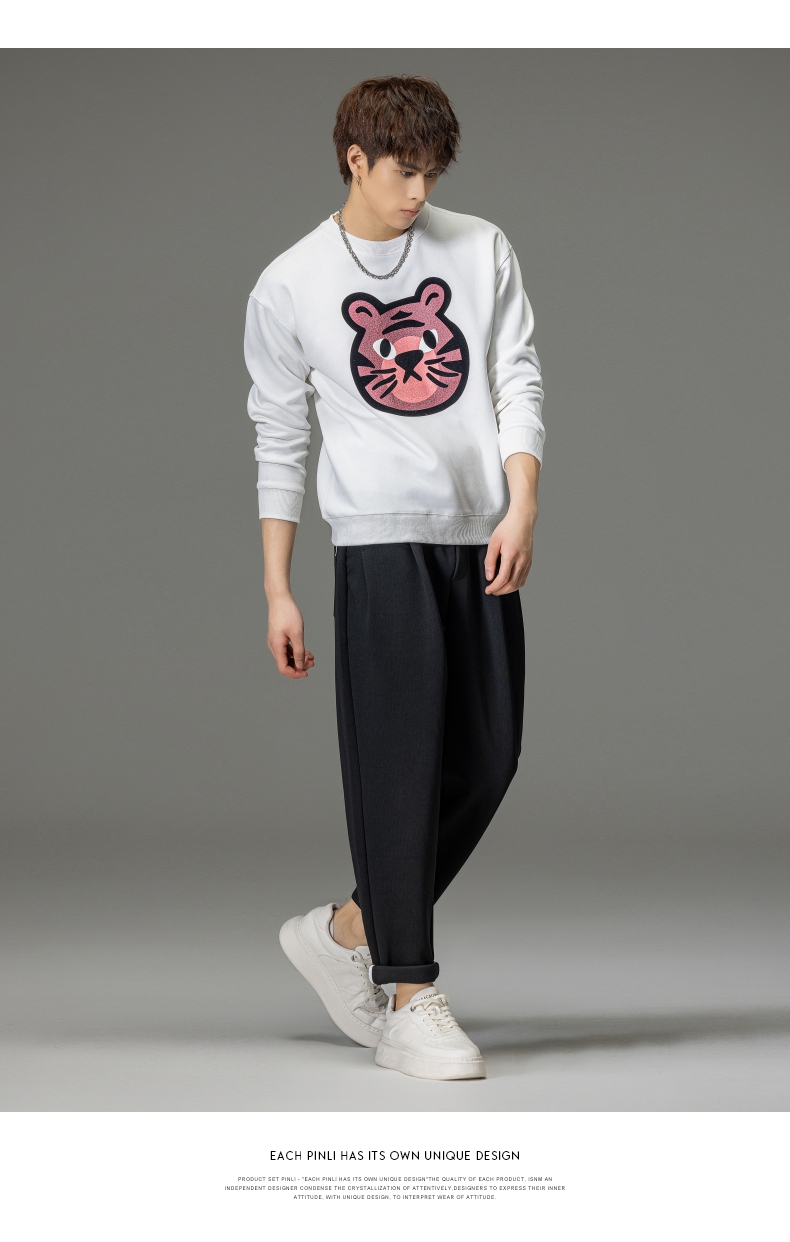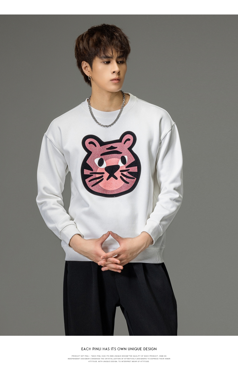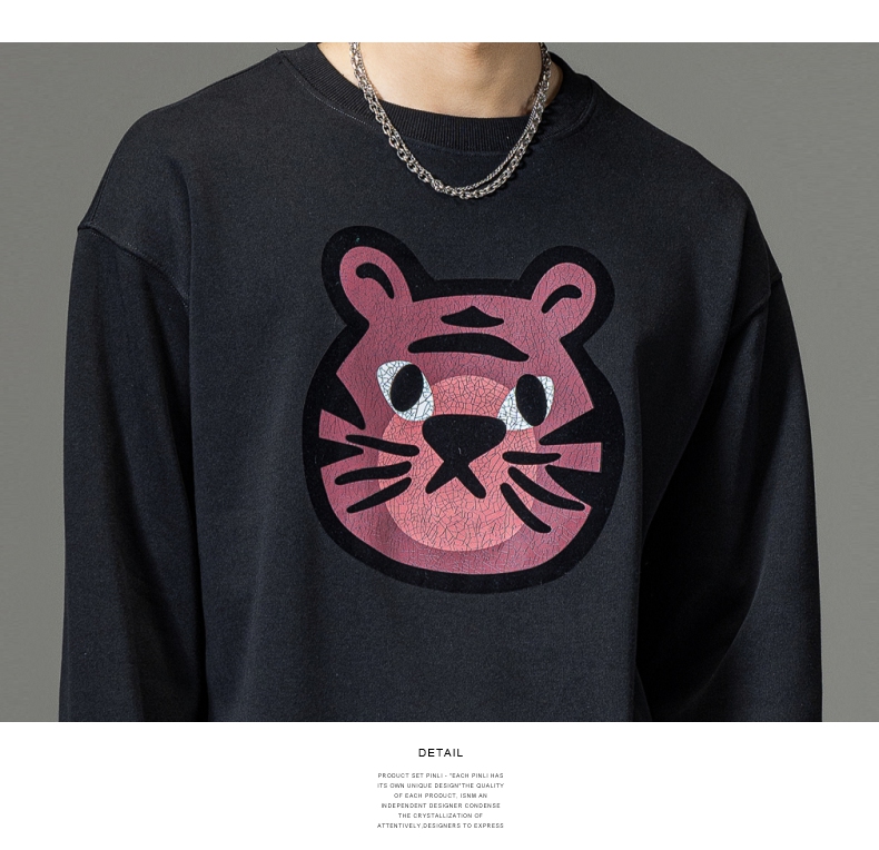 PINLI品立2023秋季新品老虎头印花卫衣潮牌休闲男上衣BG233109005