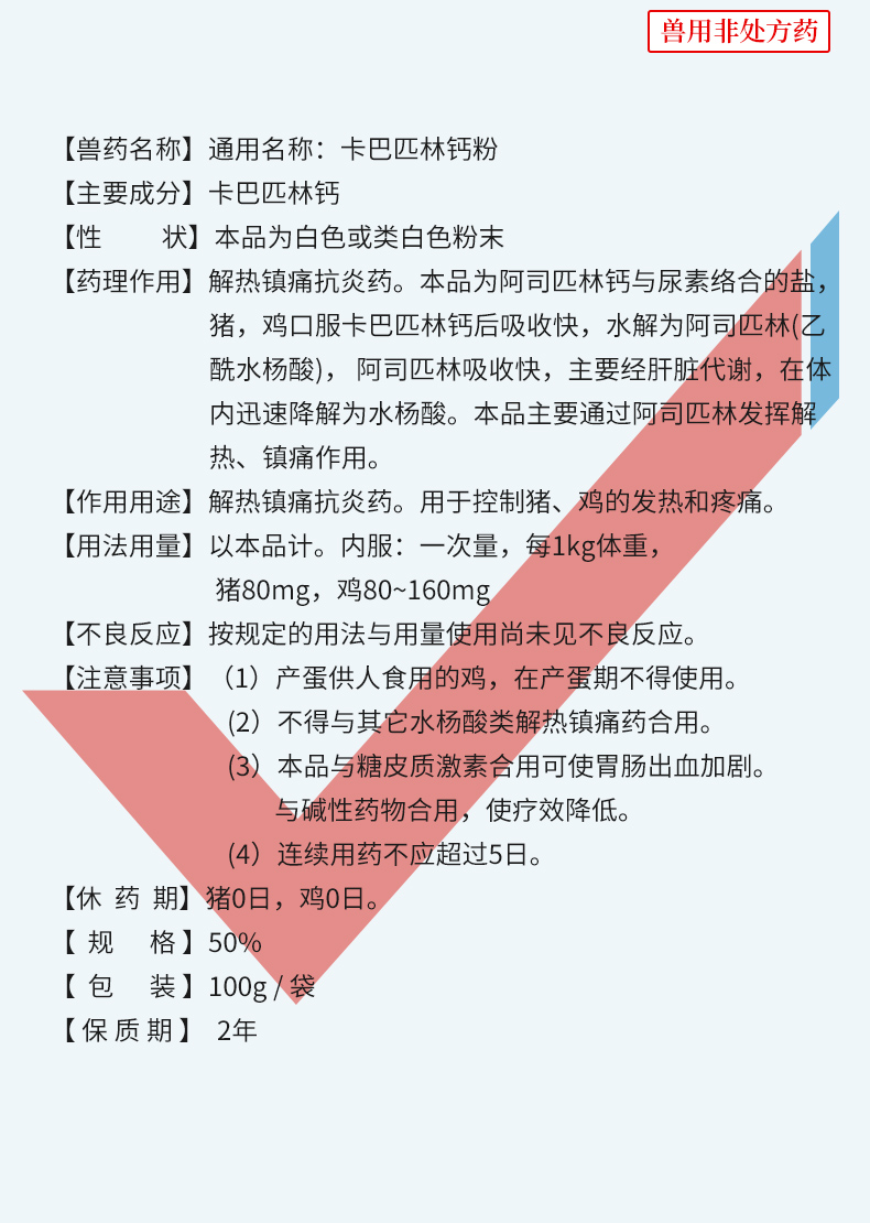 【社群专享】卡巴匹林钙粉 解热镇痛消炎药 起效快 安全性好 禽畜通用