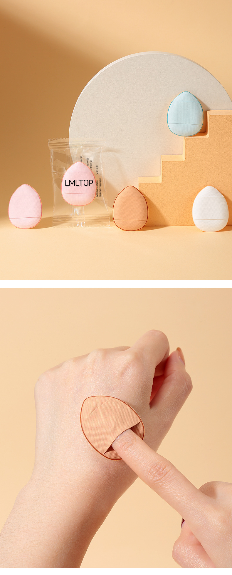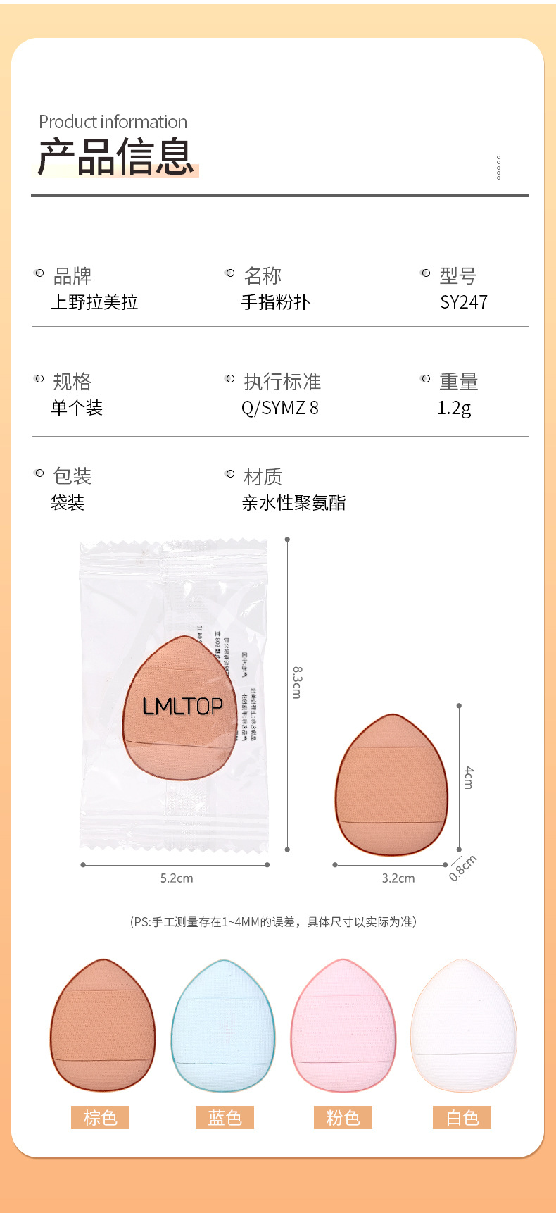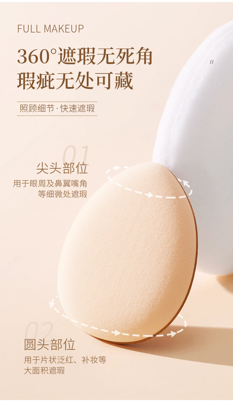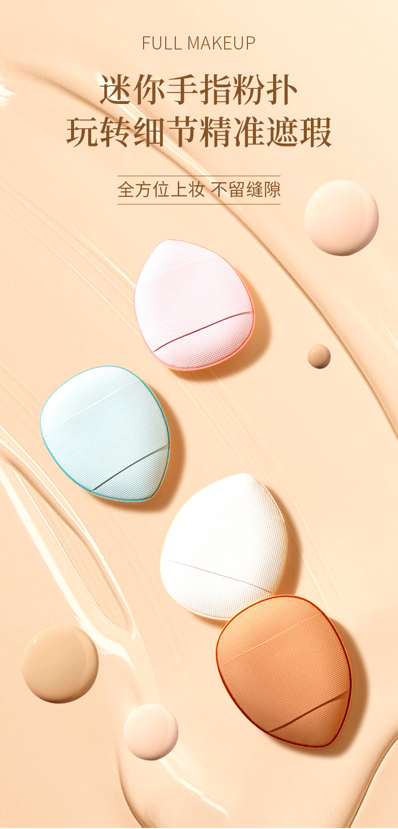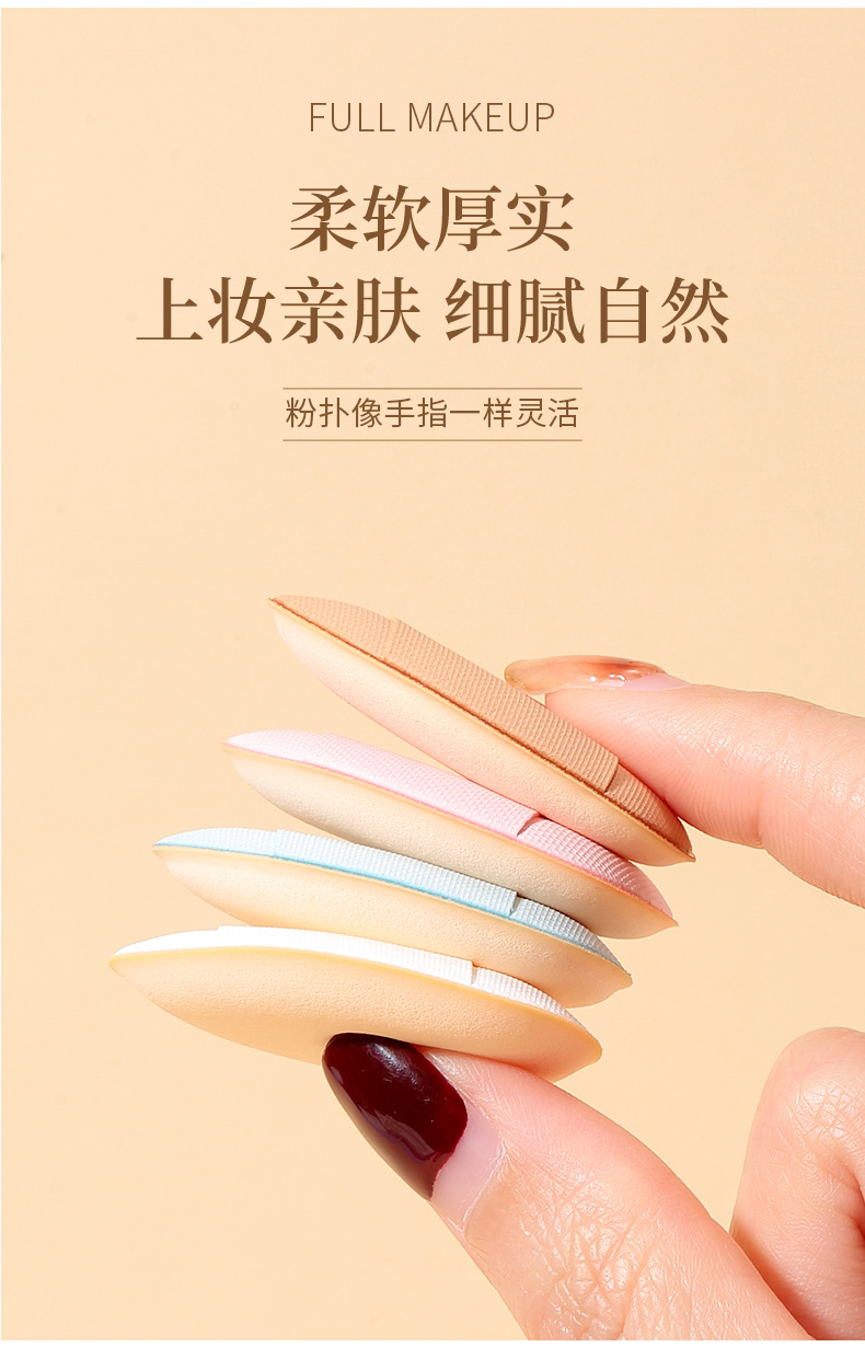 严选mini手指粉扑棕色迷你水滴指尖化妆气垫粉扑 定妆遮瑕小号指姆粉扑独立包装1个