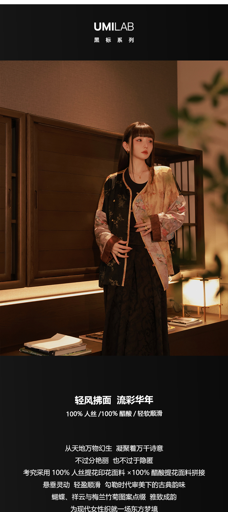 UMILAB【满庭芳】100%人丝+100%醋酸面料拼接重工新中式上衣C869W